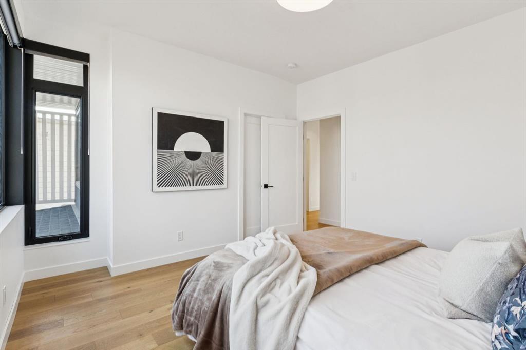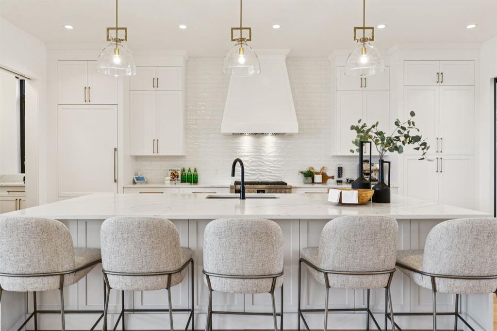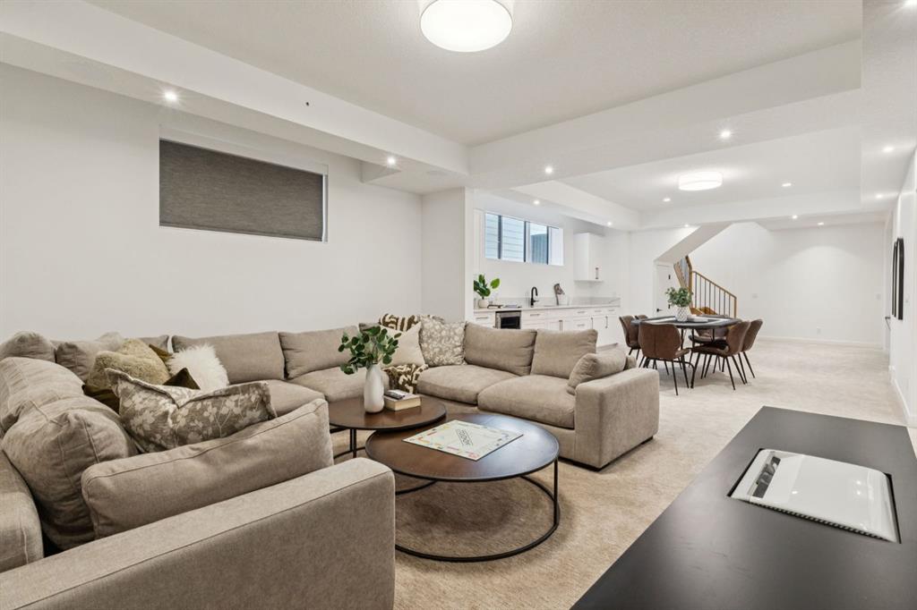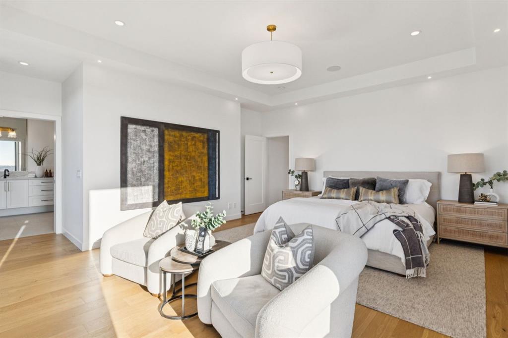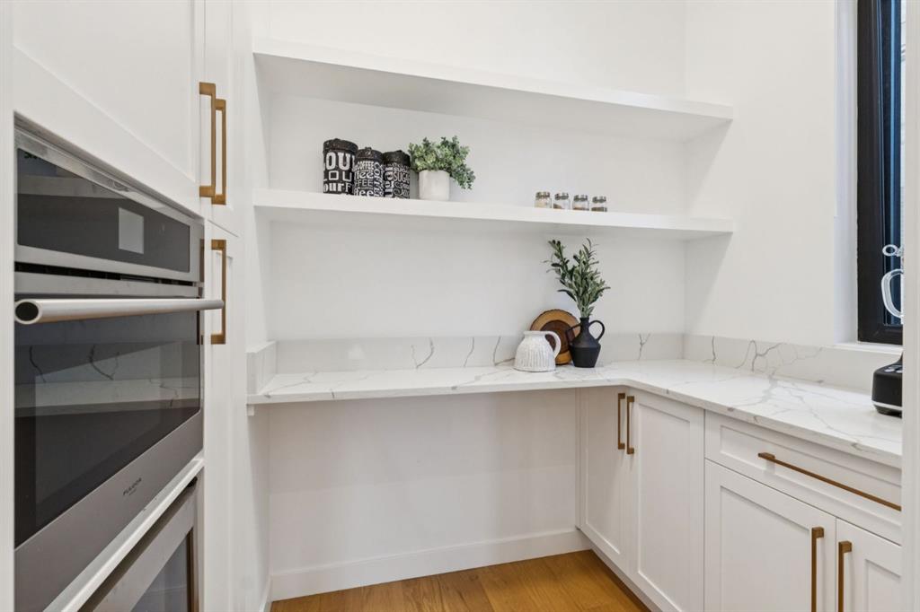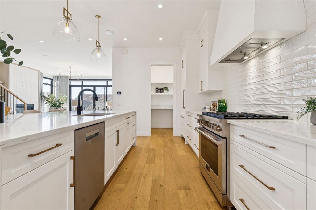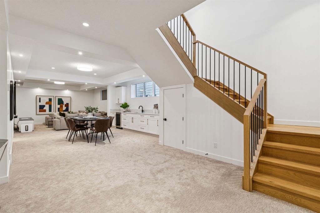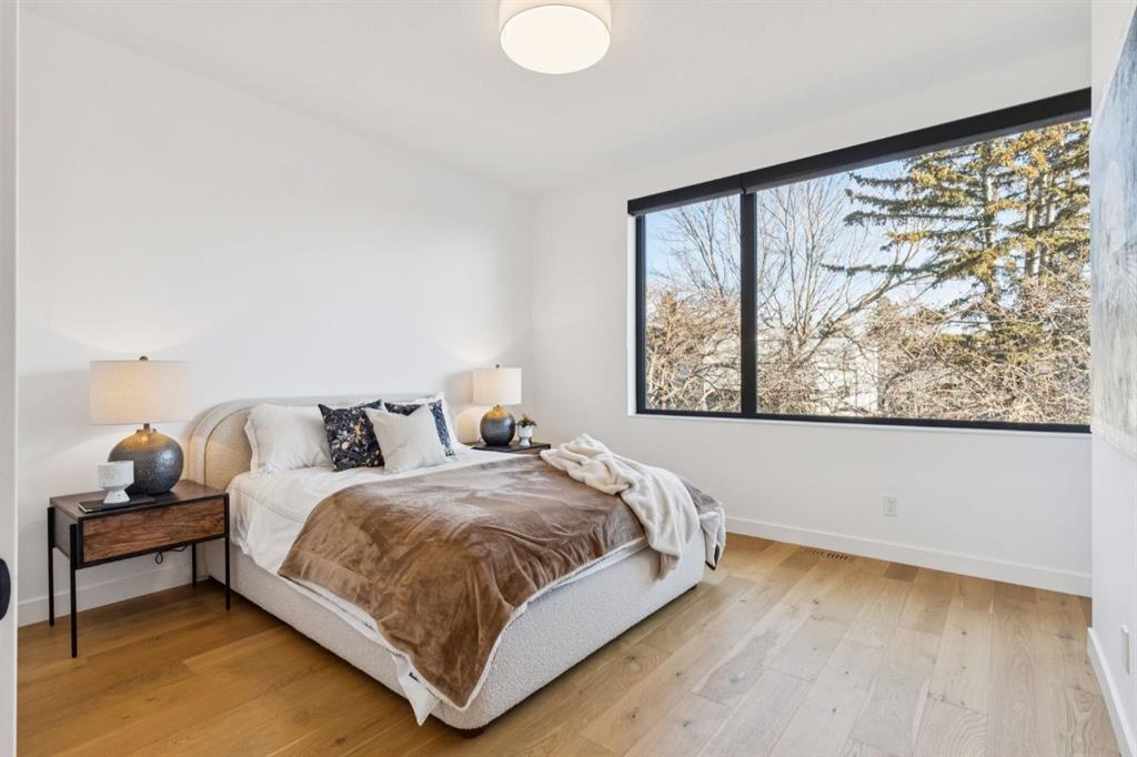 An extraordinary hillside sanctuary awaits in the exclusive inner-city community of Briar Hill. Ideally located on a peaceful street, this fabulous home offers over 4,600 square feet of contemporary living space and sweeping views of the city skyline and the Rocky Mountains. Sunlight streams through floor-to-ceiling windows, filling the open main floor all day with natural light. A heated porcelain-tiled foyer, 10 ft. ceilings, and wide-plank white oak floors throughout provide warmth and sophistication. Relax by the modern gas fireplace on quiet winter evenings with a book or connect with friends and family on the front deck. The chef’s dream kitchen features a large quartz-topped island with cabinetry on both sides, ideal for meal prep and casual dining. Premium Italian-designed Fulgor Milano appliances—including a professional 6-burner gas stove, an integrated warming drawer, and a combi speed oven—make entertaining seamless. The butler’s pantry adds functionality with an additional counter space, storage, and a wine/beverage fridge for extra convenience. Host memorable dinners in the expansive dining room, with sliding doors to a private back patio and backyard, which is perfect for BBQ’s and al fresco dining in warmer months. The private office, accessible from the kitchen and backyard, is filled with morning light and offers a tranquil, creative workspace. Upstairs, the serene primary suite impresses with a 10-foot tray ceiling and a second balcony with west-facing mountain views. A cozy seating area is perfect for morning coffee, watching the city wake, and enjoying the incredible, vibrant Calgary sunsets. The luxurious ensuite has a massive double steam shower with a bench, heated floors, oversized soaker tub, dual vanities, and a large walk-in closet. Begin and end your day with relaxation and rejuvenation in the wellness room, featuring an authentic Finnish sauna with a Bluetooth sound system. Two additional bedrooms with oversized windows, spectacular city views, and walk-in closets provide comfort for family or guests. A convenient laundry room with sink and storage completes the upper level. The lower level includes a spacious rec room with a wet bar, a beverage fridge, and flex space for game tables or workouts. The entertainment area is ideal for movie nights or big game day parties. The fourth bedroom and full bath provide guests with privacy and ease. Two massive storage rooms and a large mudroom lead to the oversized 698 sq. ft. heated double garage, with even more storage or a spot for a workshop. Highlights include a Sonos home & audio system, Hunter Douglas electronic window coverings, Lutron integrative lighting, hydronic in-floor heating in the lower level and central air conditioning. Only 10 minutes from downtown, a 20-minute walk to shops and restaurants in Kensington, and steps from walking paths on the hillside. Experience luxury, comfort, and breathtaking surroundings—this is the quintessential urban lifestyle you’ve been waiting for!