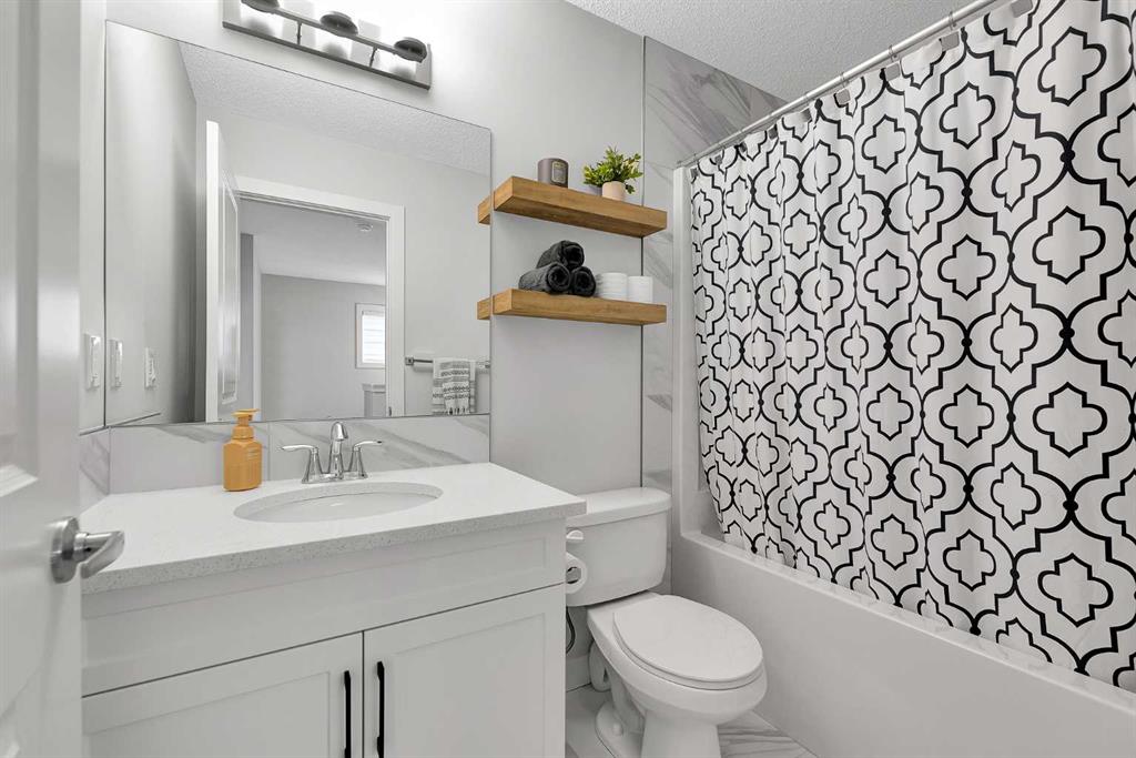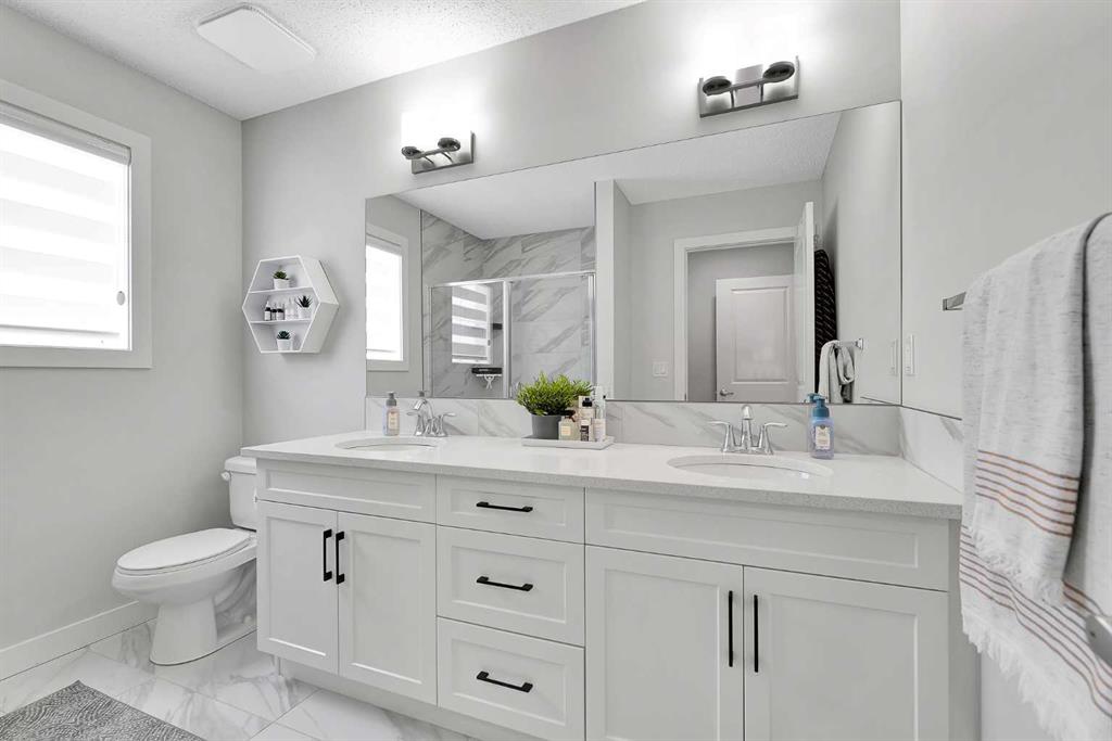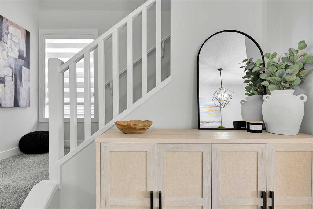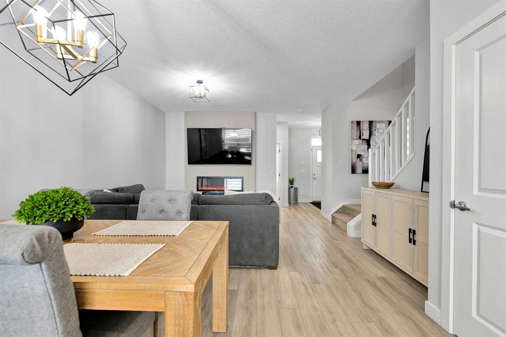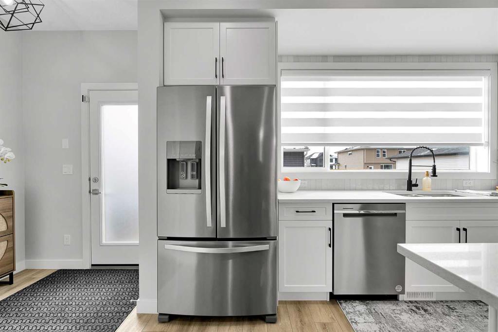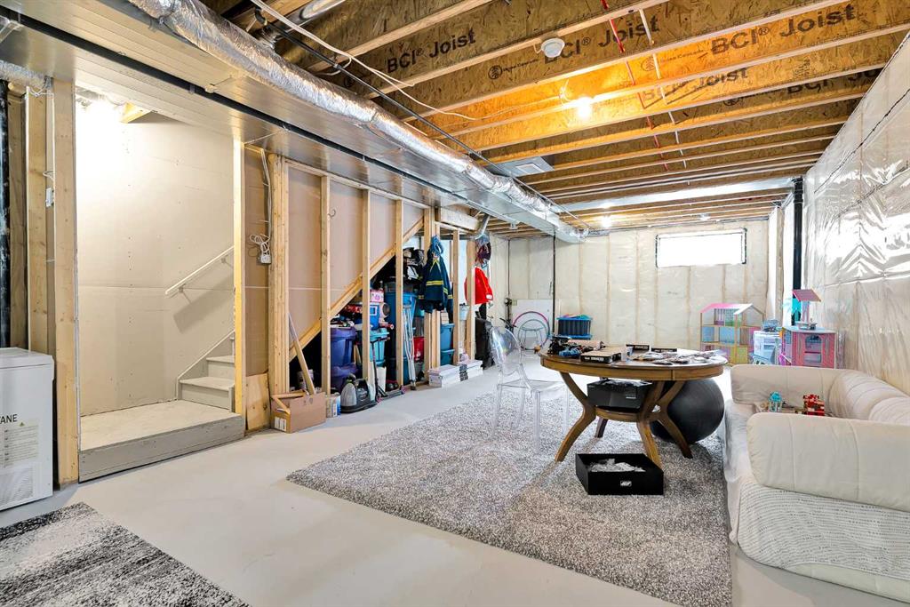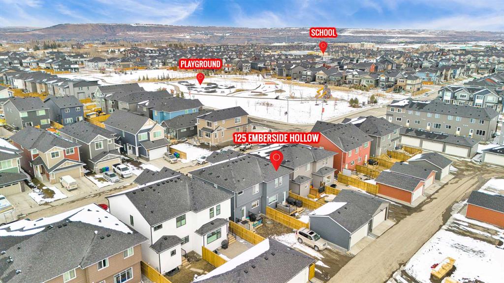 Welcome to 125 Emberside Hollow in Cochrane. Skip the GST and step into this next-to-new, move-in ready home with no added landscaping or garage build costs to worry about. Built by Cardel, this home offers generous square footage, a thoughtfully designed layout, and a separate side entrance ready for future development opportunities. The main floor features an open concept design with a spacious living and dining area that flows seamlessly into the large kitchen, complete with quartz countertops, stainless steel appliances, ample cabinetry, and a central island that serves as the true heart of the home. A rare and versatile main floor bedroom at the front of the house works perfectly as a guest room or home office, and is complemented by a full 4-piece bath. Upstairs, the larger floorplan is immediately evident. The private primary retreat offers a walk-in closet and a 4-piece ensuite, while the bonus room provides the perfect space for kids to watch TV, study, or unwind. Two additional generously sized bedrooms, another full 4-piece bath, and the convenience of upstairs laundry complete the upper level. The unfinished basement offers 9-foot ceilings and a dedicated side entrance, creating excellent potential for future development or an investor-minded upgrade. Outside, the south-facing backyard is fully landscaped and ready to enjoy, featuring an oversized rear deck that extends your living space outdoors. The recently built double detached garage is heated, insulated, and fully wired with a 70-amp panel. Located just blocks from the elementary school, tot park, and extensive bike paths, this home is ideally situated in the heart of the fast-maturing community of Fireside, with an easy 20-minute commute to Calgary. Book your private showing today.
