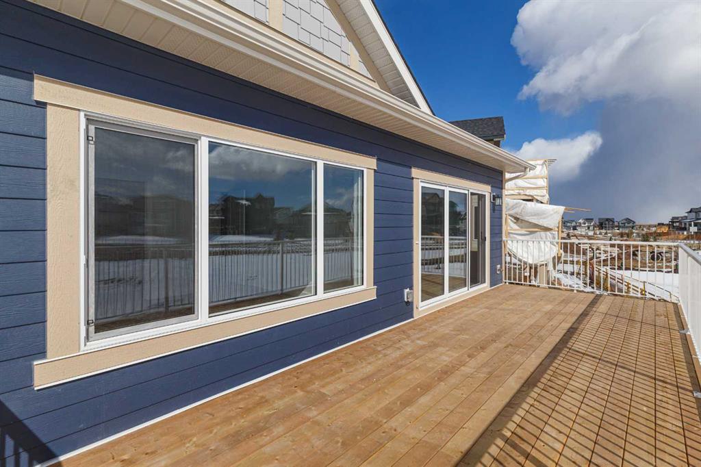Welcome to this exceptional bungalow offering over 2,500 sq. ft. of fully developed luxury living, ideally positioned on a premium pie-shaped lot backing onto tranquil green space in the prestigious lake and golf community of Harmony in Springbank. Designed for elevated living, this residence features an open-concept layout with soaring vaulted ceilings, expansive windows, and abundant natural light, creating a seamless connection between indoor comfort and the beauty of its natural surroundings. The main floor offers 1,350 sq. ft. of refined living space, complete with two spacious bedrooms and two full bathrooms, thoughtfully designed for comfort and privacy. The chef-inspired kitchen showcases an island, quartz countertops, full-height cabinetry, soft-close finishes, and a subway tile backsplash. The kitchen flows effortlessly into the dining and living areas, anchored by a warm gas fireplace, perfect for both everyday living and elegant entertaining. The primary suite is a private retreat with peaceful greenspace views, a generous walk-in closet, and a spa-inspired ensuite featuring dual quartz vanities and an oversized glass shower. The fully developed walkout lower level expands the living space with two additional bedrooms, a full bathroom, and a spacious recreation area, opening directly to a covered patio and the outdoors, ideal for entertaining or relaxed family living. Outdoor living is elevated with a walkout patio overlooking open green space, offering tranquility and year-round enjoyment. Additional highlights include luxury vinyl plank flooring, vaulted ceilings, zebra blinds, roughed-in central vacuum, and a front-attached double garage. Residents of Harmony enjoy an exceptional lifestyle with access to 140 acres of lake, Mickelson National Golf Club, scenic pathways, parks, and future Village Centre amenities, all just minutes from Springbank Airport, top-rated schools, and Calgary. A rare opportunity to own a luxury walkout bungalow on one of Harmony’s most desirable green space lots, offering a refined blend of privacy, thoughtful design, and elevated resort-style living.