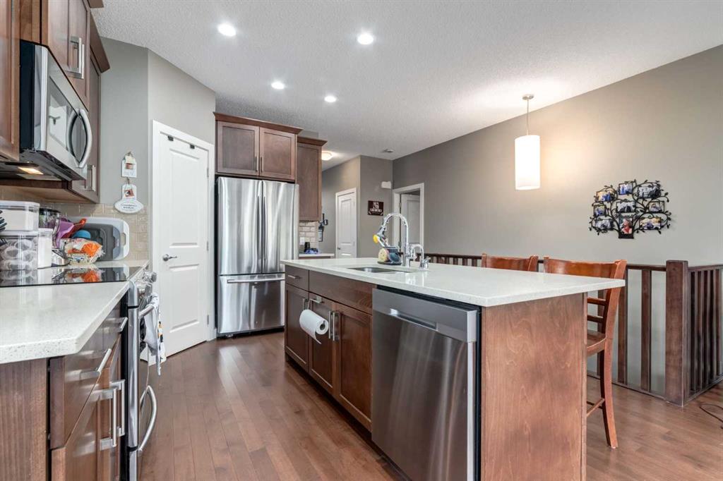 Welcome to this stunning executive bungalow in the highly sought-after community of Walden. Perfectly located within walking distance to pathways, green spaces, and playgrounds, this home combines modern luxury with everyday convenience. Step inside to a bright, open-concept floor plan featuring soaring ceilings, oversized windows, and a stylish tile-faced NG fireplace. The gourmet kitchen is a showstopper with stainless steel appliances, a walk-in pantry, quartz countertops, and a massive island—perfect for entertaining or family gatherings. The spacious primary suite offers a true retreat with a deluxe 5-piece ensuite, complete with a soaker tub and walk-in closet. The fully finished basement extends your living space with a large rec room, two additional bedrooms, generous storage, and a 3-piece bath with an oversized shower and heated floors. Enjoy sunny afternoons in your south-facing backyard, then cool down with central air conditioning. Exterior features include outstanding curb appeal with stucco and stone accents, an exposed aggregate driveway, and an irrigation system. Don’t forget about the custom up/down room-darkening blinds, hardwood floors, pot lights, double attached garage and so much more.