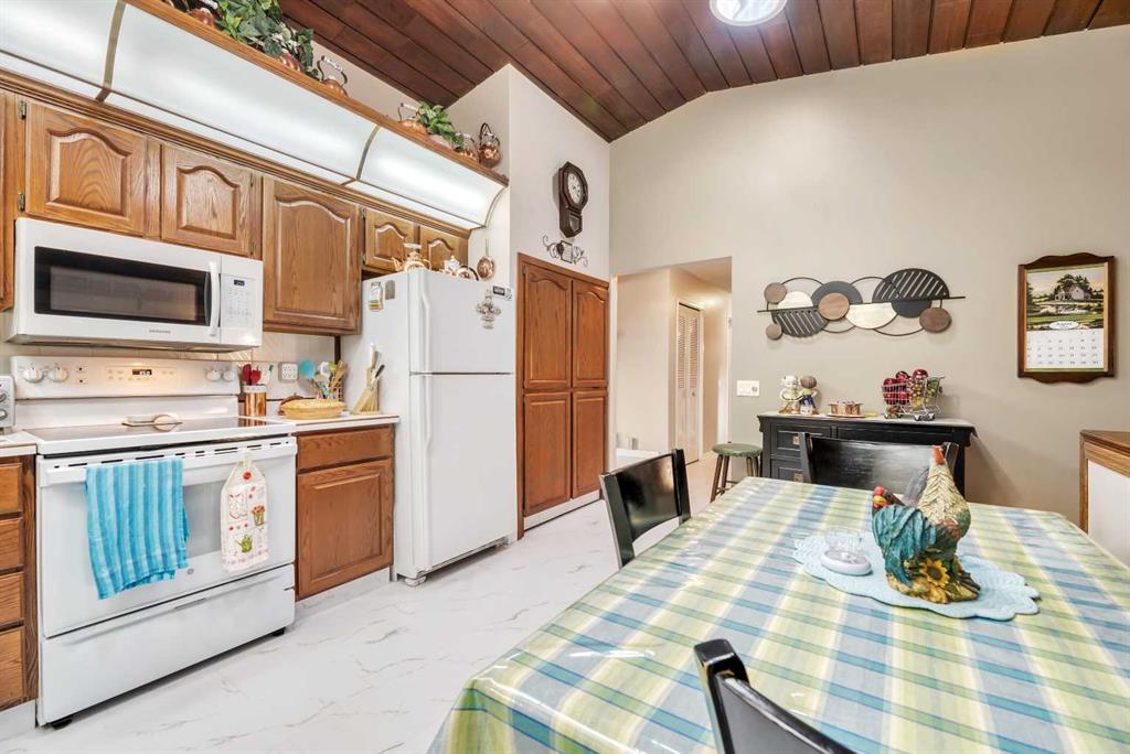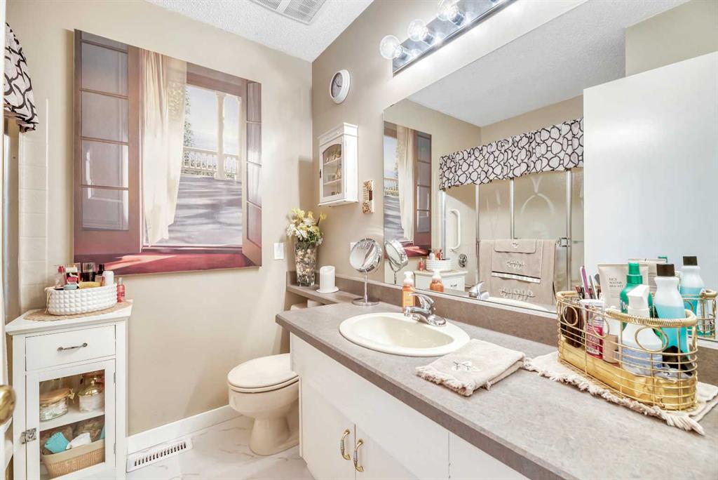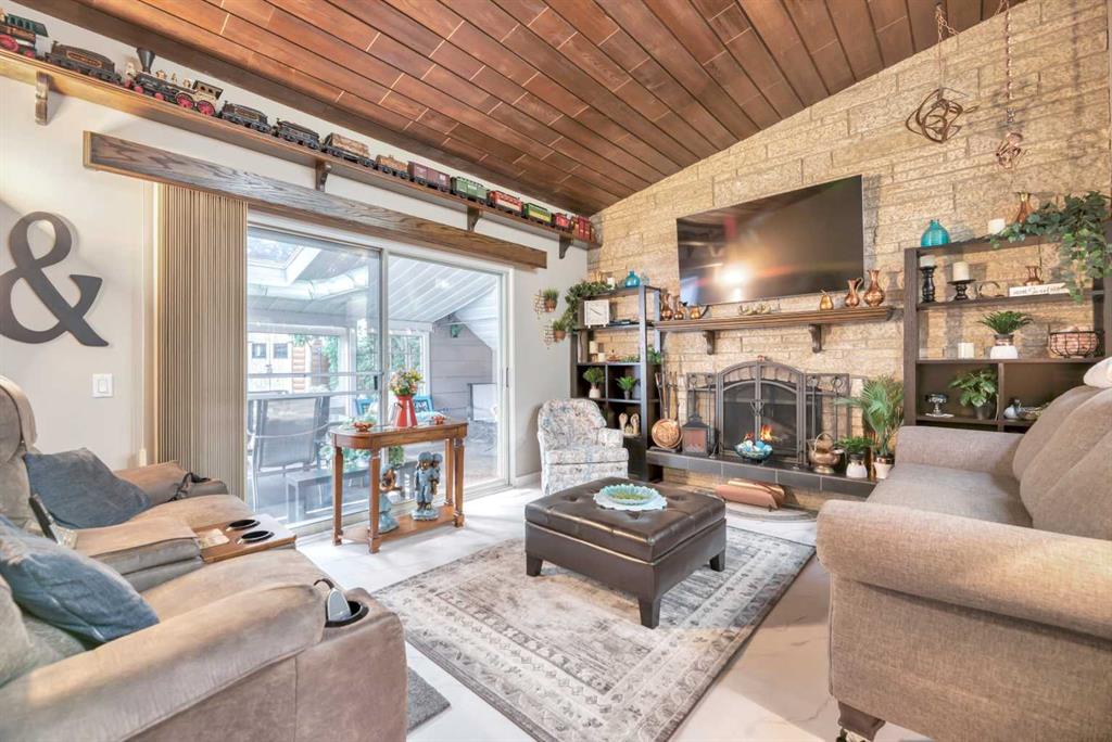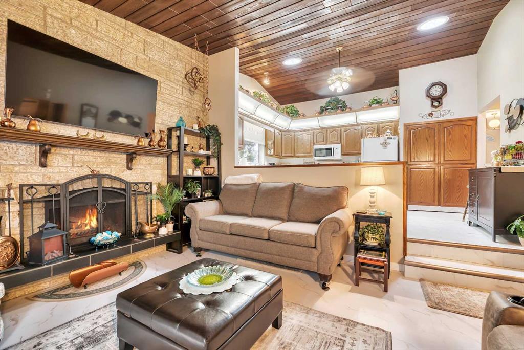 WOW! Situated on an immaculate 58′ x 110′ lot in an incredible location directly across from Babbling Brook Park, this former showhome is truly one-of-a-kind! Offering 3 bedrooms + den, and 2.5 bathrooms in 2,265 sq. ft. of fully developed living space, the home exudes pride of ownership! Thoughtful upgrades/updates at every turn here, including: vinyl windows (2022, main floor), furnace (2021), hot water tank (2022), asphalt shingles (2013), kitchen skylights (2017), attic insulation (2011), water softener system, stucco exterior (1999), new vinyl plank/tile flooring, some newer appliances, a wood-burning fireplace (with gas assist) and soaring vaulted ceilings. Outside, you will find a private, fully fenced, west-facing backyard that is a true sanctuary, featuring an expansive covered/enclosed patio with gas BBQ hookup and large storage shed. The front and back yard have been meticulously landscaped to include raised garden beds and an in-ground sprinkler system. The heated, oversized double garage is equipped with 220V wiring and is accessible via the rubber-paved driveway (brand new rubber paving completed in summer 2025). Close to all amenities, this mint-condition property is a rare find—don’t miss out on this exceptional opportunity. Call today!