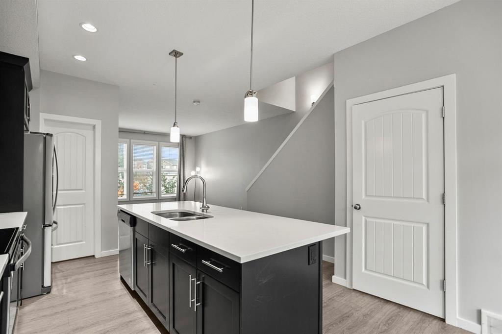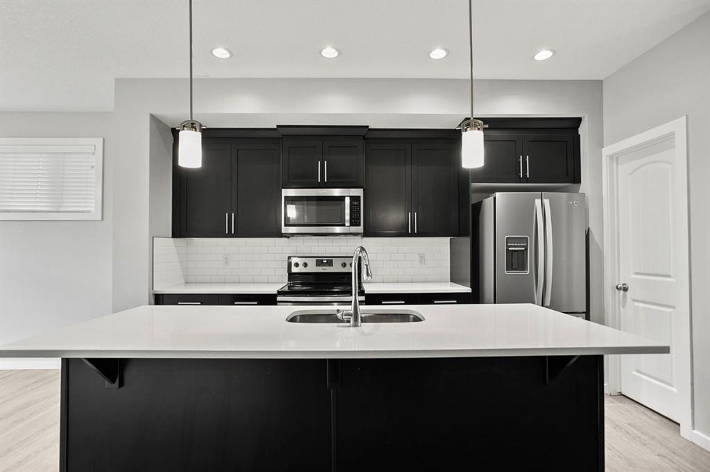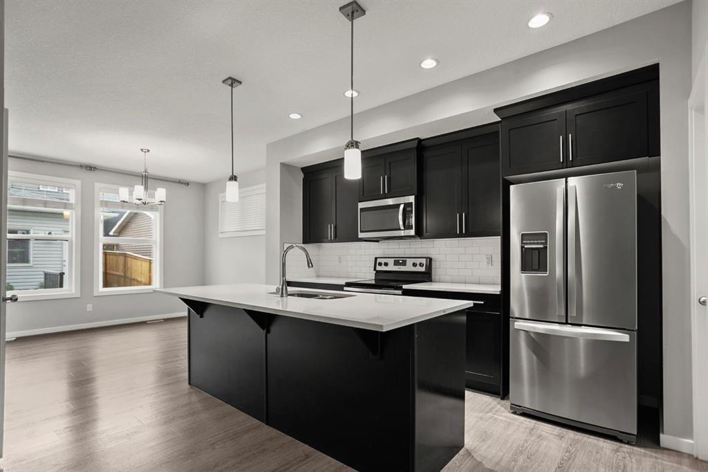 Step inside to a warm and inviting main floor where open-concept living creates a natural flow between spaces. The kitchen is the heart of the home, featuring sleek quartz countertops, modern cabinetry, and a spacious island that makes both cooking and gathering effortless. A bright living room, framed by large windows, invites relaxation, while the adjacent dining area is perfect for entertaining family and friends.