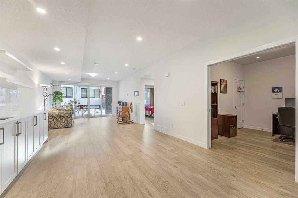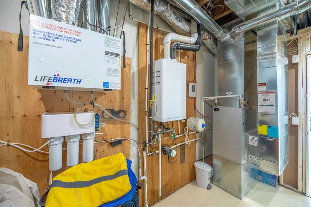 OPEN HOUSE: Sunday, Jan 11th, 11am-1pm! This exceptional villa bungalow combines luxury finishes, thoughtful design, and a bright, open layout that feels both modern and inviting. Meticulously maintained, this home showcases soaring vaulted ceilings and premium upgrades throughout. Discribed by the builder as a “Built Green” home featuring a on-demand hot water system and heat exchanger, plus triple pane argon filled windows for improved efficiency and lower utility costs. The front entry way leads you into a spacious foyer with room for seating. Just off the entry is a stylish half bath and a custom built-in workstation. The main living area opens up beautifully, anchored by an oversized granite island with bar seating, extra-large Blanco sink, under-cabinet lighting, and upgraded stainless steel appliances—including a built-in gas cooktop and dual ovens, one a Miele steam/convection oven. A large pantry and dining area make this chef’s kitchen ideal for modern living. A well-designed laundry area sits at the entrance to the heated garage and includes a built-in bench and coat hooks for added convenience. The warm and inviting living room, with tones of natural light is enhanced by vaulted ceilings and expansive sliding doors that lead to a covered balcony great for entertaining in the summer. A gas line for your BBQ makes life even easier. The large primary bedroom is conveniently located off the living room and offers a two-sided walk-through closet leading to the luxurious ensuite, featuring a marble double vanity, Dietra heated tile floors, private water closet, and an oversized shower with built-in bench seating. The fully finished walkout basement is bright and welcoming. A beautifully appointed wet bar with marble countertops, pantry, and full-size fridge makes this level perfect for guests, entertaining, or multi-generational living. The spacious family room offers plenty of room for relaxation or games, and a separate den with dual pocket doors adds flexible living space as a possible home office or gym. A bright lower-level bedroom and a full bathroom with soaker tub make this space ideal for visitors. The lower covered patio provides another private outdoor retreat. Located in desirable Crestmont—3-minutes to Stoney Trail and the TransCanada Highway for quick access to the mountains—this home offers unmatched convenience and lifestyle.