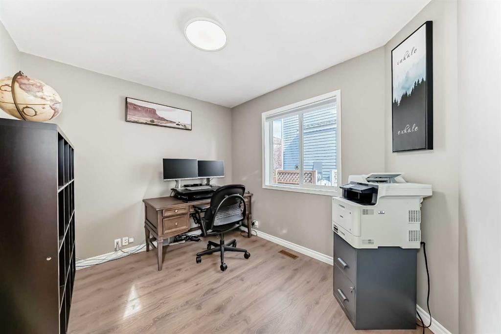 The main floor office is perfect for work from home. The laundry room and bathroom conclude