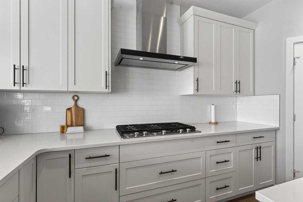 Inside, the bright open to above foyer creates an airy first impression. The main floor was designed with family living in mind, featuring a private office with barn doors, a spacious kitchen with a walkthrough pantry complete with built-in shelves for effortless organization and easy grocery drop offs, and a thoughtfully designed mudroom with four built-in cubbies and additional built-in shelving to keep everyone organized.