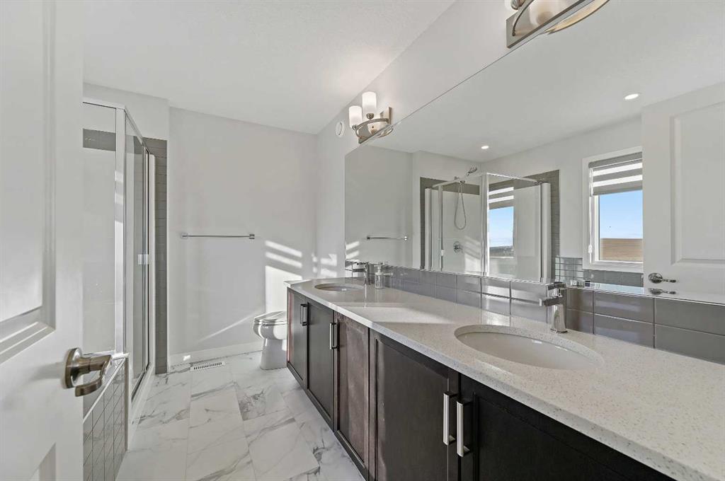 ** Custom Jayman BUILT Home – Award Winning Taylor 24 Model ** Family Approved ** Downtown City Views ** Extensive upgrades and superior quality, with over 1800+ square feet of luxurious living space. You will be impressed with the privacy of an oversized homesite with a private south-facing backyard with a 10′ x 10′ upper deck. Enjoy this convenient Livingston Location – steps away from the ponds, Ice rink, parks, pathways, schools, shopping, soccer fields, bike paths, transit, and the Central North Expressways. Rich curb appeal with architectural features – dramatic roof lines, 24′ x 19′ attached garage with smart board trim, detailed door & full-sized concrete driveway, covered entry, stone-faced columns, and new roof shingles complete this spectacular elevation. There are extensive upgrades throughout, and the details are superb. This is a must-see home! Chef’s kitchen includes quartz countertops, custom light grey shaker style cabinets/doors, extension trims, quality Whirlpool stainless steel fridge/dishwasher/built-in microwave/electric smooth top slide in stove with overhead exhaust fan, recessed lighting, oversized central island, island with a flush eating bar & black granite undermount sink, walk-through pantry with cabinet storage & a large central breakfast nook. The main floor layout includes a private office and a family room with a electric fireplace, a family-sized open foyer and rich wide plank LVP floors featured from the front entrance and throughout the main floor. Upstairs leads to the upper three bedrooms, the bonus room, and the laundry room. The primary bedroom suite includes his and hers vanity sinks, a massive walk-in closet, an oversized shower with/ glass door, and a gorgeous soaker tub to complete this stunning spa-like en-suite. BONUS: The garage features an epoxy floor, while the basement remains unfinished and can accommodate a future large family room with a bar area, bedroom, full bathroom, full-sized furnace room/storage, and media room. Plus, smart home technology, a whole interior fire suppression sprinkler system, six solar panels, a Navien tankless hot water heater, a 9′ main floor & high basement ceilings, generously sized bedrooms with large windows, an electric car plug rough-in, future radon basement piping rough-in, plumbing/lighting, and electrical fixtures upgraded! Don’t miss this opportunity. Call your friendly REALTOR(R) to book your viewing right away!