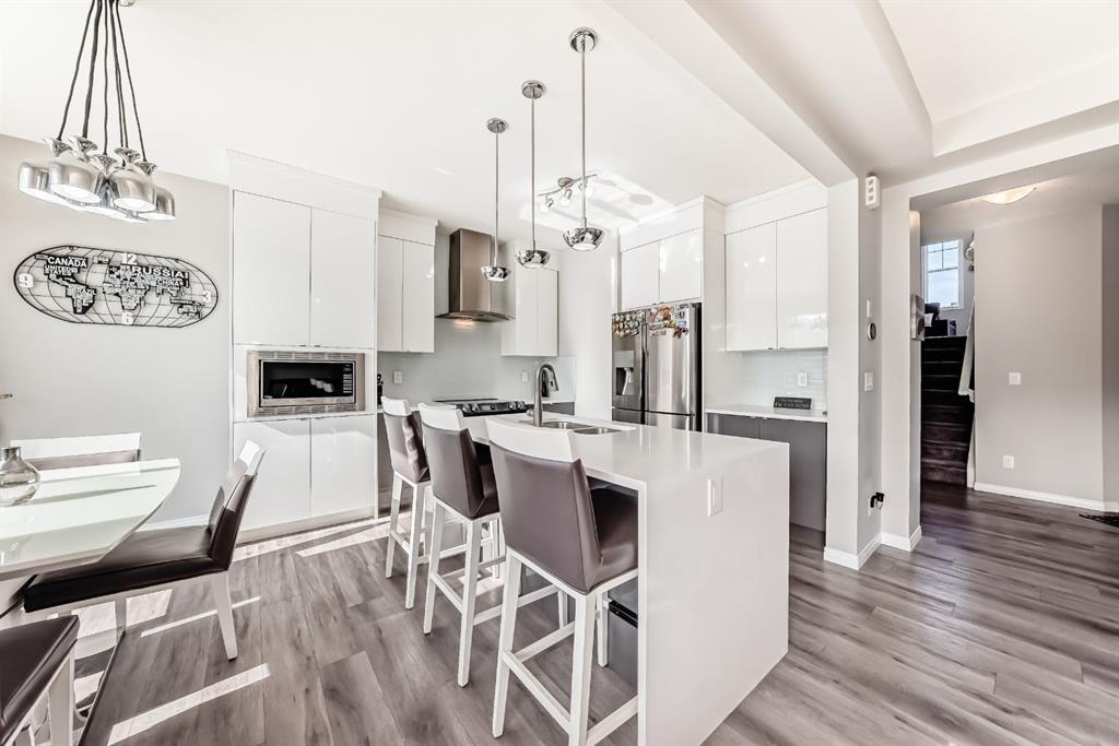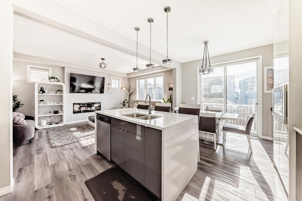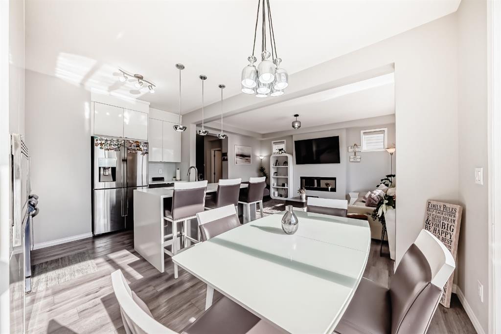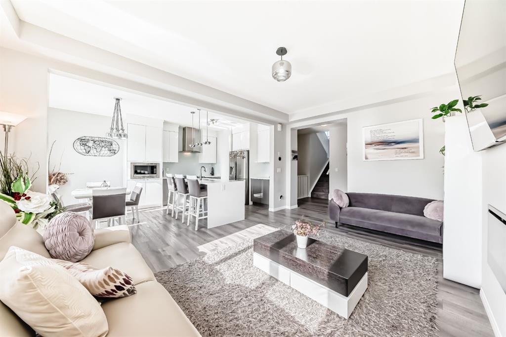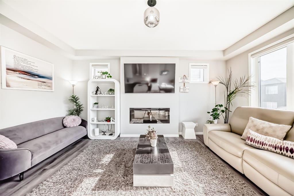 Public Remarks: Welcome to the desirable and sought after community of Carrington where this stunning and like-new, 2-storey Split level Dream home is sure to impress! Offering 3 + 1 beds, 3.5 baths, and a fully finished Legal Suite walk-up basement, this well-kept residence offers a perfect family environment! Walk up the foyer and enter the bright, open-concept main floor outfitted with beautiful wood vinyl flooring, walls painted with neutral tones that give that warm and homey vibe, and plenty of sunshine from the large windows. A fireplace, high-end light fittings around the living spaces. Central Air conditioning. The living room comes with an electric fireplace and is spacious enough to entertain a large number of guests on any occasion next to the dining area. Be inspired to cook