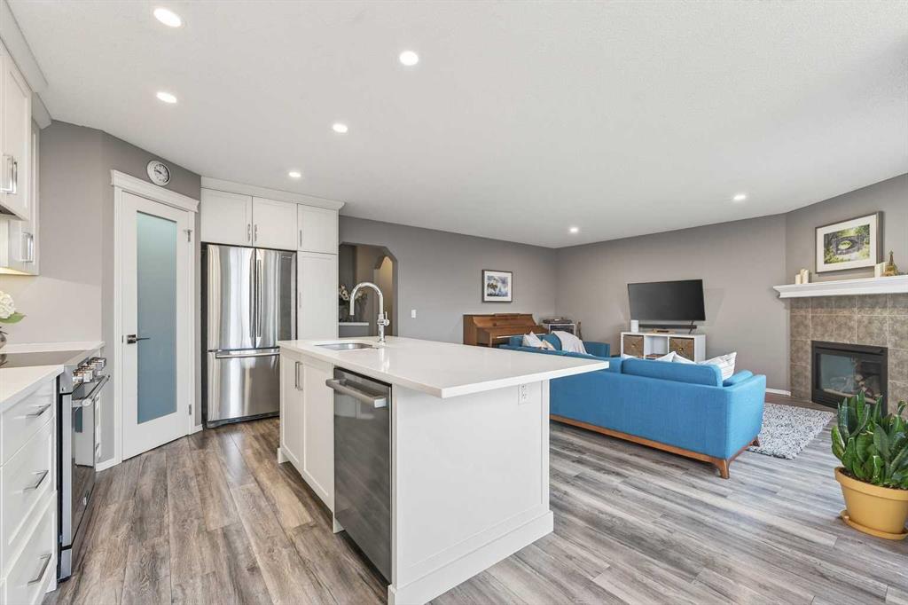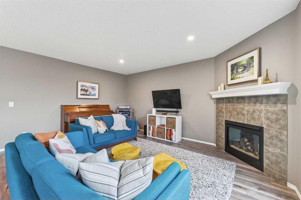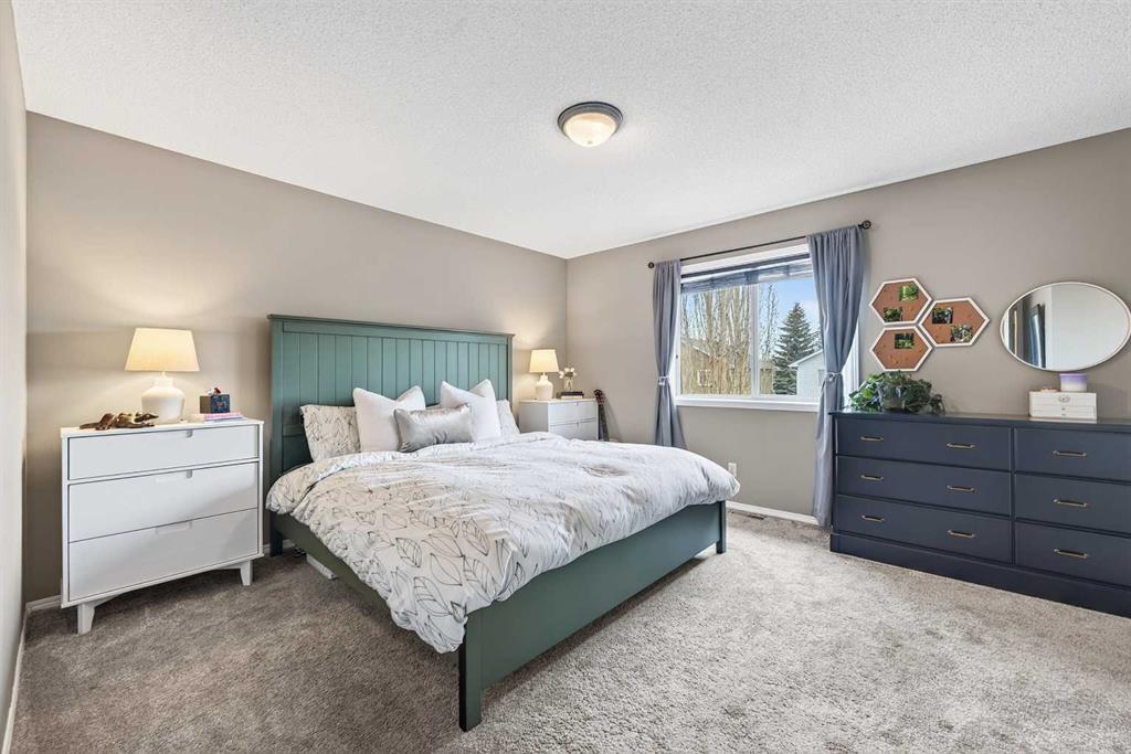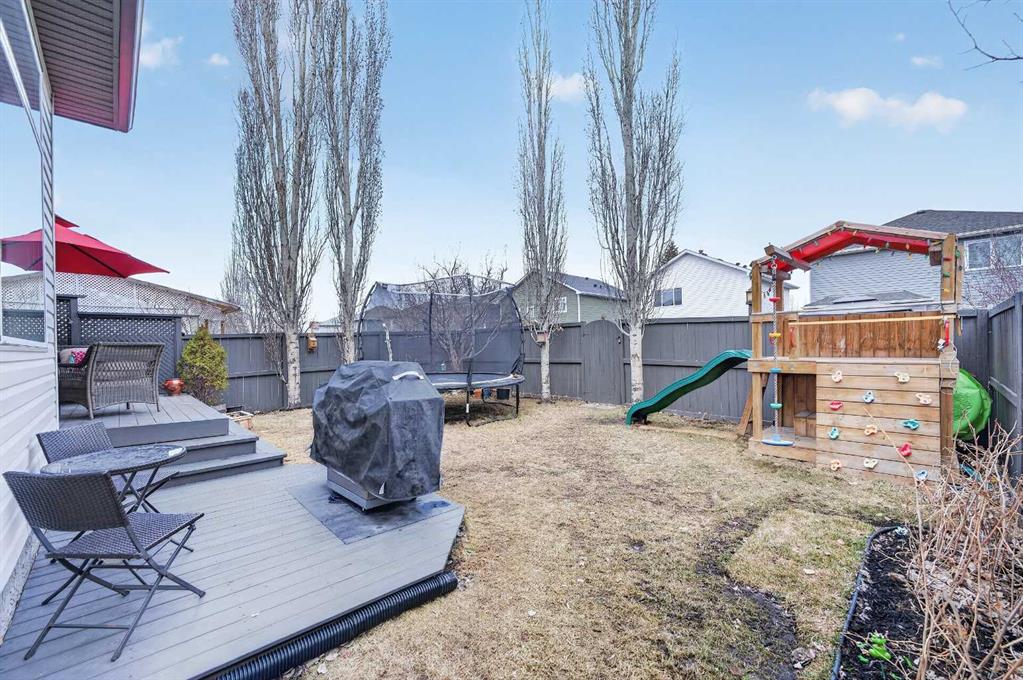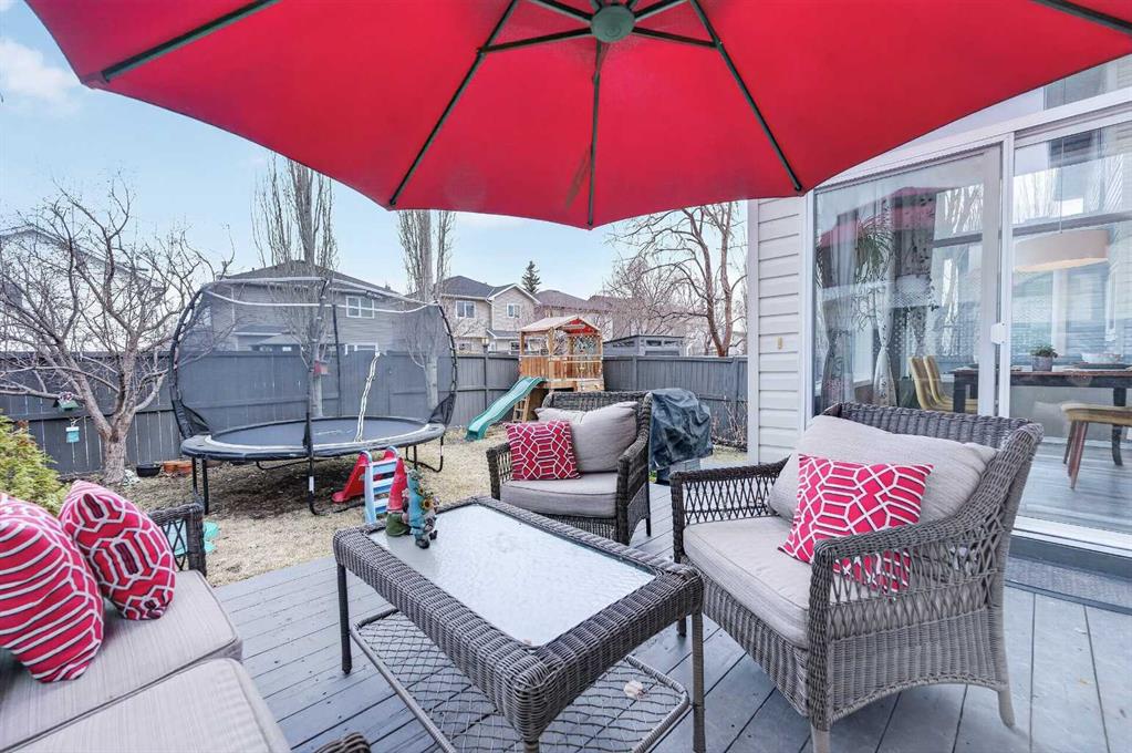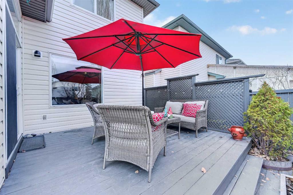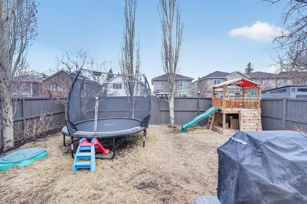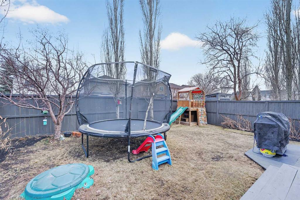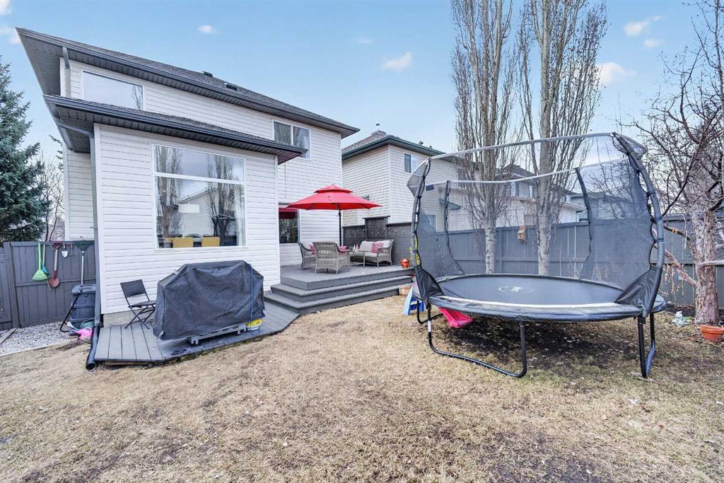 Tucked onto a quiet, family friendly street in the beautiful Lake Chaparral, this fully developed 2 storey home delivers the kind of space, upgrades, and backyard setting that’s hard to find. With over 2,300 sq ft of total developed space, this home offers tasteful renovations and pride of ownership throughout. The main floor has been completely elevated with a professionally renovated kitchen space, featuring quartz countertops, upgraded lighting, high-end appliances, built-in microwave, ceiling height shaker style cabinets and clever storage including deep appliance drawers. The layout flows into a bright living area with corner feature gas fireplace and dining space with soaring ceilings and oversized windows that bring in natural light year-round. A convenient laundry room/mudroom and 2 piece bath complete the level. Upstairs, you’ll find 3 bedrooms including a spacious primary retreat that easily fits a king-sized bed, complete with a walk-in closet and a refreshed ensuite with huge corner soaker tub. The additional bedrooms are generous and ideal for growing families. The fully finished basement adds additional versatility with a large rec room, fourth bedroom, full bathroom, and extra storage, ideal for guests, teens, or multi-purpose living. Where this home truly stands out is the backyard. Private, quiet, and lined with mature aspens, there are no direct rear neighbour allowing endless hours of afternoon sun. There’s alley access, plus the everyday convenience of back-lane garbage pickup. The yard itself is built for enjoyment, featuring raspberry bushes, a custom-built playhouse, and plenty of room to relax or entertain. Major updates have all been taken care of in the past 5 years, including the furnace, hot water tank, roof, and the addition of A/C. Durable German-made scratch-resistant flooring runs throughout, and bathrooms have been tastefully refreshed with a modern, bright feel. All of this in one of Calgary’s most established lake communities offering unlimited access to Chaparral Lake with tons of green space, and a true community feel. Enjoy summer beach days, winter skating and ice fishing, plus year-round programs and events. And with 2 schools nearby (one just a 5 minute walk), parks, playgrounds, and amenities all close by, the location checks every box. This Chaparral home checks the boxes buyers are waiting for!