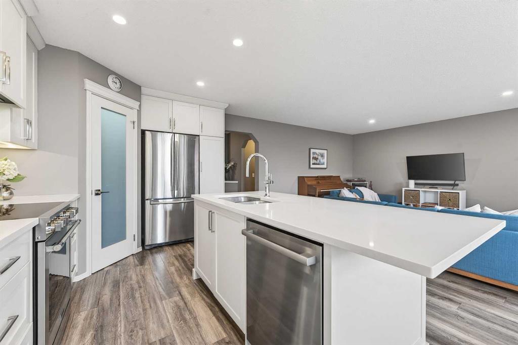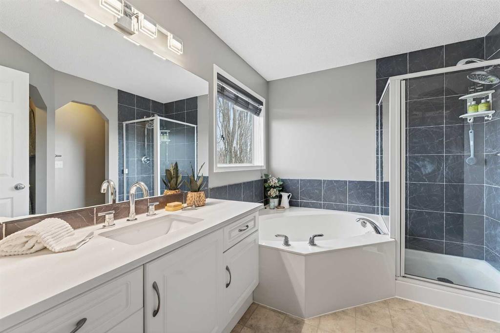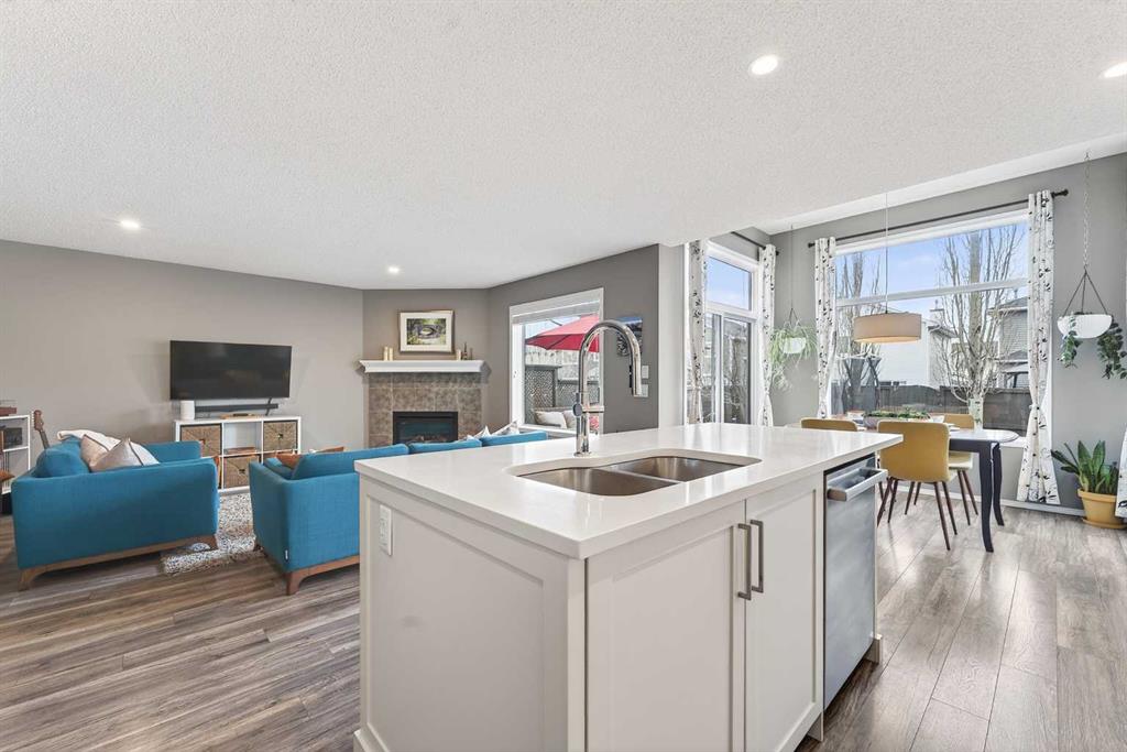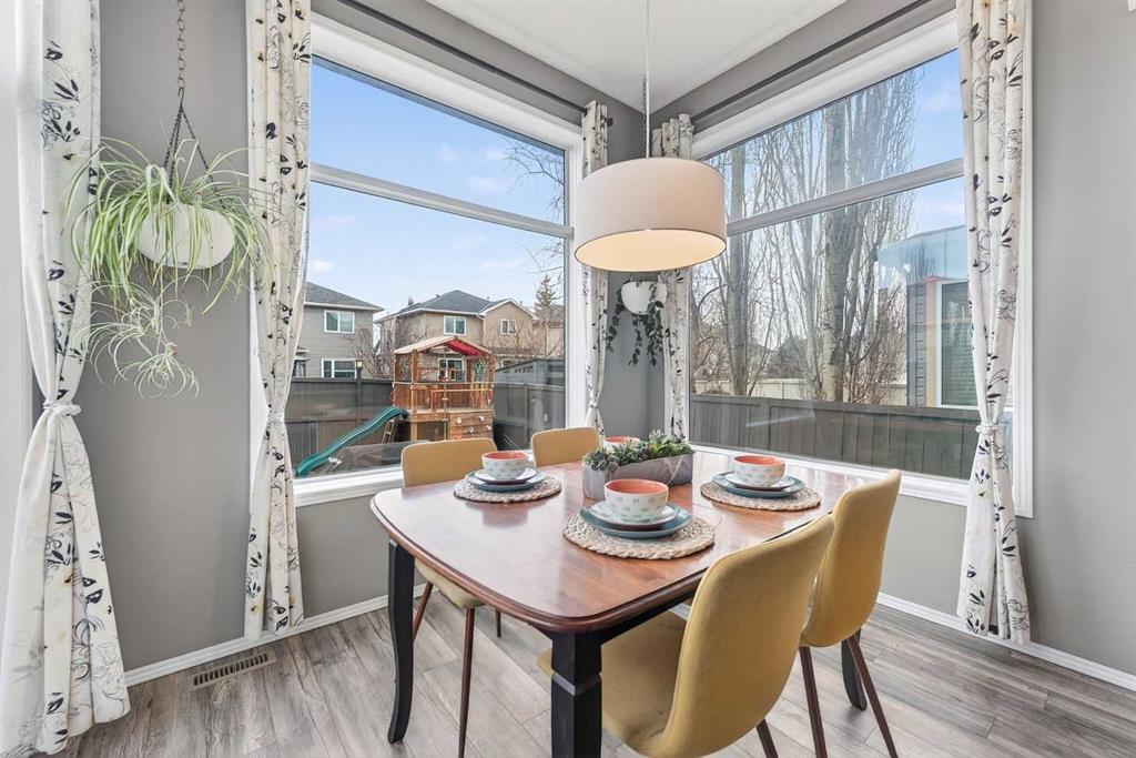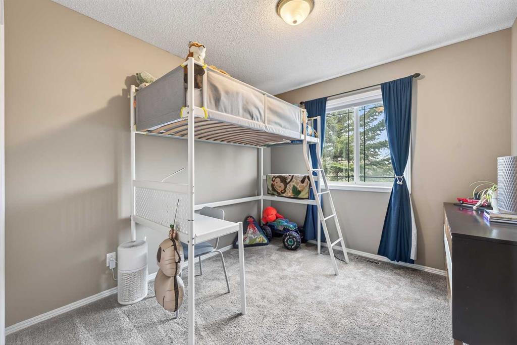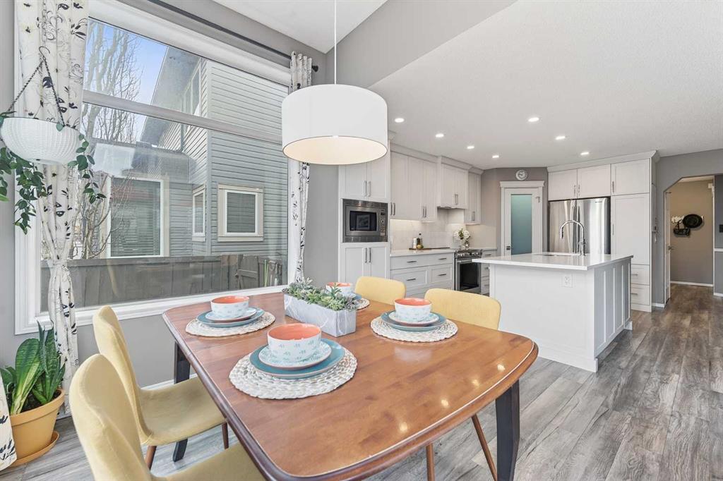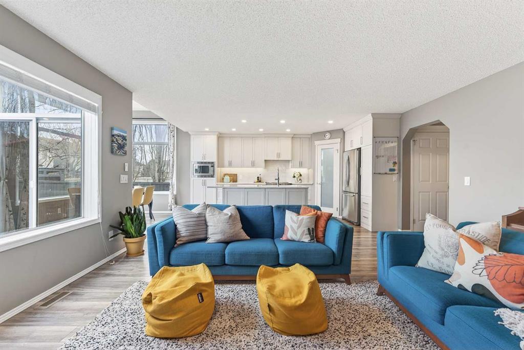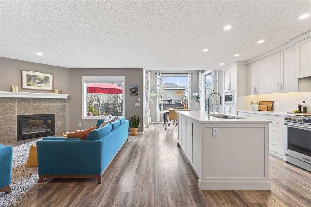Tucked onto a quiet, family friendly street in the beautiful Lake Chaparral, this fully developed 2 storey home delivers the kind of space, upgrades, and backyard setting that’s hard to find. With over 2,300 sq ft of total developed space, this home offers tasteful renovations and pride of ownership throughout. The main floor has been completely elevated with a professionally renovated kitchen space, featuring quartz countertops, upgraded lighting, high-end appliances, built-in microwave, ceiling height shaker style cabinets and clever storage including deep appliance drawers. The layout flows into a bright living area with corner feature gas fireplace and dining space with soaring ceilings and oversized windows that bring in natural light year-round. A convenient laundry room/mudroom and 2 piece bath complete the level. Upstairs, you’ll find 3 bedrooms including a spacious primary retreat that easily fits a king-sized bed, complete with a walk-in closet and a refreshed ensuite with huge corner soaker tub. The additional bedrooms are generous and ideal for growing families. The fully finished basement adds additional versatility with a large rec room, fourth bedroom, full bathroom, and extra storage, ideal for guests, teens, or multi-purpose living. Where this home truly stands out is the backyard. Private, quiet, and lined with mature aspens, there are no direct rear neighbour allowing endless hours of afternoon sun. There’s alley access, plus the everyday convenience of back-lane garbage pickup. The yard itself is built for enjoyment, featuring raspberry bushes, a custom-built playhouse, and plenty of room to relax or entertain. Major updates have all been taken care of in the past 5 years, including the furnace, hot water tank, roof, and the addition of A/C. Durable German-made scratch-resistant flooring runs throughout, and bathrooms have been tastefully refreshed with a modern, bright feel. All of this in one of Calgary’s most established lake communities offering unlimited access to Chaparral Lake with tons of green space, and a true community feel. Enjoy summer beach days, winter skating and ice fishing, plus year-round programs and events. And with 2 schools nearby (one just a 5 minute walk), parks, playgrounds, and amenities all close by, the location checks every box. This Chaparral home checks the boxes buyers are waiting for!