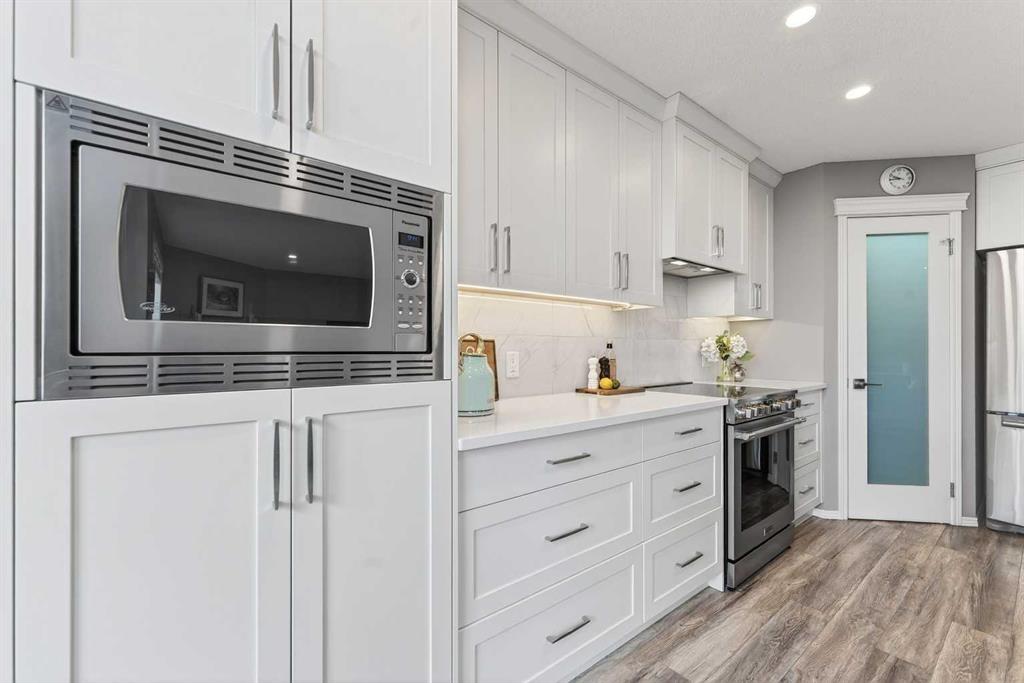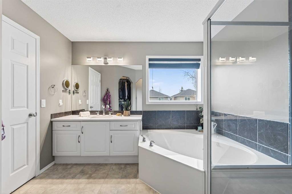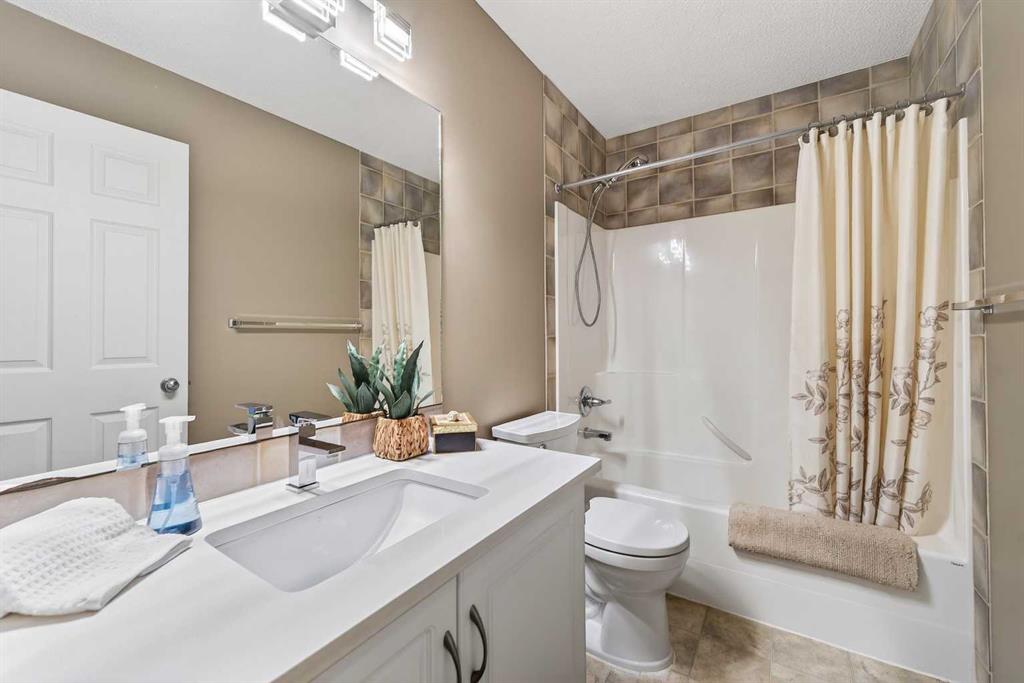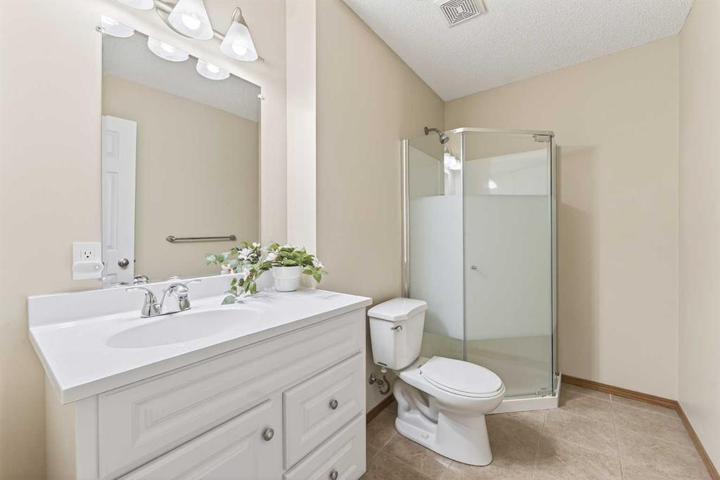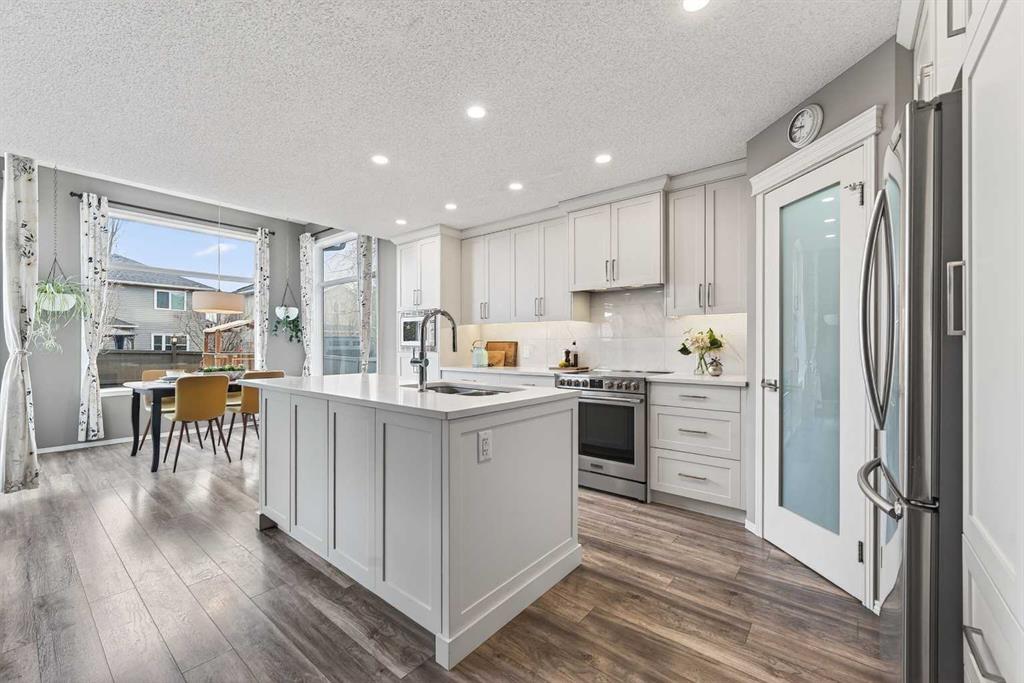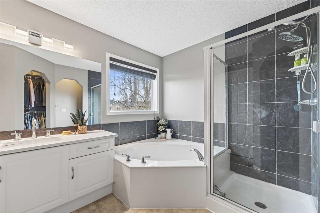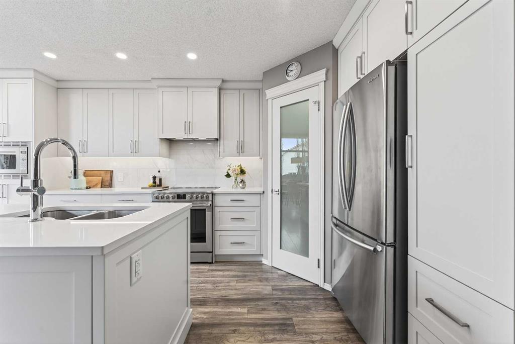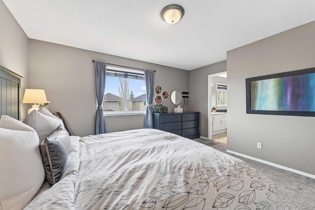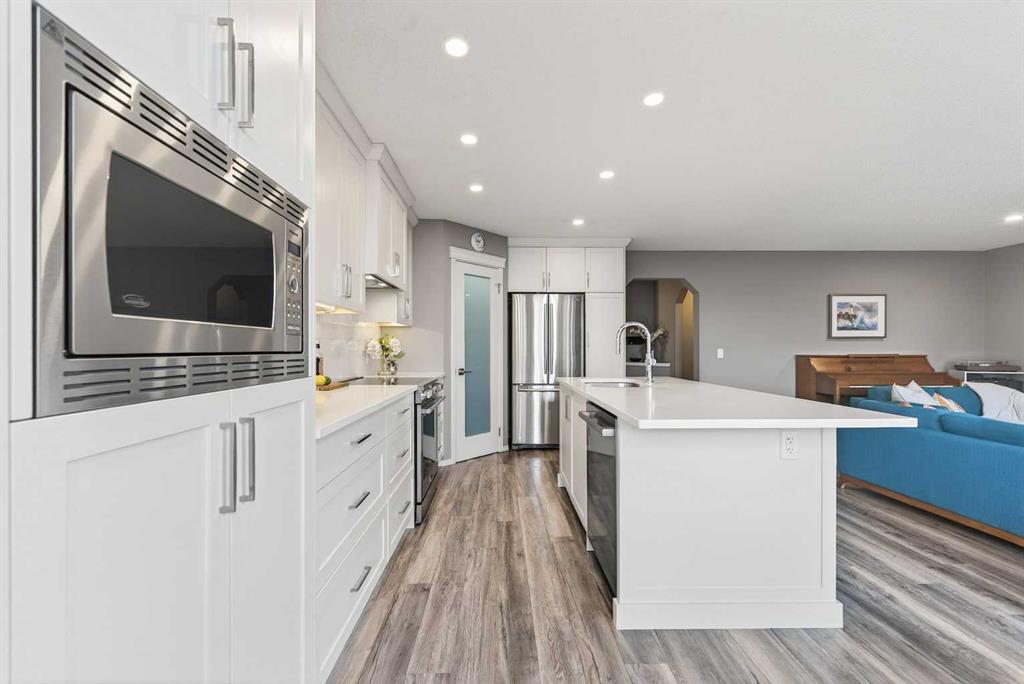 Tucked onto a quiet, family friendly street in the beautiful Lake Chaparral, this fully developed 2 storey home delivers the kind of space, upgrades, and backyard setting that’s hard to find. With over 2,300 sq ft of total developed space, this home offers tasteful renovations and pride of ownership throughout. The main floor has been completely elevated with a professionally renovated kitchen space, featuring quartz countertops, upgraded lighting, high-end appliances, built-in microwave, ceiling height shaker style cabinets and clever storage including deep appliance drawers. The layout flows into a bright living area with corner feature gas fireplace and dining space with soaring ceilings and oversized windows that bring in natural light year-round. A convenient laundry room/mudroom and 2 piece bath complete the level. Upstairs, you’ll find 3 bedrooms including a spacious primary retreat that easily fits a king-sized bed, complete with a walk-in closet and a refreshed ensuite with huge corner soaker tub. The additional bedrooms are generous and ideal for growing families. The fully finished basement adds additional versatility with a large rec room, fourth bedroom, full bathroom, and extra storage, ideal for guests, teens, or multi-purpose living. Where this home truly stands out is the backyard. Private, quiet, and lined with mature aspens, there are no direct rear neighbour allowing endless hours of afternoon sun. There’s alley access, plus the everyday convenience of back-lane garbage pickup. The yard itself is built for enjoyment, featuring raspberry bushes, a custom-built playhouse, and plenty of room to relax or entertain. Major updates have all been taken care of in the past 5 years, including the furnace, hot water tank, roof, and the addition of A/C. Durable German-made scratch-resistant flooring runs throughout, and bathrooms have been tastefully refreshed with a modern, bright feel. All of this in one of Calgary’s most established lake communities offering unlimited access to Chaparral Lake with tons of green space, and a true community feel. Enjoy summer beach days, winter skating and ice fishing, plus year-round programs and events. And with 2 schools nearby (one just a 5 minute walk), parks, playgrounds, and amenities all close by, the location checks every box. This Chaparral home checks the boxes buyers are waiting for!