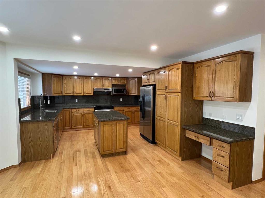 A rare opportunity to own a beautiful home backing directly onto the Bow River with a private west facing backyard. It features a unique oversized garage that appears as a standard two car garage, but has plenty of room for multiple vehicles and work space. The house is immaculate and move in ready with all 3 levels fully finished and recently painted. The main level features oak hardwood flooring and a family friendly floor plan. Generous sized kitchen with granite countertops and eating area with a view looking out at the green space. Enjoy entertaining in the living room with a vaulted ceiling and an elegant dining room. Upstairs you will enjoy a large primary bedroom with a walk-in closet and an ensuite featuring a separate bathtub and shower plus double sinks. There are 2 additional bedrooms that are perfect for kids or guests. A second full bathroom and extra large linen closet with ample storage space complete the upper level. The basement is fully finished with a large open rec room, pool table area, office, full bathroom and plenty of storage. The yard is fully landscaped with a west facing deck overlooking the peaceful river valley. The finished oversized garage is approximately 840 sq feet, has plenty of room for extra vehicles like a truck or boat plus hot & cold water and will provide ample storage. Roof, furnace and air conditioner all replaced in last 3 years plus poly B has been removed. Various pathways & parks are easily accessible right from your front door!
