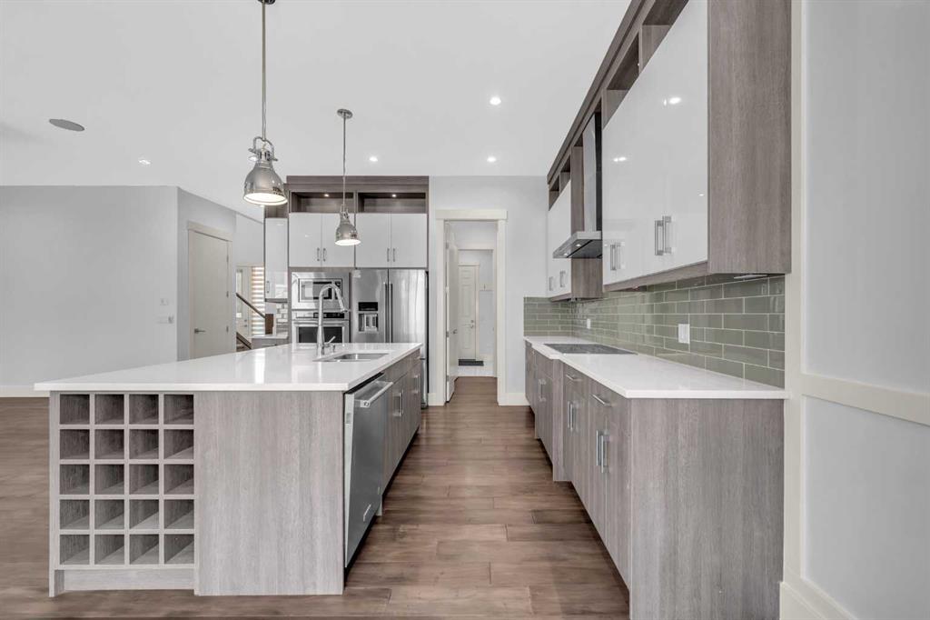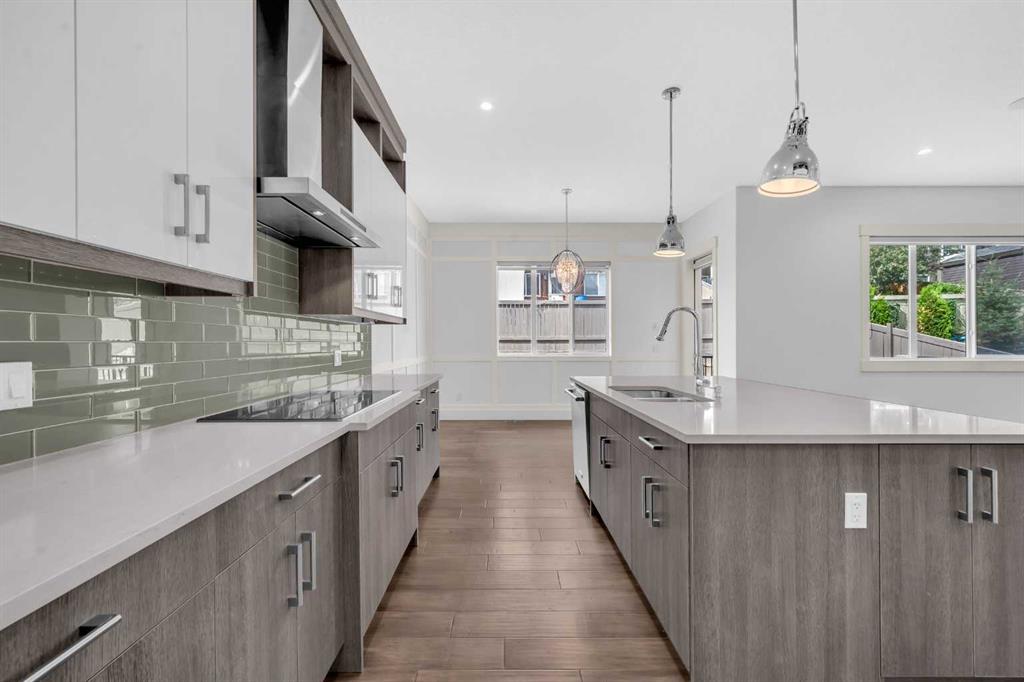 Exceptional Luxury Living in Evanston – 2-Storey Executive Home | 5 Bedrooms + Den (2 Ensuites) | Finished Basement w/ Side Entrance | A/C | Stucco Exterior. Welcome to this immaculately maintained and extensively upgraded luxury home located in the highly sought-after community of Evanston. Perfectly designed for large families and multi-generational living, this impressive 2-storey residence offers a thoughtfully planned layout with over 3,000 sq. ft. of living space across three levels, including 4 spacious bedrooms upstairs, a main-floor den, and a fully finished basement.As you step into the grand foyer, you’re greeted by 9-foot ceilings, warm hardwood flooring that flows throughout the main level, and an abundance of natural light. The inviting living room is anchored by a beautifully tiled centered gas fireplace, creating a cozy and elegant space to unwind or entertain.The heart of the home is the chef-inspired kitchen, featuring ceiling-height cabinetry, high-end stainless steel built-in appliances, sleek quartz countertops, and an expansive island with bar seating — ideal for casual dining or hosting guests. A spacious walk-through pantry leads conveniently to the mudroom and garage, offering additional storage and functionality. Adjacent to the kitchen is a generous dining area that overlooks the fully landscaped backyard, creating a seamless indoor-outdoor experience.Also on the main level is a flexible den space, perfect as a home office, guest room, or fifth bedroom, offering convenience and versatility for changing family needs.Upstairs, the home continues to impress with 4 generously sized bedrooms, each offering ample closet space and large windows. Three of the bedrooms feature private ensuite bathrooms, making this an ideal setup for families or guests who value privacy. The primary suite is a true luxury retreat, complete with a large walk-in closet and an opulent 5-piece ensuite featuring dual sinks, a deep soaker tub, separate glass shower, and high-end tile finishes throughout. A bright and open bonus room completes the upper level — perfect as a secondary living space, playroom, or media lounge.The professionally finished basement offers even more space to live and entertain. With a separate side entrance, this level includes a huge family/recreation room, a fully equipped wet bar, a spacious bedroom, and room to potentially add an additional bathroom or kitchen setup for future rental income or extended family living. Outside, the home is complete with a fully landscaped and fenced backyard, ideal for summer BBQs, kids’ play, or quiet evenings outdoors. The durable stucco exterior adds both style and low-maintenance protection, while the addition of central air conditioning ensures year-round comfort. Every inch of this home has been meticulously designed and upgraded to offer style, space, and functionality.