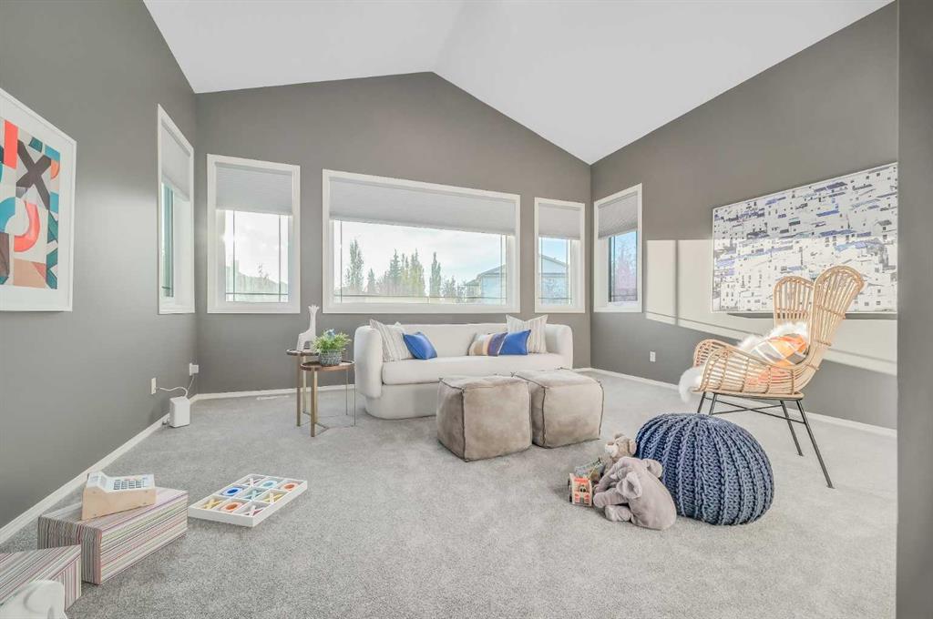 Upstairs, a vaulted bonus room, separated from the bedrooms for extra privacy, offers the perfect spot for movie nights or quiet downtime. The primary retreat features an oversized shower with seat, spa-inspired soaker tub, and walk-in closet, while two additional bedrooms and a full 4-piece bath complete the level.