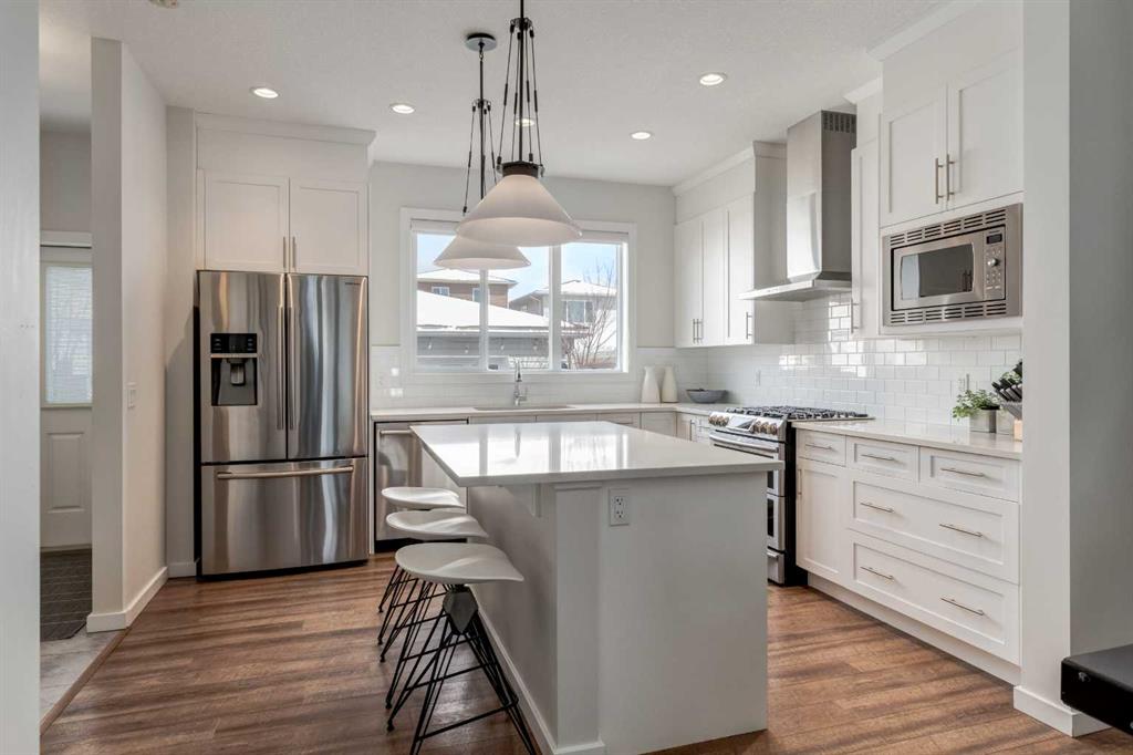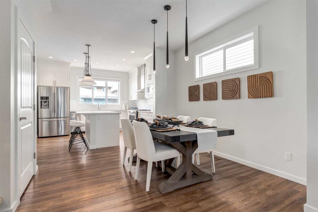 Tucked into the sought-after west Cochrane community of Heritage Hills, this impeccably maintained three-bedroom, two-and-a-half-bath home offers a refined balance of comfort, design, and natural beauty. From its inviting front veranda to its thoughtfully curated interiors, the home unfolds with an effortless sense of warmth and sophistication. Bathed in natural light, the open-concept main level is designed for both quiet moments and gracious entertaining. The living space flows seamlessly into a well-appointed dining area and a contemporary kitchen featuring stainless steel appliances, a gas range, and generous cabinetry, an elegant yet functional backdrop for daily living. Upstairs, a serene primary retreat offers a walk-in closet and private ensuite, complemented by two additional bedrooms and a full bath. A conveniently located laundry room enhances the home’s thoughtful design.
