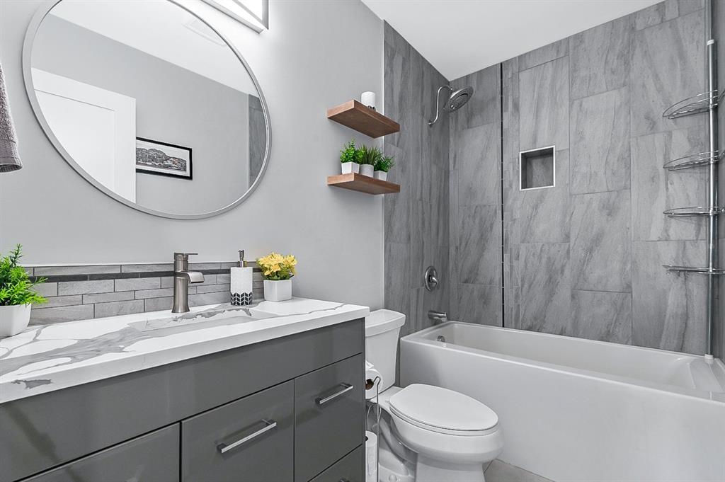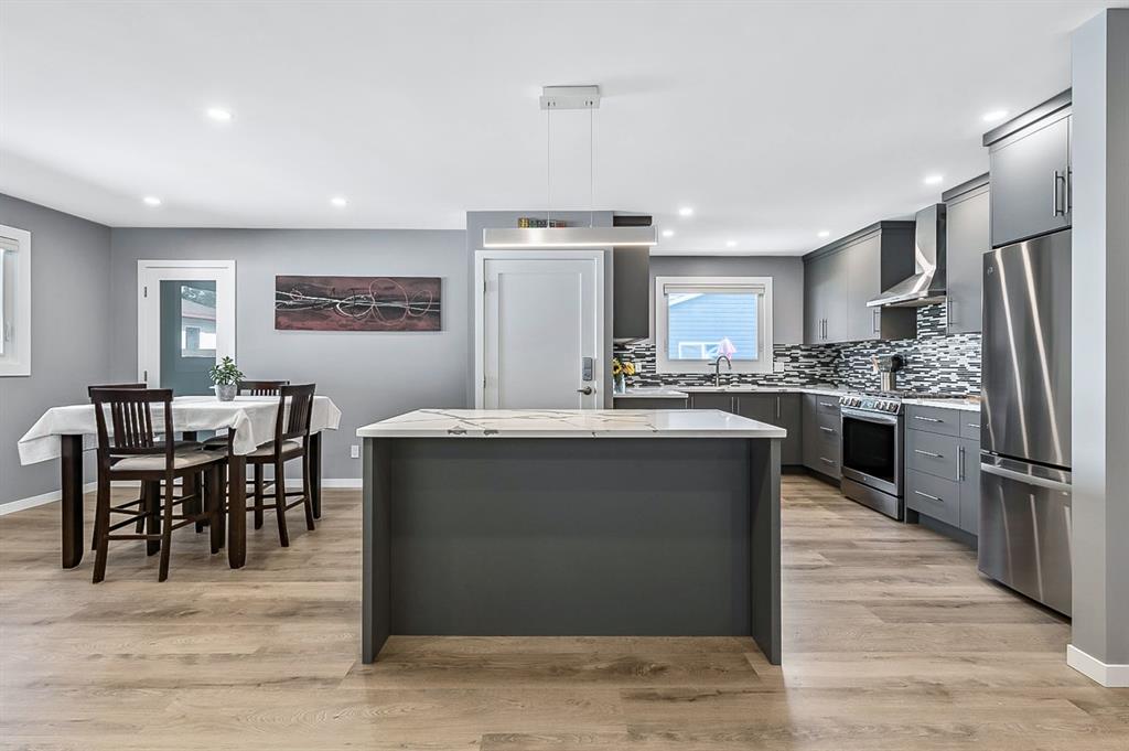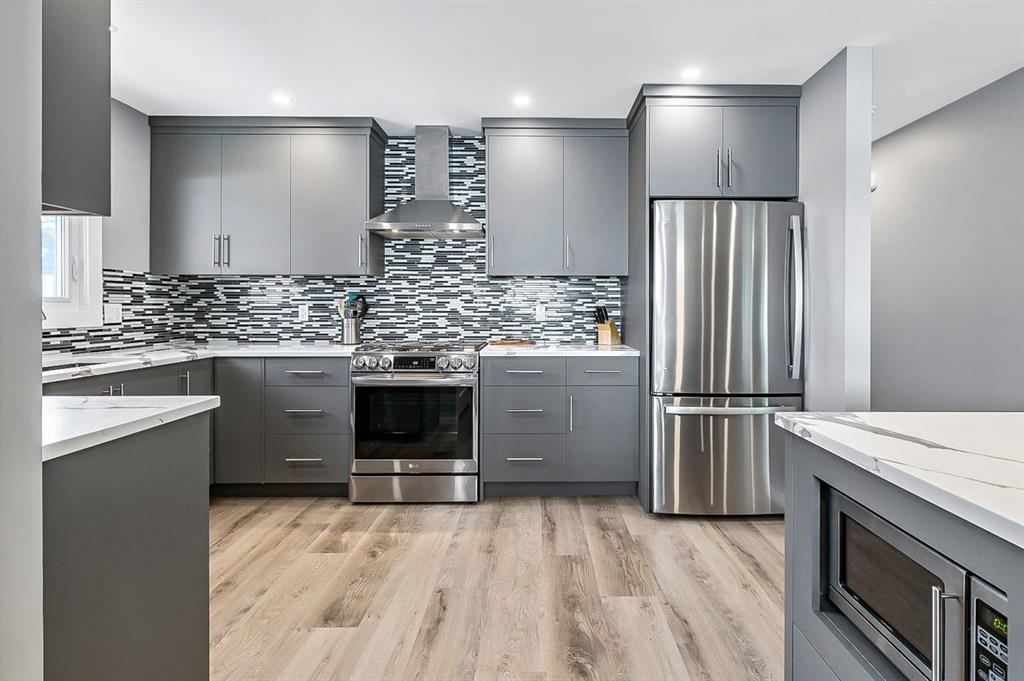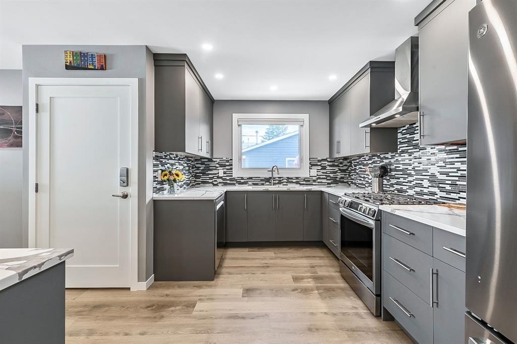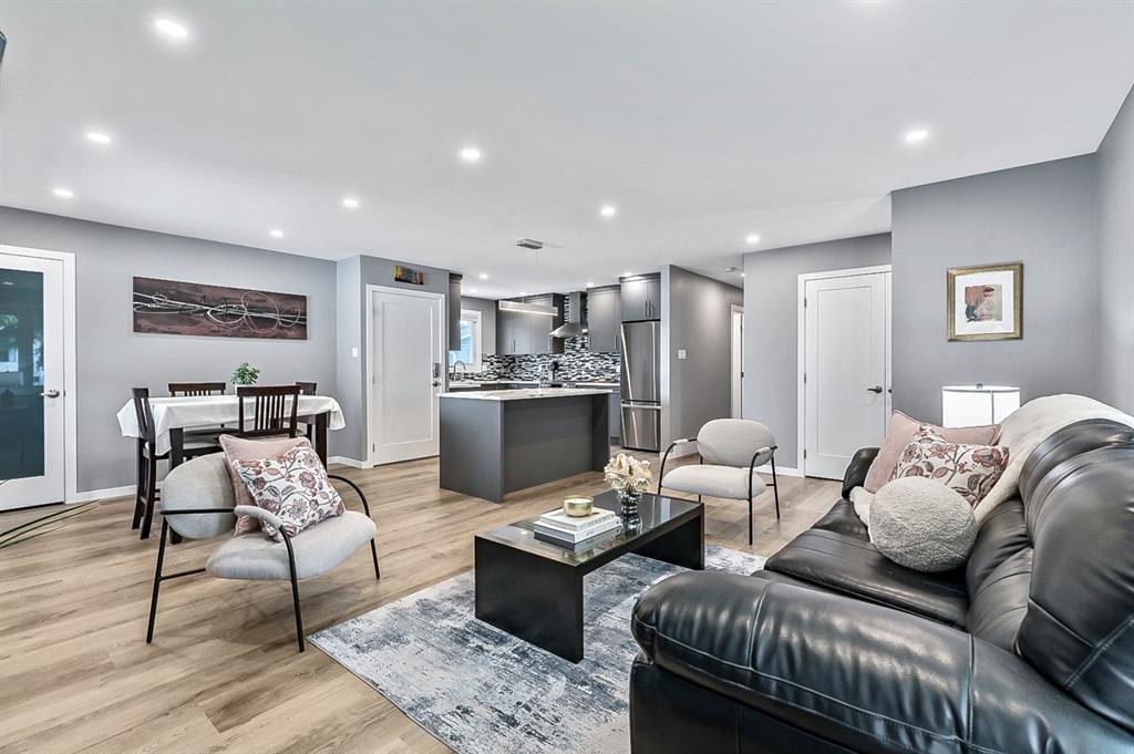This 5-bedroom bungalow blends classic curb appeal with a fully modern interior. Step inside and it’s all crisp lines, custom finishes, and designer-level attention to detail. The main floor feels bright, open, and warm — think flat ceilings, quartz counters, slow-close cabinetry, and that kind of “someone actually cared about this reno” energy.