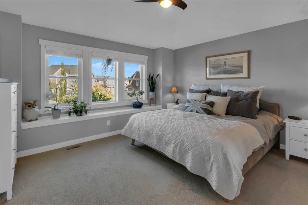 OPEN HOUSE Oct 18 (2-4pm). This stunning residence perfectly blends refined style with everyday functionality, offering a thoughtfully upgraded design in one of the city’s most sought-after neighbourhoods. Known for its tree-lined boulevards, manicured pathways, and award-winning master planning, Coopers Crossing embodies community elegance — and this home fits right in. Inside, discover freshly painted interiors in a soft modern grey, complemented by brand-new luxury vinyl plank flooring and an abundance of natural light that creates an inviting, airy feel throughout. The gourmet kitchen is a true showpiece featuring granite countertops, dark custom cabinetry, a gas stove, stainless-steel appliances, and a chef-style hood fan, flowing seamlessly into a bright dining space and a spacious living room with a cozy gas fireplace — perfect for entertaining or relaxing nights in. A main floor office provides the ideal work-from-home setup, while convenient main floor laundry adds everyday ease. Step outside onto the two tiered deck with full privacy walls and pergola to the oversized finished double garage equipped with 220V wiring, a gas overhead heater, with alley access for ultimate convenience. The exterior impresses with Gemstone lighting, three gas lines ready for your BBQ, fire table, or outdoor heater — giving you endless possibilities for outdoor enjoyment year-round. Upstairs, retreat to the king-sized primary suite showcasing vaulted ceilings, a massive walk-in closet, and a spa-inspired ensuite with a soaker tub and oversized glass shower. Two additional bedrooms, a full bath, and a spacious bonus room complete the upper level, offering space for family or guests. The unspoiled basement awaits your personal touch — whether that’s a home gym, media room, or additional living area. Located just steps from award-winning schools, parks, pathways, and Coopers Town Promenade, this home offers the perfect balance of luxury, location, and lifestyle. Please allow 24hr notice for showings to remove pets.