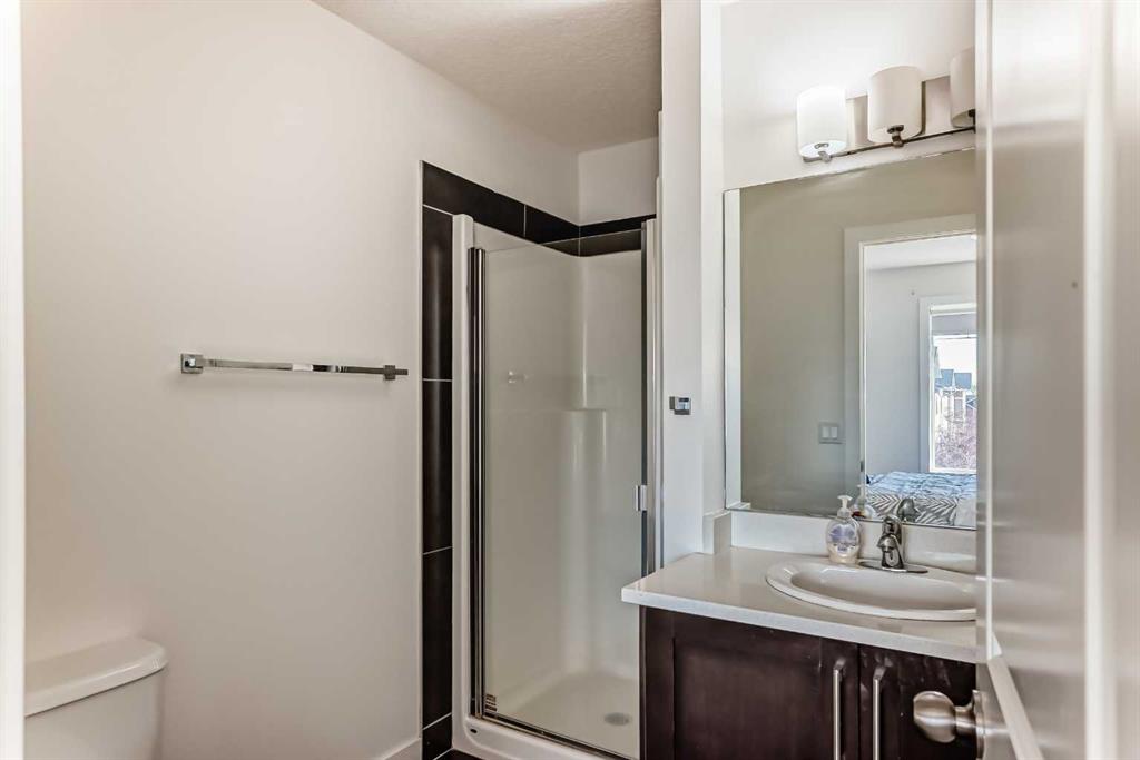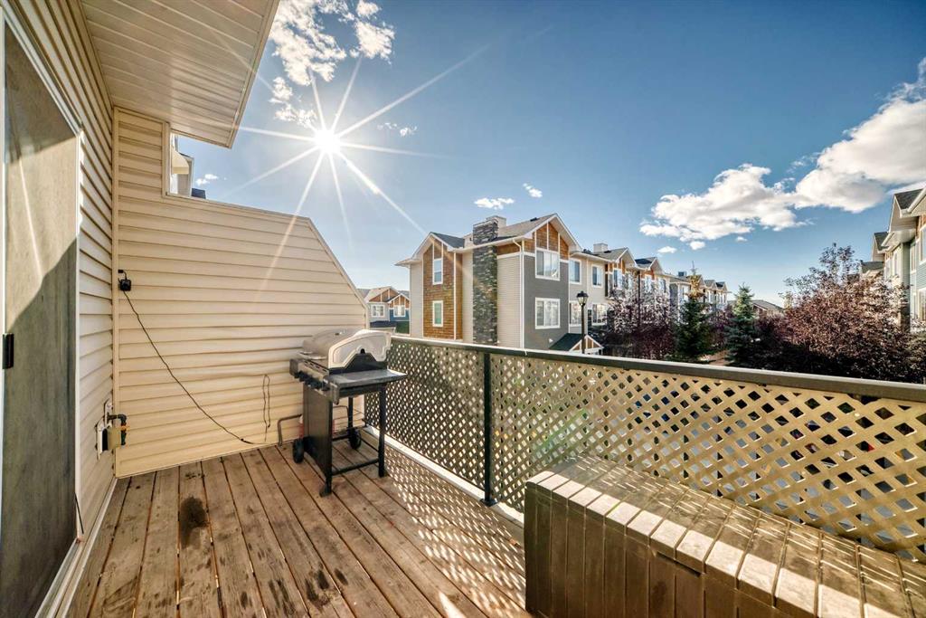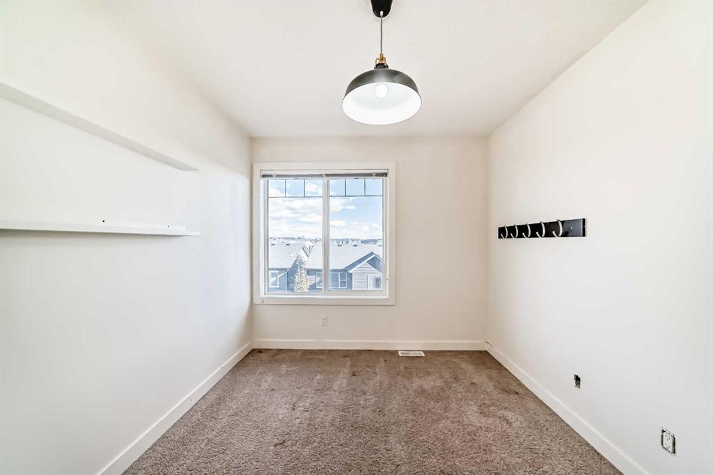 The ground floor entrance near garage leads to fabulous office workspace with built in desk and shelving. Entrance foyer with large closet and access to 2 pc bath, as well as inside entrance to garage where you will find the furnace/mechanical room. Carpeted stairs lead up to a beautiful open, spacious full of natural light main living area. There is a beautiful accent wall in dining and living room plus almost full width windows which floods the room with natural light. Kitchen features lots of rich dark natural wood cabinetry which highlights the gorgeous white quartz countertops and island. Gleaming stainless steel appliances complete your dream kitchen. Sliding patio doors lead to a balcony with enough room for the whole family. The upper level has 3 spacious bedrooms including a primary bedroom with a 3 piece ensuite and 2 double clothes closets. The upper level laundry room with stackable washer/dryer is a real step saver. Front yard is a fenced and private mini oasis with low maintenance landscaping with trees and bushes providing almost total privacy. Call your favourite Realtor to view this great family home.
