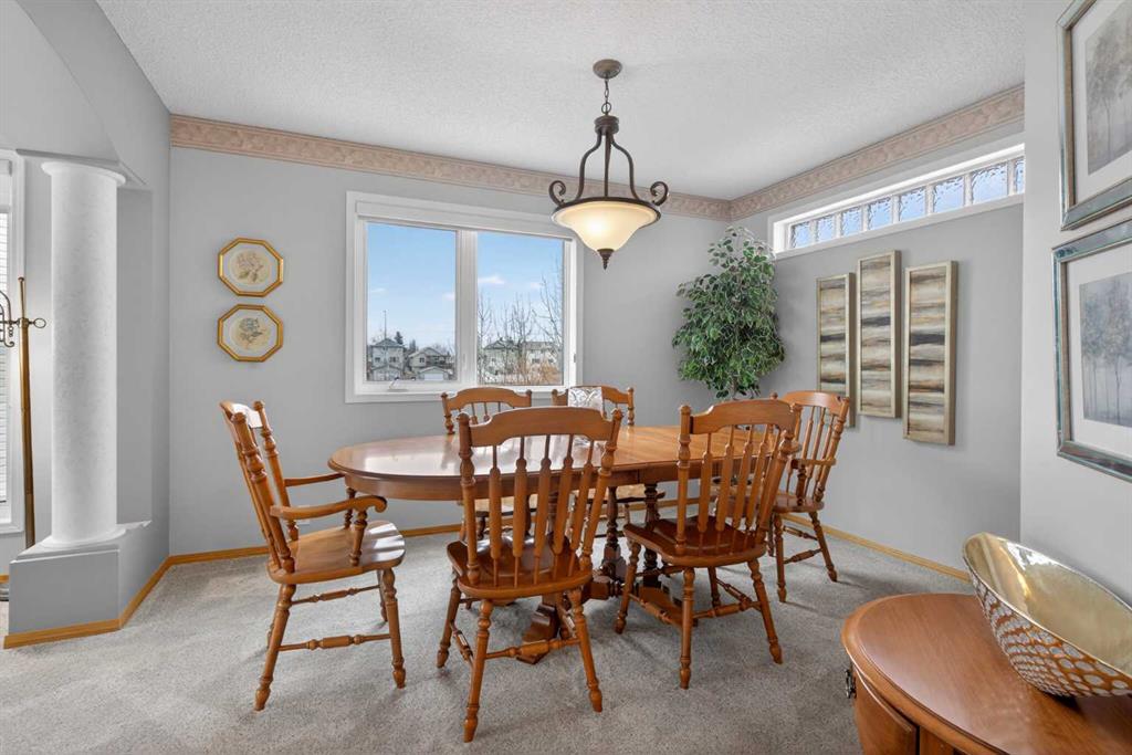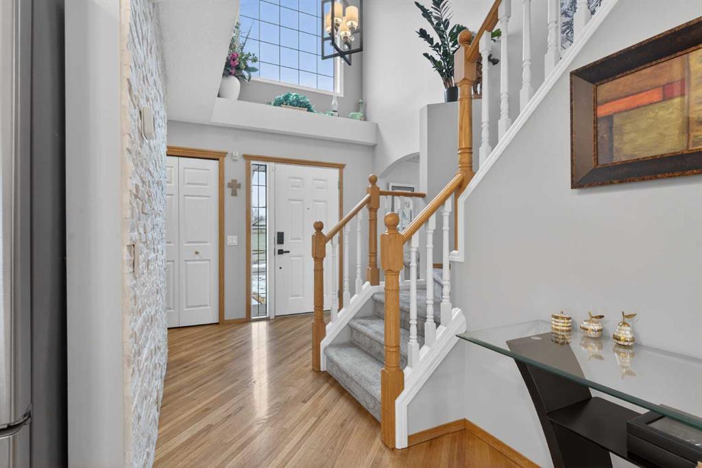 ** OPEN HOUSE FRIDAY 3-5pm *** Rare 5 BEDROOMS, 3.5 BATHROOMS – WALKOUT home set on a quiet cul-de-sac with beautiful views toward the creek and pond. This property offers a sense of calm that’s hard to describe until you experience it. There’s space between homes, no one walking behind you, and a backyard that is private, sunny, and peaceful. Steps to Bridlewood Wetlands Park, you can also enjoy a stroll to Bridlecreek Park and sit on the dock benches while taking in the ducks, birds and natural surroundings. Inside, the main floor is bright and inviting, with an abundance of new Lux triple-pane windows that bring in natural light throughout the day. The kitchen is modern and functional, featuring quartz countertops, an island and a corner pantry and opens nicely to the main living and dining areas. Hardwood flooring adds warmth, and the layout works well for both everyday living and entertaining. Upstairs, the home offers spacious bedrooms and bathrooms, including a primary retreat with a large soaker tub set beside a window overlooking the pond. The upper level also enjoys beautiful views over the water, adding to the peaceful feel of the home. The fully developed walkout basement adds valuable living space with large windows, excellent natural light, a cozy fireplace, built-in desk area, fourth bedroom and full bathroom. Outside, the upper deck is a wonderful place to relax or entertain while enjoying the sunny yard and natural setting and the glass railing keeps the view open and unobstructed. Mature landscaping, privacy and the open outlook toward the pond make this outdoor space especially enjoyable. Located close to parks, schools, Spruce Meadows and all your everyday amenities, this home offers both convenience and a setting that feels connected to nature, something that is truly hard to find in the city.