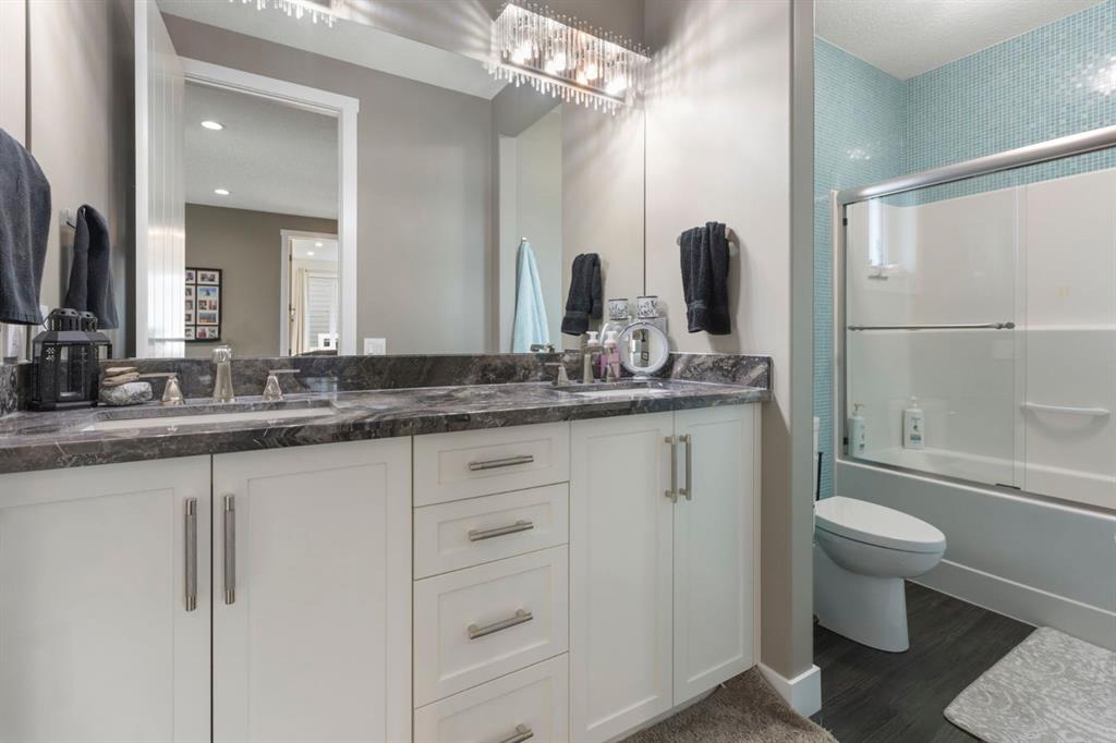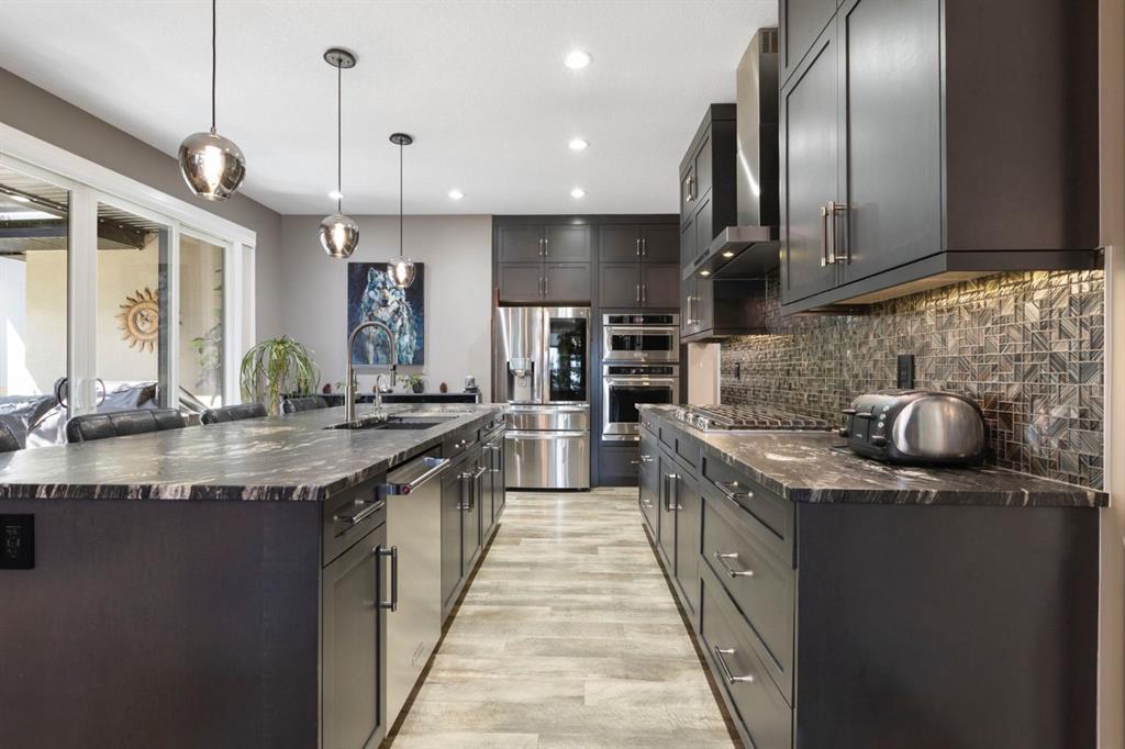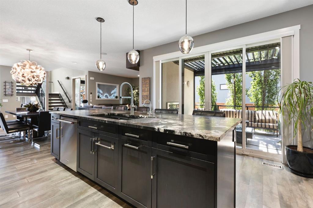 Welcome to this fully loaded luxury home designed with every detail in mind. Offering over 4,000 SF of finished living space, 6 bedrooms, and over $300K in recent upgrades inside and out, this home is truly perfect for a large or growing family. From the oversized heated 3-car garage with epoxy floors to the stunning indoor/outdoor living spaces, this property offers the ideal balance of function, comfort, and lifestyle. The heart of the home is the chef-inspired kitchen featuring leathered granite counters, under-cabinet lighting, high-end stainless steel appliances including a 5-burner gas stove, convection oven, LG fridge with sphere ice maker, microwave, plus a second fridge and wine fridge in the large pantry. A dedicated coffee station makes mornings effortless. The main floor also includes a private office, an expansive living room with a dramatic two-way fireplace, plus laundry with a convenient laundry chute. Upstairs, retreat to the luxurious owners’ suite with its private balcony, coffee station, custom dressing room, and spa-inspired ensuite with heated floors, marble vanities, oversized glass shower, skylight, and jetted tub. Three additional bedrooms with blackout shades, a full bathroom with double sinks, and a versatile bonus/games room complete the upper level. Remote blinds on front and upper bedroom windows have been add both comfort and privacy. The basement is designed for entertaining and extended family living, a nanny suite or tenant, with a full wet bar (fridge, microwave, dishwasher), second laundry, and a separate entrance. Outdoors, enjoy an automatic 4-season screened-in porch with a louvered roof, gemstone lights, irrigation, raised garden beds, water feature, cushioned turf, and a large storage shed. The low-maintenance yard and side yard access make this space practical as well as beautiful. Additional features include built-in ceiling speakers, water softener, instant hot & cold tap in the kitchen, air conditioning, decorator finishes, and an extra-long driveway with paved alley access. Located minutes from top-rated schools, Bingham Crossing, coffee shops, daycare, and upcoming amenities including a new Costco, Nordic Spa, and the East Harmony Trail extension, this property also offers easy access to downtown Calgary, the Springbank Airport, Calaway Park, and the Rockies. This is more than a home—it’s a complete lifestyle in Harmony with Lake Access. Book your private showing today and experience all the upgrades and comforts for yourself.