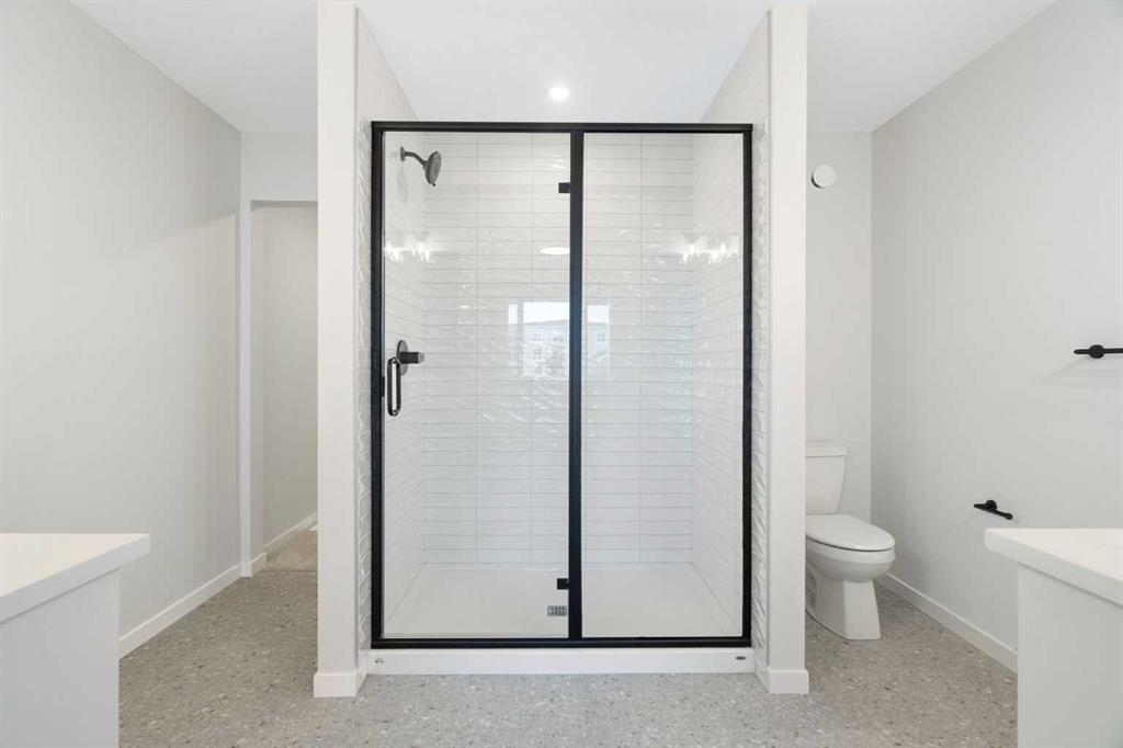 Welcome to the Strathcona by Cedarglen Homes – a home designed for those who crave connection, comfort, & a touch of everyday luxury. Nestled in Creekview, Calgary’s newest southwest community surrounded by natural beauty and modern convenience, this brand new 4 bedroom home delivers the perfect balance of function and sophistication. Step through the inviting covered front veranda, and you’re greeted by a warm, open-concept main floor that invites gathering. The great room at the front of the home sets the tone – bright, welcoming, and effortlessly stylish with soaring ceilings. At the heart of the home, the kitchen brings everyone together with its light cabinetry, quartz countertops, and striking black hardware. A large central island makes it easy to entertain while staying connected to the dining nook overlooking the backyard deck – perfect for summer barbecues and cozy weekend mornings. Everyday living feels effortless thanks to thoughtful details like the mudroom with built-in storage, the tucked away powder room, and the natural flow between kitchen, dining, and living spaces. Upstairs, the primary suite is your retreat – spacious, serene, & complete with a walk-in closet and spa-inspired ensuite featuring a fully tiled shower and dual sinks. Two additional bedrooms, a bright main bath, and a convenient flex area (great for a play space or desk) make this level as practical as it is peaceful. The finished basement adds incredible flexibility, offering a separate entrance, fourth bedroom, full bathroom and a versatile rec room – the perfect setup for guests, teens, or future suite potential. Modern finishes run throughout, from warm-toned vinyl plank flooring to the subway tile backsplash and stunning light fixtures creating a cohesive look that feels fresh and timeless. Outside, a finished deck with a gas line invites you to enjoy the sunshine and fresh air, while the stone façade on the front of the home adds instant curb appeal. With Cedarglen’s trusted craftsmanship, this home is a rare opportunity to own in one of Calgary’s most exciting new communities – where style meets simplicity and every detail is designed for real life. Live beautifully in Creekview. Just minutes from Macleod and Stoney Trail, this community offers effortless access to downtown, major shopping like Township Centre, and the surrounding communities of Silverado and Legacy for schools, dining, and recreation. Schedule your private showing today and discover why the Strathcona is more than a home – it’s your next chapter.