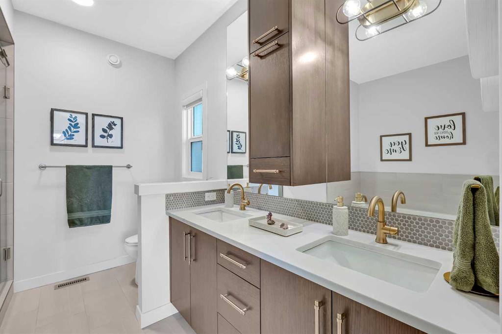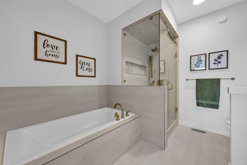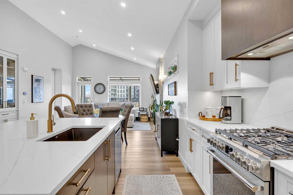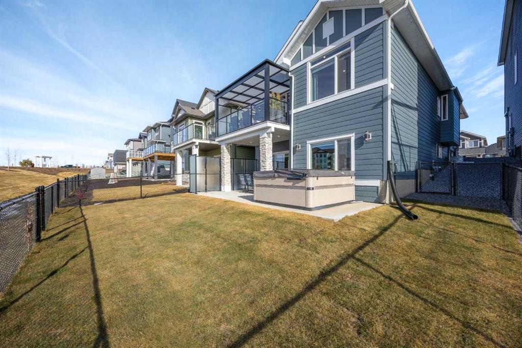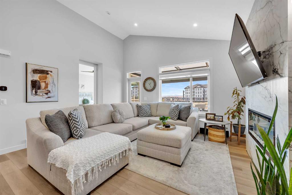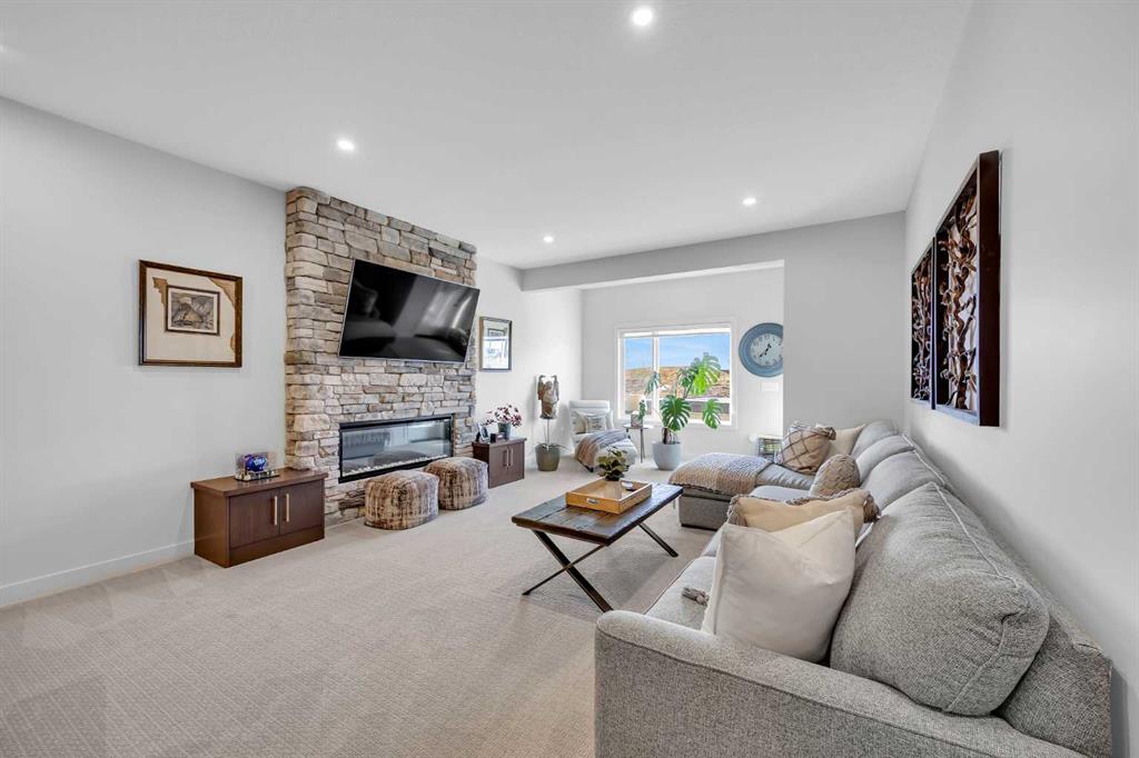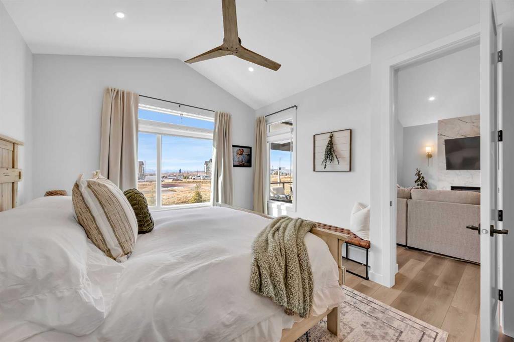 Welcome to this stunning walkout bungalow in Wedderburn, Okotoks, offering over 2,500 square feet of developed living space, mountain views, and a layout designed for both everyday living and entertaining. Featuring three bedrooms, two and a half bathrooms, a main floor den, a dedicated gym, and a fully finished walkout basement with a built-in dry bar, this home presents a rare opportunity to own a highly upgraded bungalow in one of Okotoks’ most desirable and growing communities. The main level is defined by soaring vaulted ceilings and expansive windows that fill the home with natural light. At the center of the space is an oversized chef-inspired kitchen designed to impress, complete with quartz countertops, a large island, full height cabinetry, a walk-in pantry, upgraded built-in appliances, and a custom hood fan. A built-in hutch adds both function and character, while the open concept layout connects seamlessly to the dining and living areas. The great room is anchored by a sleek linear fireplace and opens directly onto the main floor deck, creating an ideal setting for indoor-outdoor living and entertaining. The primary suite is thoughtfully positioned for privacy and offers a spacious walk-in closet and a beautifully finished ensuite featuring dual vanities, a soaker tub, and a fully tiled shower. A main floor den provides flexibility for a home office, study, or quiet retreat. The mudroom and laundry area are well designed with built-in cabinetry, quartz counters, and excellent storage, and connect directly to the double attached garage for everyday convenience. The fully finished walkout basement extends the living space with two generously sized bedrooms, a full bathroom, a dedicated gym, and a large recreation area with a second fireplace and built-in dry bar. Step outside to the lower patio and enjoy the seamless connection to the outdoors that walkout living provides. Located in Wedderburn, Okotoks, this home offers access to pathways, parks, and nearby amenities, with convenient access to Calgary. This is a rare opportunity to own a move-in ready walkout bungalow with elevated finishes, functional design, and exceptional living space.