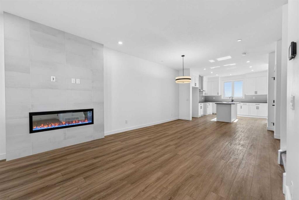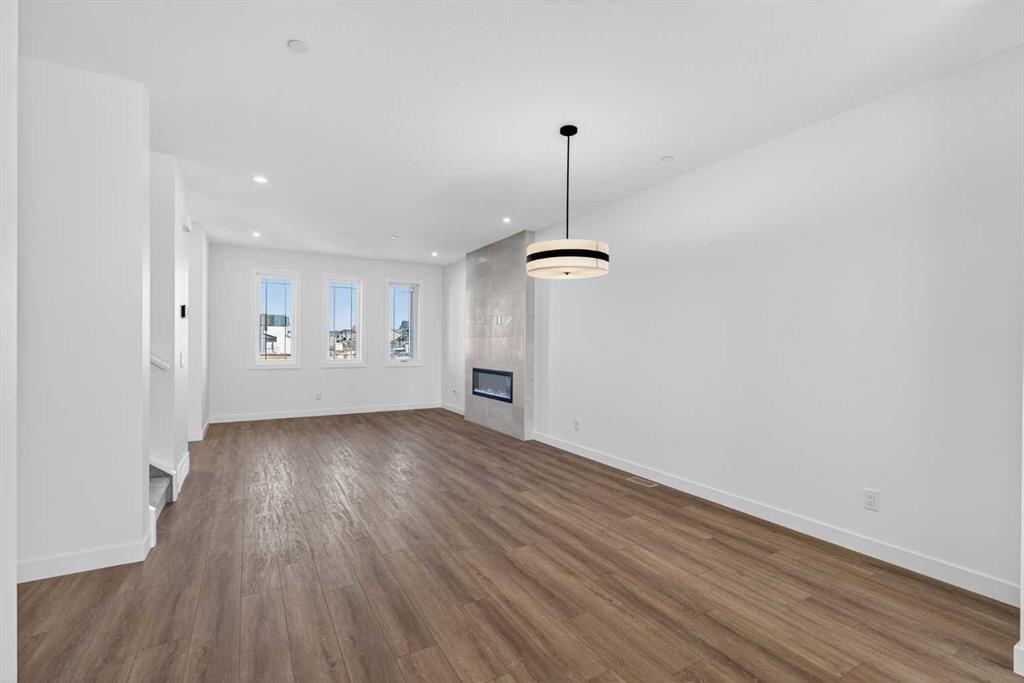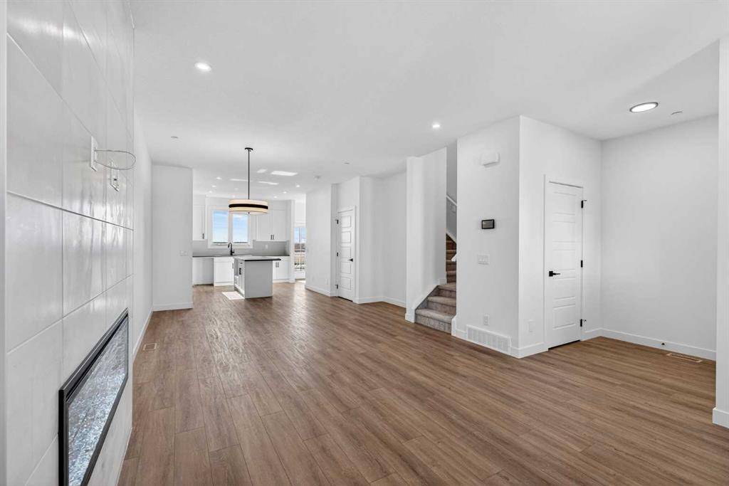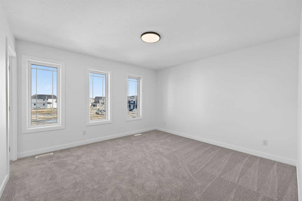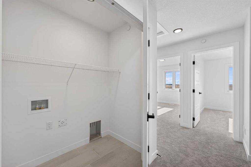 Introducing the Newport III by Broadview Homes, a brand new home in the southeast Calgary community of Hotchkiss. This thoughtfully designed home features an open concept main floor, a central upper loft, and a separate side entrance with basement rough-ins already in place for future development, offering flexibility as your living needs evolve. A large covered front porch creates a welcoming first impression and provides a comfortable outdoor space to enjoy the front of the home, while a rear deck extends the living space outdoors. The main level is designed for both functionality and everyday comfort. The kitchen is positioned at the rear of the home and features a central island, generous cabinetry, and a full stainless steel appliance package including a gas range, fridge, dishwasher, built in microwave, and hood fan. The kitchen flows seamlessly into the dining area and great room, creating a bright and connected living space ideal for entertaining or daily living. The great room is anchored by an electric fireplace with floor to ceiling tile, creating a striking focal point and adding warmth to the main living area, while the adjacent dining area offers easy access to the rear deck. A convenient powder room completes the main floor. Upstairs, a centrally located loft provides additional living space that can function as a second lounge, home office, or study area. Two secondary bedrooms, a full bathroom, and a dedicated upper floor laundry area add everyday convenience. The primary suite offers a walk in closet and a private ensuite with dual vanities, creating a comfortable and functional retreat. The basement is accessed directly from the side entrance and includes rough-ins already installed for future development, offering excellent potential to expand the living space over time. Located in the growing community of Hotchkiss, residents enjoy access to scenic pathways, expansive green space, and a planned 30 acre wetland that anchors the neighbourhood. With convenient access to Stoney Trail, residents are minutes from Seton’s shopping district, the YMCA, South Health Campus, and a wide range of amenities. This Newport III offers modern design, flexible living space, and strong long term value in one of southeast Calgary’s newest master planned communities.