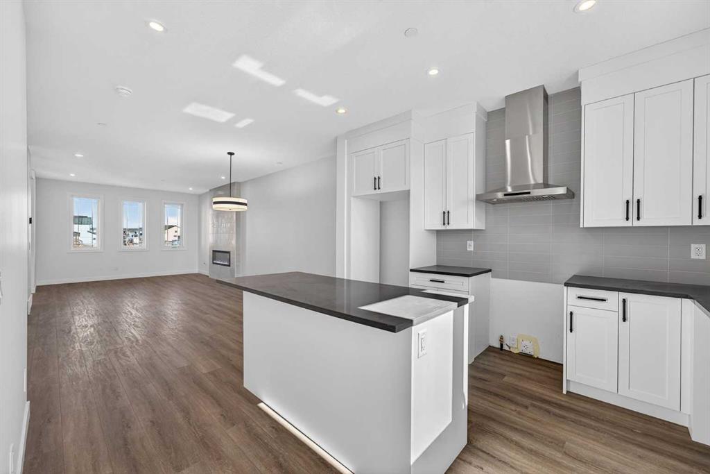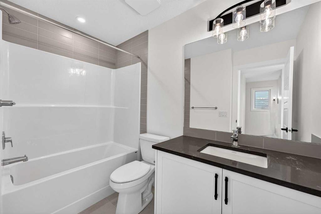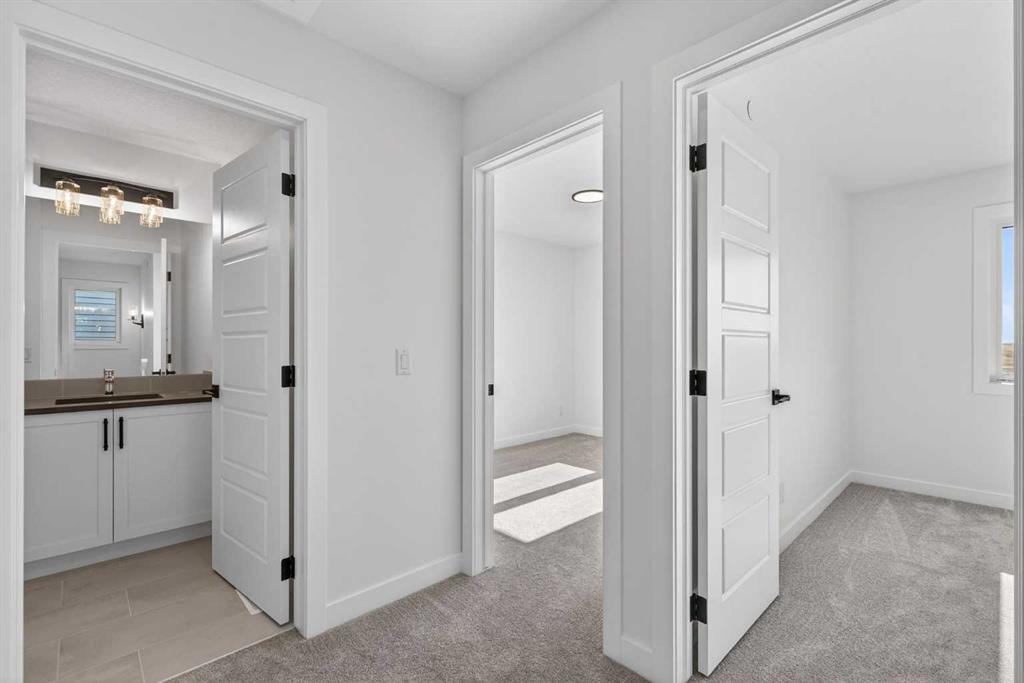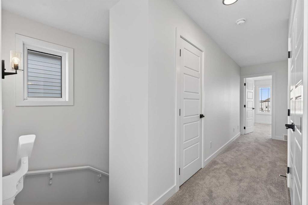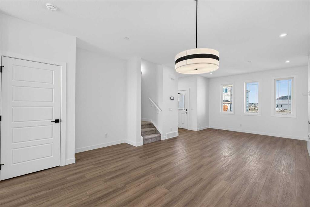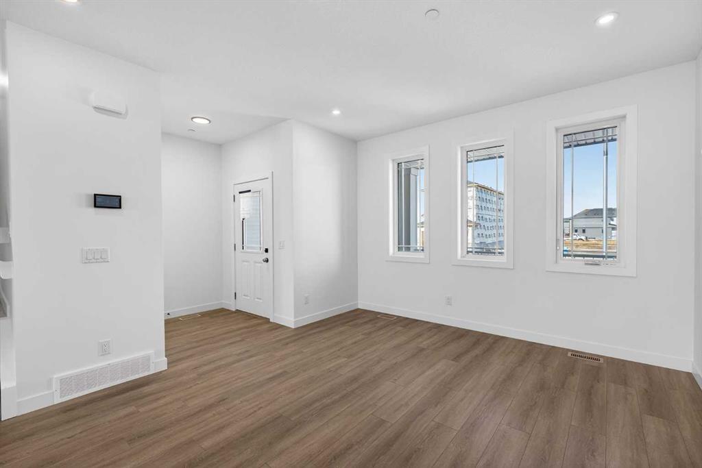 Introducing the Newport III by Broadview Homes, a brand new home in the southeast Calgary community of Hotchkiss. This thoughtfully designed home features an open concept main floor, a central upper loft, and a separate side entrance with basement rough-ins already in place for future development, offering flexibility as your living needs evolve. A large covered front porch creates a welcoming first impression and provides a comfortable outdoor space to enjoy the front of the home, while a rear deck extends the living space outdoors. The main level is designed for both functionality and everyday comfort. The kitchen is positioned at the rear of the home and features a central island, generous cabinetry, and a full stainless steel appliance package including a gas range, fridge, dishwasher, built in microwave, and hood fan. The kitchen flows seamlessly into the dining area and great room, creating a bright and connected living space ideal for entertaining or daily living. The great room is anchored by an electric fireplace with floor to ceiling tile, creating a striking focal point and adding warmth to the main living area, while the adjacent dining area offers easy access to the rear deck. A convenient powder room completes the main floor. Upstairs, a centrally located loft provides additional living space that can function as a second lounge, home office, or study area. Two secondary bedrooms, a full bathroom, and a dedicated upper floor laundry area add everyday convenience. The primary suite offers a walk in closet and a private ensuite with dual vanities, creating a comfortable and functional retreat. The basement is accessed directly from the side entrance and includes rough-ins already installed for future development, offering excellent potential to expand the living space over time. Located in the growing community of Hotchkiss, residents enjoy access to scenic pathways, expansive green space, and a planned 30 acre wetland that anchors the neighbourhood. With convenient access to Stoney Trail, residents are minutes from Seton’s shopping district, the YMCA, South Health Campus, and a wide range of amenities. This Newport III offers modern design, flexible living space, and strong long term value in one of southeast Calgary’s newest master planned communities.