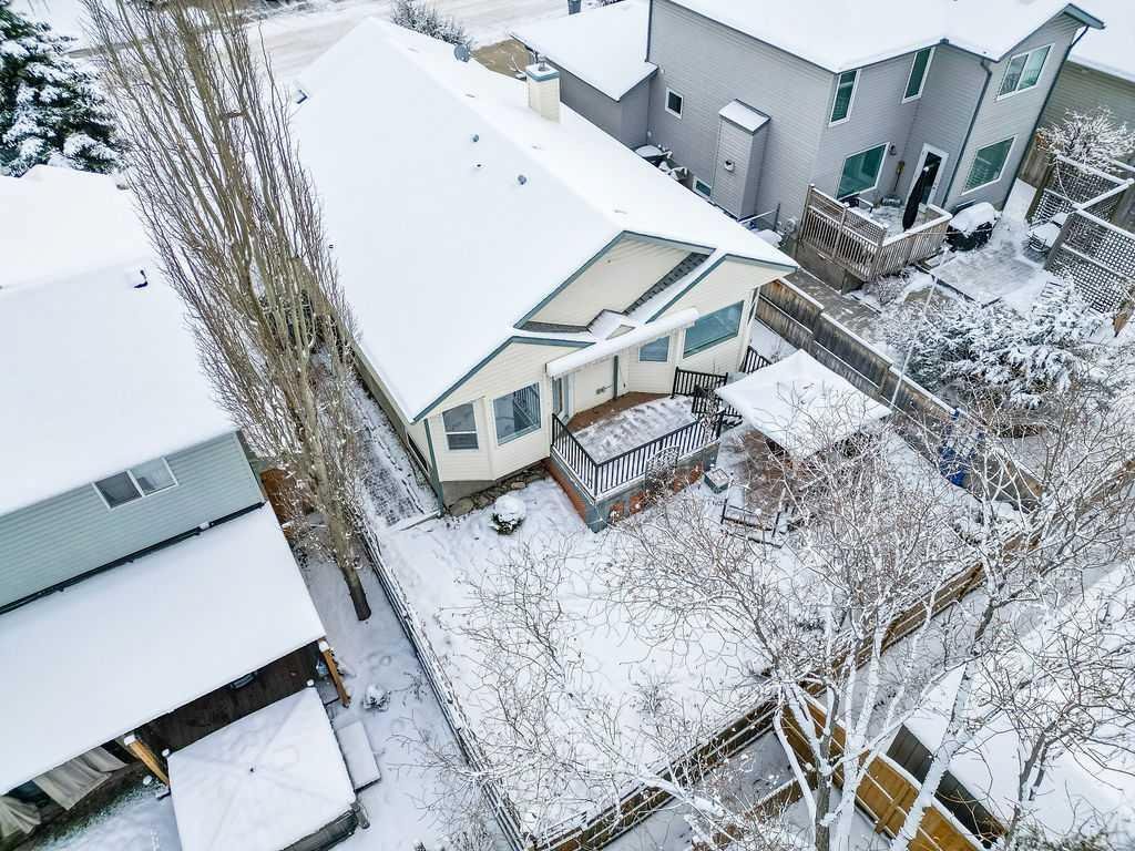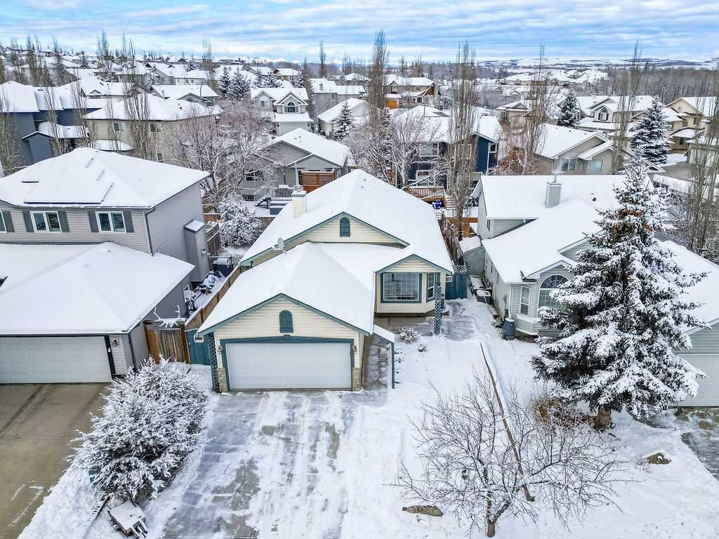 Pride of ownership shines through in this original owner, fully developed home, just steps to the Sheep River embankment. Create a lifestyle of memories in this home with features that everyone in the family will love. Step into the bright and sunny entrance and be captured by the vaulted ceilings , large windows, and gleaming floors. The main level boasts a spacious front living area with cozy gas fireplace. The perfect place to visit with family and friends – or to observe nature out the front picture window. Step through to the functional kitchen featuring loads of cupboards and counter space. The dining space is surrounded by windows and offers a peaceful space to host family meals. The functional floor plan has the bedrooms set away from the kitchen and living room. The primary bedroom boasts a large closet , room for king sized furniture, and a 3 piece ensuite with walk-in shower. 2 more bedrooms and another full bathroom complete this upper level. The lower living area has a wet bar area that could easily be converted to a mini kitchen for relatives or older children. The grand living room features an amazing gas fireplace and hearth – the perfect place to hang your stockings. Enjoy family movies in this room with surround sound ( amp and sub included) The unique spa like bathroom in lower level will certainly be a space you will want to relax in. Large jetted soaker tub provides pure bliss for the bubble bath enthusiast. A 4th bedroom and a large storage/laundry room complete the lower level. The insulated front attached double garage is a true convenience. No more walking through snow with groceries!! Relax in the back yard in a true summer oasis. West facing exposure is perfect for the gardener at heart. The upper deck has a gas line for BBQing and power awning providing shade in the afternoons. The lower deck is complete with a pergola and provides a nice bit of privacy to watch the birds and butterflies. Steps away from schools, playgrounds, miles of walking paths, shopping , and a convenient central location of Okotoks. This home is a perfect mixture of lifestyle, value, and convenience. Many features of this home include – heated floors in primary and lower level bathroom, Air-conditioning, vacuum system , 2 gas fireplaces, and UV film on all upper west windows. Make this home the first stop on your home search.