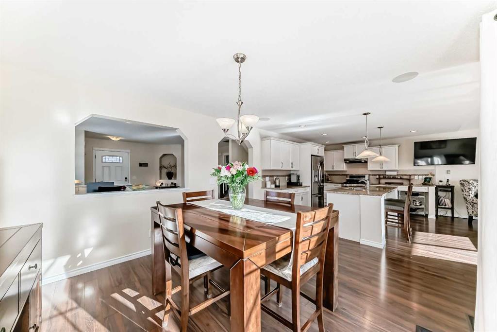 system, and built-in speakers throughout the house, including both back decks, the lower deck is also fitted with low level lighting. New roof shingles in 2021, Gas hot water tank 2020, carpets upstairs 2024, built-in Telus security system that the buyer can take over, the seller is paying $25 + tax a month. The smoke detector is also linked to Telus security. This home is a one-owner home and is immaculate and feels like new inside. You will not be disappointed. It’s got quick access to parks, pathways, nearby schools, and shopping at the Yankee Valley Crossing Shopping Plaza, the Kingsview Plaza Sierra Springs Plaza. Access the rest of the city and Calgary through several nearby major roadways, including Deerfoot Trail, Yankee Valley Blvd. Downtown Calgary is a 23 min drive.