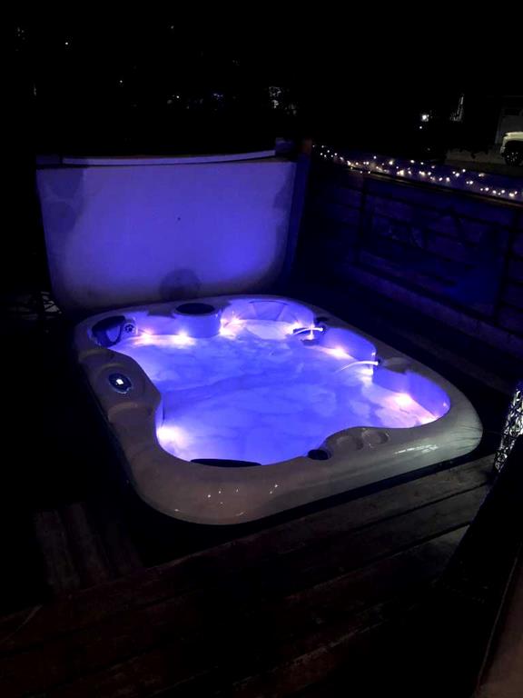 shower and a soaker tub with a separate shower head. Downstairs, you will find a 4 th bdrm without a closet, another flex room with two windows that could easily be turned into a 5 th bdrm. As well as another bathroom, plus a fabulous bar and entertainment room, with a natural theme for relaxing. All TVs and TV mounts throughout the house stay, as do the hot tub, shed, bar fridge, SONOS sound