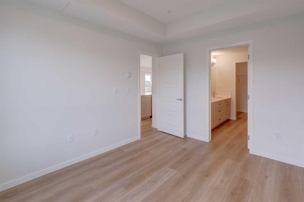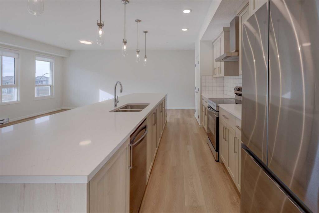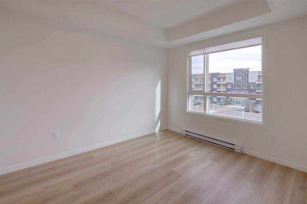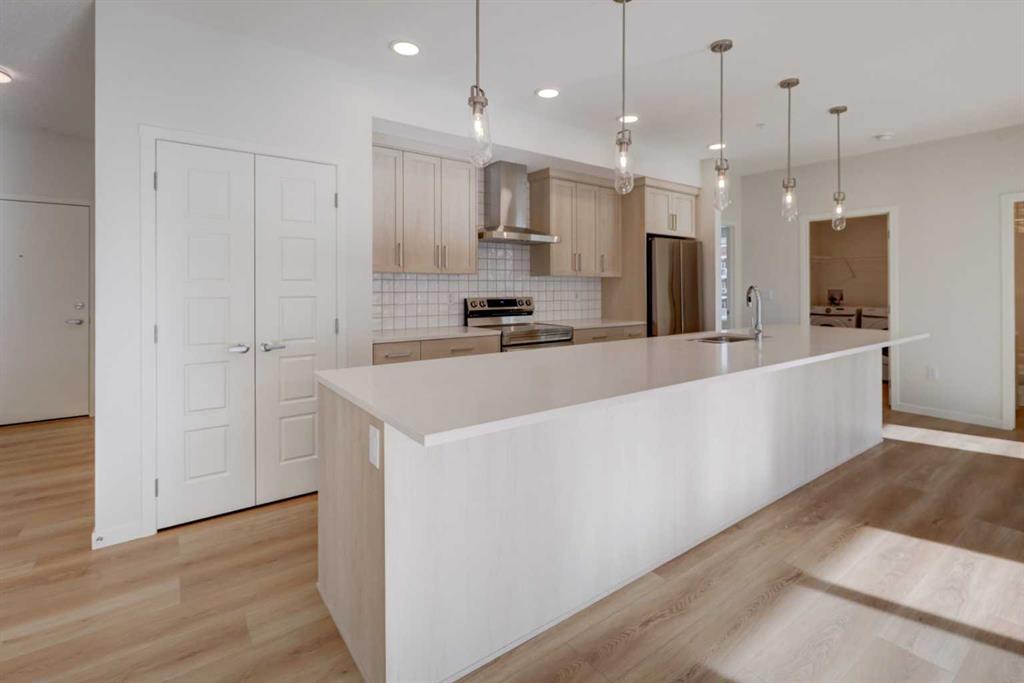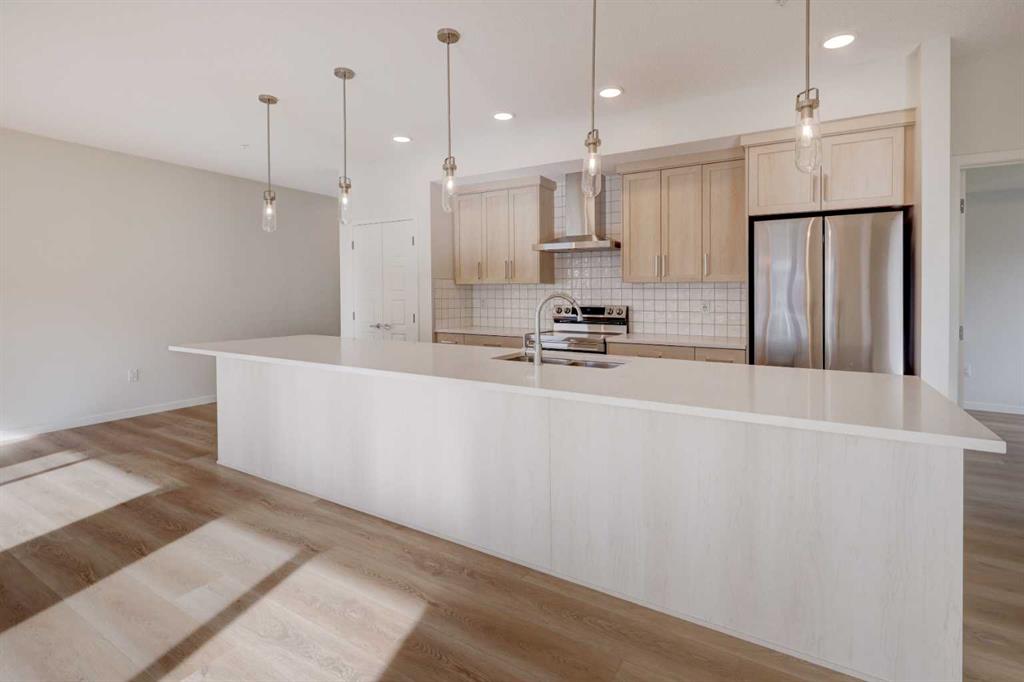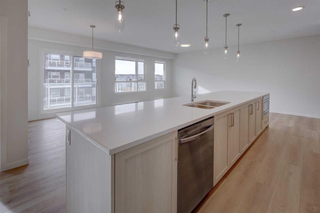 Introducing BELMONT PLAZA, a highly sought-after development in BELMONT, Calgary. BUILT BY CEDARGLEN LIVING, WINNER OF THE CustomerInsight BUILDER OF CHOICE AWARD, 5 YEARS RUNNING! BRAND NEW CORNER UNIT, “L3” floor plan with high-spec features. You will feel right at home in this well thought-out 1046.19 RMS sq.ft. (1115 sq.ft. builder size) 2 bed, 2 bath home with open plan, 9′ ceilings, LVP flooring through-out (upgraded, no carpet), Low E triple glazed windows, electric baseboard heating, BBQ gas line on the patio, A/C Rough in, and Fresh Air System (ERV). The kitchen is spectacular with full height TWO TONE cabinets, extended island upgrade, quartz counters, undermount sink, S/S appliances, including chimney hood fan, built in microwave, and pantry. The extended island is stunning and transitions into the spacious living & dining area, perfect for entertaining. The spacious primary bedroom has a large bright window, sizeable walk-in closet and 4 pc ensuite with extra bank of drawers & full height tile upgrade. 1 additional bedroom located across the unit for noise reduction/privacy and 4pc bathroom (also with upgraded full height tile) located nearby. Laundry & storage closet is thoughtfully planned, definitely a must see (washer/dryer included). Highlights include: upgraded lighting package, sound reducing membrane to reduce sound transmission between floors, clear glass railing to balconies and 1 titled underground parking stall included. Steps away from shopping, restaurants and so much more. Belmont offers a vibrant neighbourhood that’s extremely well-connected through Calgary’s major arteries. Community living with inspired design. PET & RENTAL FRIENDLY COMPLEX.