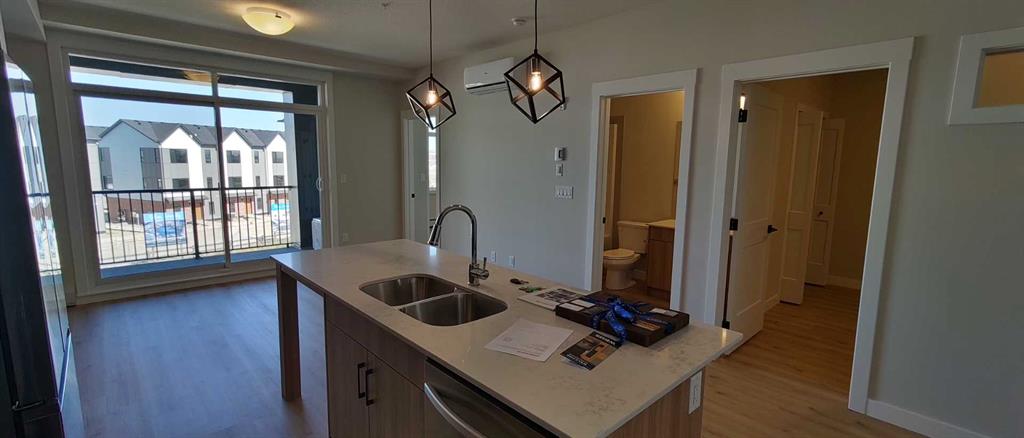 Welcome to Seton West by Logel Homes – one of Calgary’s most sought-after master-planned communities! This bright and modern 2 bed + 2 bath condo features an open-concept layout with 711 sq ft RMS, 9-ft ceilings, and large east-facing windows that fill the home with morning light. The designer kitchen offers quartz countertops, stainless-steel appliances, and a central island perfect for entertaining. The spacious primary bedroom includes a walk-in closet and 4-pc ensuite, while the second bedroom and full bath are ideal for guests or a home office. Enjoy your private balcony with BBQ gas line, in-suite laundry, and titled parking.