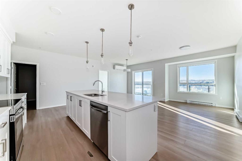 Welcome to Riverstone Manor in Cranston! Discover luxury condo living in the heart of one of Calgary’s most desirable southeast communities — Riverstone in Cranston. This beautifully designed southwest-facing unit offers 3 bedrooms, 2 bathrooms, and over 1,187 sq. ft. of stylish living space. Step inside to an inviting open-concept layout with 9-ft ceilings, Low-E triple glazed windows, and modern finishes throughout. The chef-inspired kitchen showcases full-height cabinetry, quartz countertops, stainless steel appliances, pot & pan drawers, and an oversized island perfect for entertaining. The bright living and dining areas open onto a sunny south-facing balcony with unobstructed views of the scenic wet pond and a BBQ gas line for outdoor enjoyment. The spacious primary suite features a walk-in closet and a luxurious ensuite with dual vanities and a stand-up shower. Two additional bedrooms offer versatility for guests, family, or a home office. Additional highlights include in-suite laundry, a titled underground parking stall, bike storage, and Hardie board siding for long-lasting quality. Located just steps from the Bow River pathways, parks, and Cranston Resident’s Association amenities, this pet-friendly complex combines nature, convenience, and elegance — all in one perfect package.