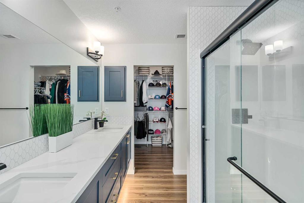 The primary bedroom offers a relaxing retreat with a spa-inspired ensuite featuring a floating dual vanity and a spacious walk-in closet. The second bedroom is well-sized and also includes its own walk-in closet, a rare and valuable feature. A second full bathroom, along with a dedicated in-suite laundry room with additional storage, adds everyday convenience.