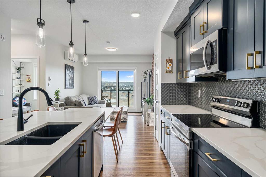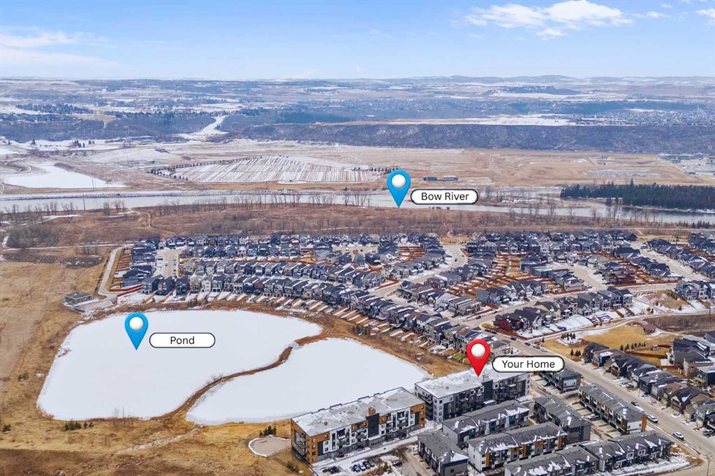 Welcome to this beautifully upgraded 2-bedroom, 2-bathroom condo in Cranston’s desirable Riverstone, offering the perfect blend of modern living and natural surroundings. Located on the 3rd floor with south-facing exposure, this bright and thoughtfully designed unit features peaceful pond views and is just steps from the Bow River pathways, making it an ideal choice for those who value both comfort and lifestyle.