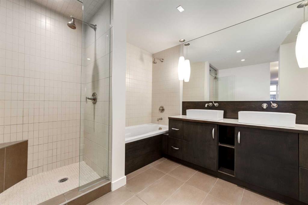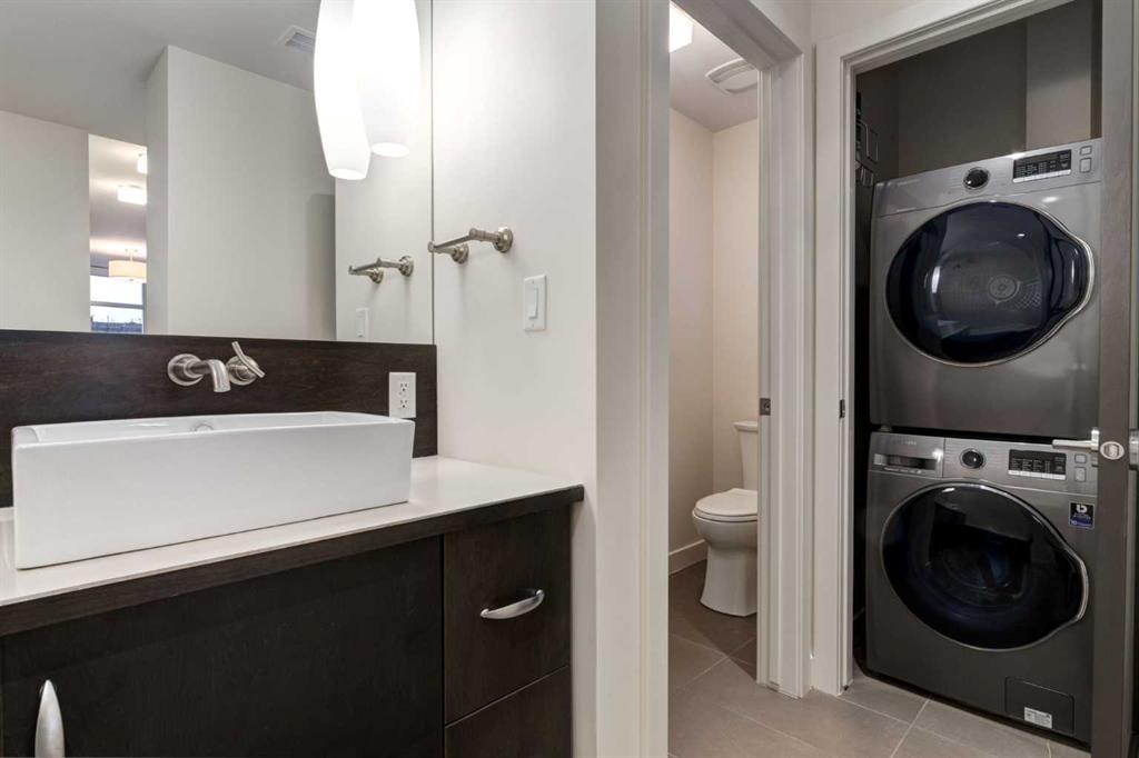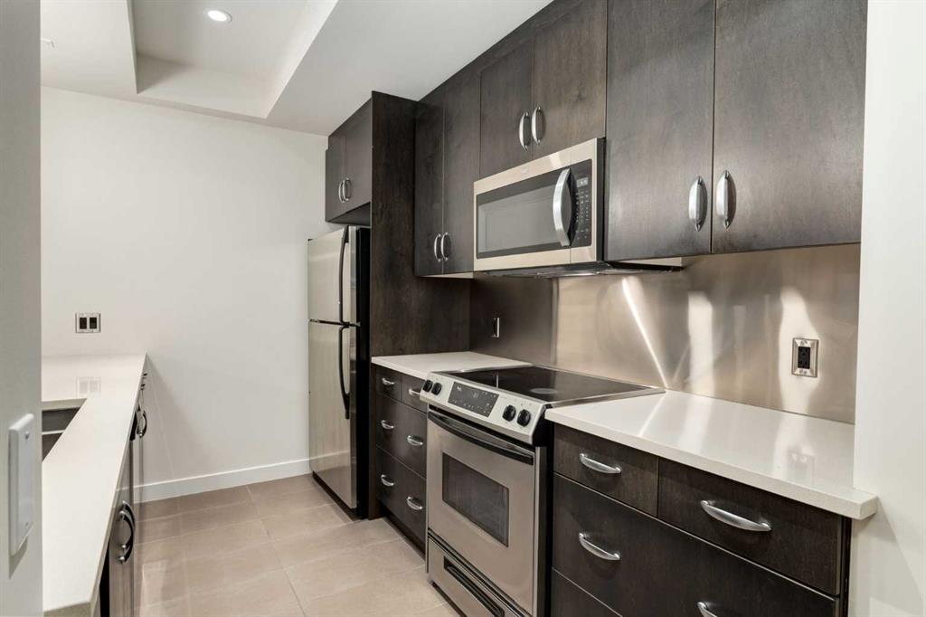WELCOME to this MOVE IN READY 13th Floor AIR CONDITIONED UNIT, w/1 BEDROOM, 1 ½ BATHROOMS, in a 908 sq ft CONDO in the CONNAUGHT Area in the BELTLINE, w/1 TITLED Stall in the Underground HEATED Parkade + 1 TITLED Storage Unit + GORGEOUS MOUNTAIN VIEWS from the SOUTH-FACING Balcony. Entering this EXECUTIVE SUITE is a spacious foyer leading into the main living area, you’re greeted w/an EXPANSIVE open-concept floorplan w/9 ft Ceilings all framed w/FLOOR-TO-CEILING Windows, creating a BRIGHT, AIRY SPACE w/a seamless flow for EVERYDAY LIVING & ENTERTAINING. The MODERN Kitchen is designed to IMPRESS w/a STAINLESS STEEL WHIRLPOOL Appliance package, ELECTRIC STOVE, BUILT-IN DISHWASHER, MICROWAVE w/INTEGRATED HOOD FAN, FULL-SIZE FRIDGE + BEVERAGE FRIDGE. Enjoy the GENEROUS QUARTZ Countertops CEILING-HEIGHT Cabinetry w/Pull Out Drawers, a DOUBLE STAINLESS STEEL SINK + a COMMERCIAL-STYLE Pull-down Spray Faucet. The OPEN-CONCEPT Living & Dining Rooms provide a WELL-PROPORTIONED, INVITING space ideal for HOSTING Dinner Parties, RELAXING after a long day, or ENJOYING conversations w/ FRIENDS — all while feeling COMFORTABLE, FUNCTIONAL + EFFORTLESSLY STYLISH. Enhanced w/ DIMMER LIGHTING + WIRED-FOR-SOUND throughout, this space delivers BOTH AMBIENCE + ENTERTAINMENT at the touch of a button. Step outside to your SPACIOUS SOUTH-FACING BALCONY, w/a GAS LINE for BBQ’s + perfectly positioned for ALL-DAY SUN + SWEEPING VIEWS w/rare 3-DIRECTION VIEW CORRIDOR (SE, S, SW). Enjoy SUNRISE TO SUNSET, MOUNTAIN VIEWS, direct sight lines to CENTRAL MEMORIAL PARK + a PREMIUM vantage point for STAMPEDE FIREWORKS—all WELL ABOVE STREET ACTIVITY for ultimate privacy and comfort. A GUEST 2 pc POWDER ROOM adds convenience for hosting. The LARGE PRIMARY SUITE offers more FLOOR TO CEILING Windows + a GENEROUS CLOSET. RETREAT to the SPA-INSPIRED ENSUITE, ft DUAL SINKS, a SEPARATE SOAKER TUB, a FULLY ENCLOSED GLASS SHOWER + a PRIVATE WATER CLOSET, complemented by a STACKED Washer + Dryer for added CONVENIENCE. The WELL-MANAGED CASTELLO BUILDING is BUILT w/CONCRETE, making this a QUIET, SOLID BUILDING. Enjoy a WELL-EQUIPPED ONSITE GYM, CAR WASH BAY IN THE PARKADE, SECURE UNDERGROUND PARKING + INDOOR VISITOR STALLS, w/FOB-CONTROLLED ACCESS to the building, elevators + amenities, all supported by VIDEO SURVEILLANCE + ON-SITE MANAGEMENT, adding PEACE OF MIND. The building is PET-FRIENDLY (Condo Board Approval Required). Located in the HEART OF CONNAUGHT, Castello places you STEPS FROM DOWNTOWN, 4th Street/Mission, 17th Avenue shopping + dining, Central Memorial Park, River Pathways, Cultural Venues, Transit, Protected Bike Lanes + Everyday Essentials. Enjoy TRUE WALKABLE URBAN LIVING w/all the energy of the city, WITHOUT THE CONGESTION + NOISE of other Beltline locations. Don’t Miss Out!! Book your showing NOW!!