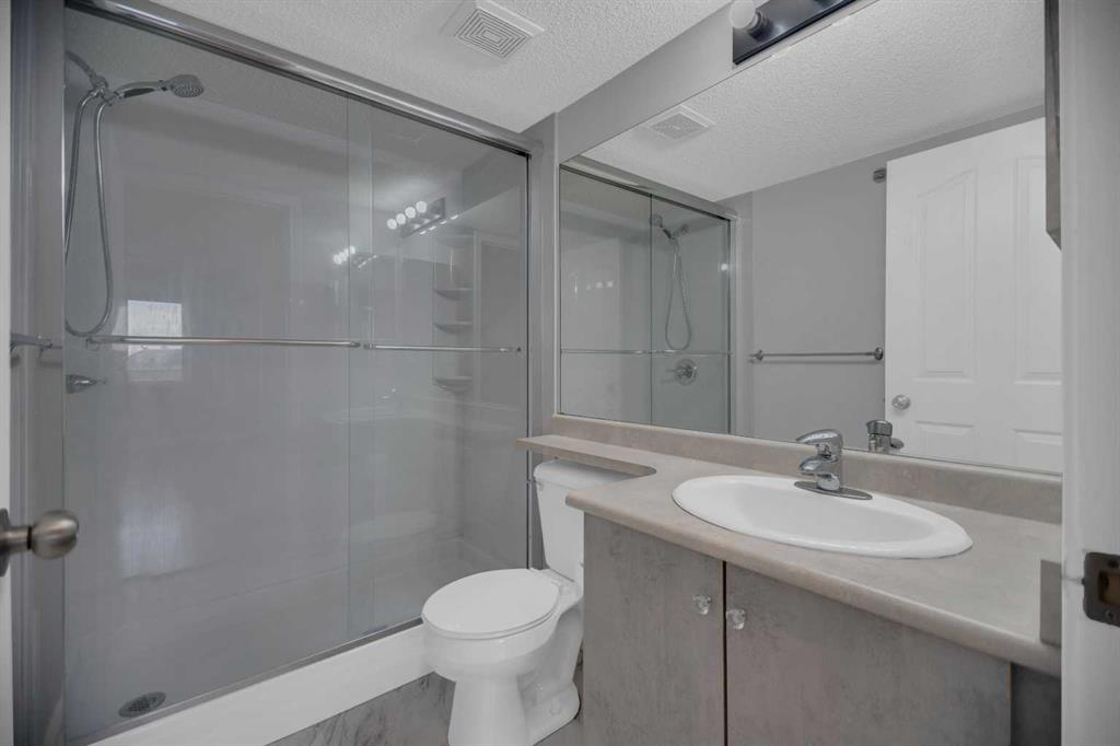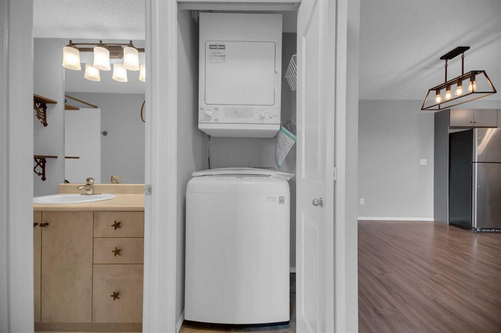 Welcome to this bright & stylish 2-bedroom, 2-bathroom condo with a versatile den — perfect for a home office or creative space! Huge feature – TWO PARKING STALLS!! This inviting home features a modern open-concept layout with trendy grey tones, stainless steel appliances, & plenty of natural light streaming through large patio doors off the living room. The spacious kitchen flows seamlessly into the dining & living areas, creating the ideal space for both everyday living & entertaining. Enjoy the convenience of in-suite laundry, a west-facing balcony for evening sunsets, & two assigned parking stalls — a rare find! Recent updates include: entire unit painted, new flooring in bathroom & ensuite and walk-in shower in ensuite. Located in the desirable community of Bridlewood, you’re close to parks, schools, shopping, and transit. You’ll love living here!!!