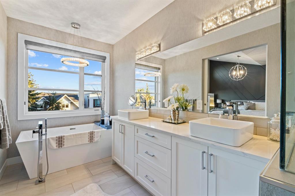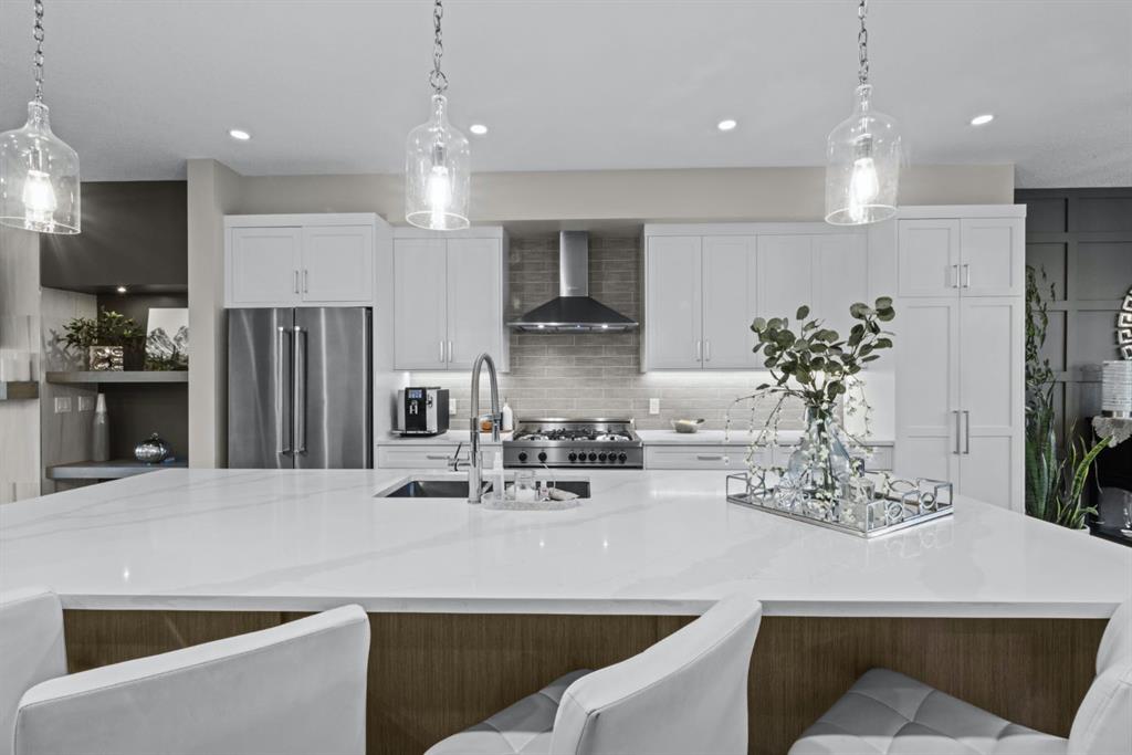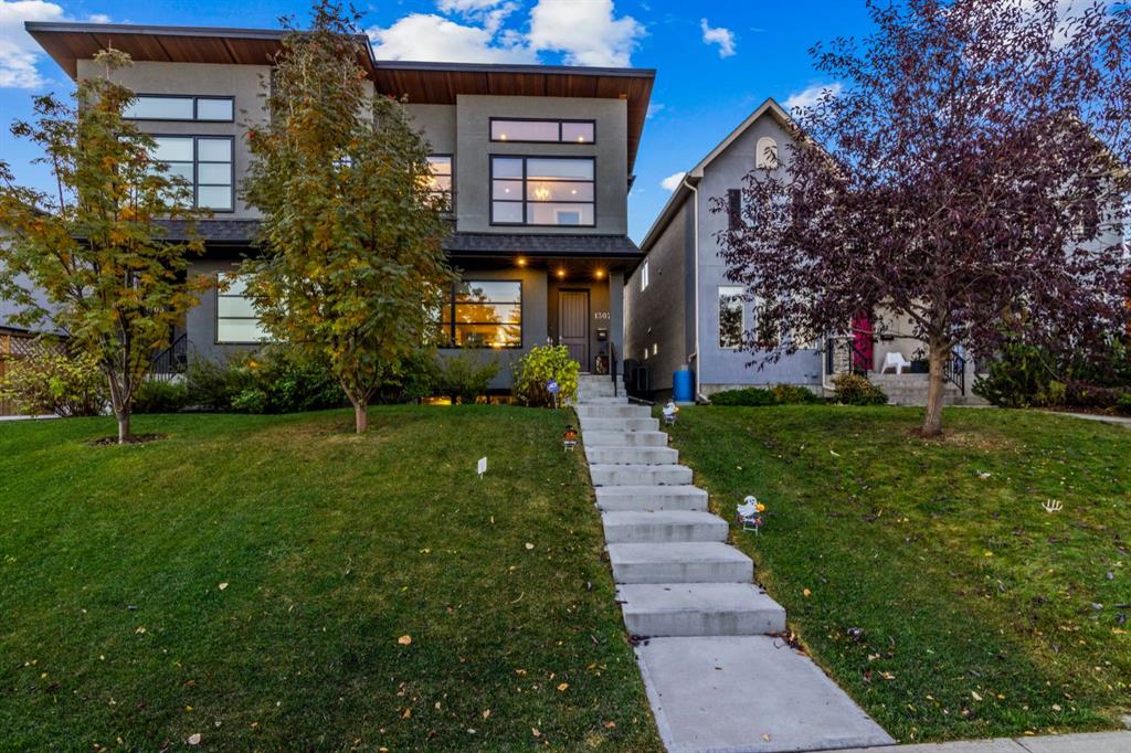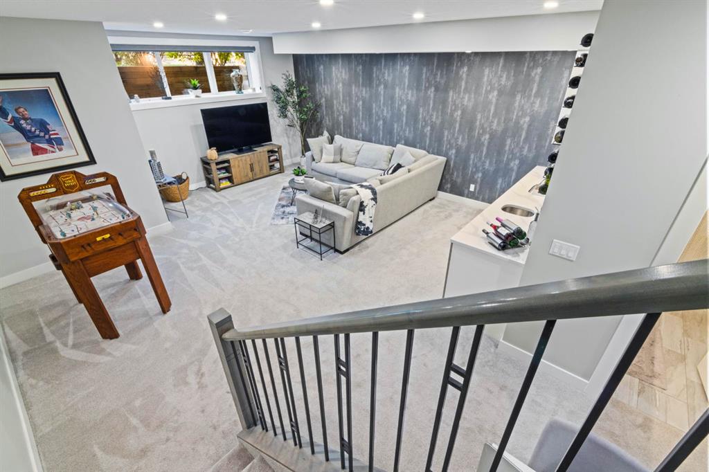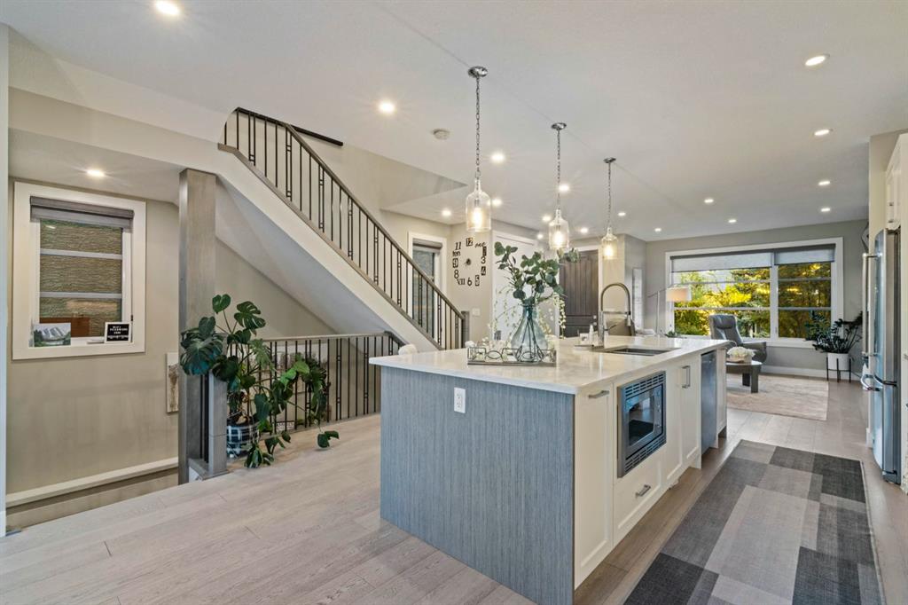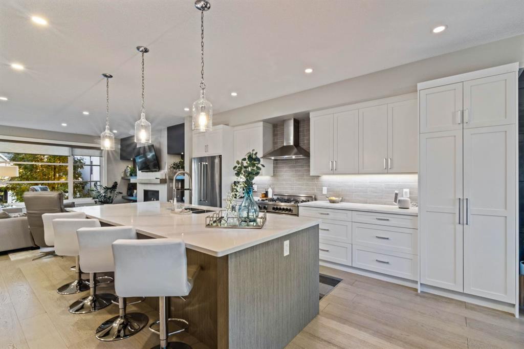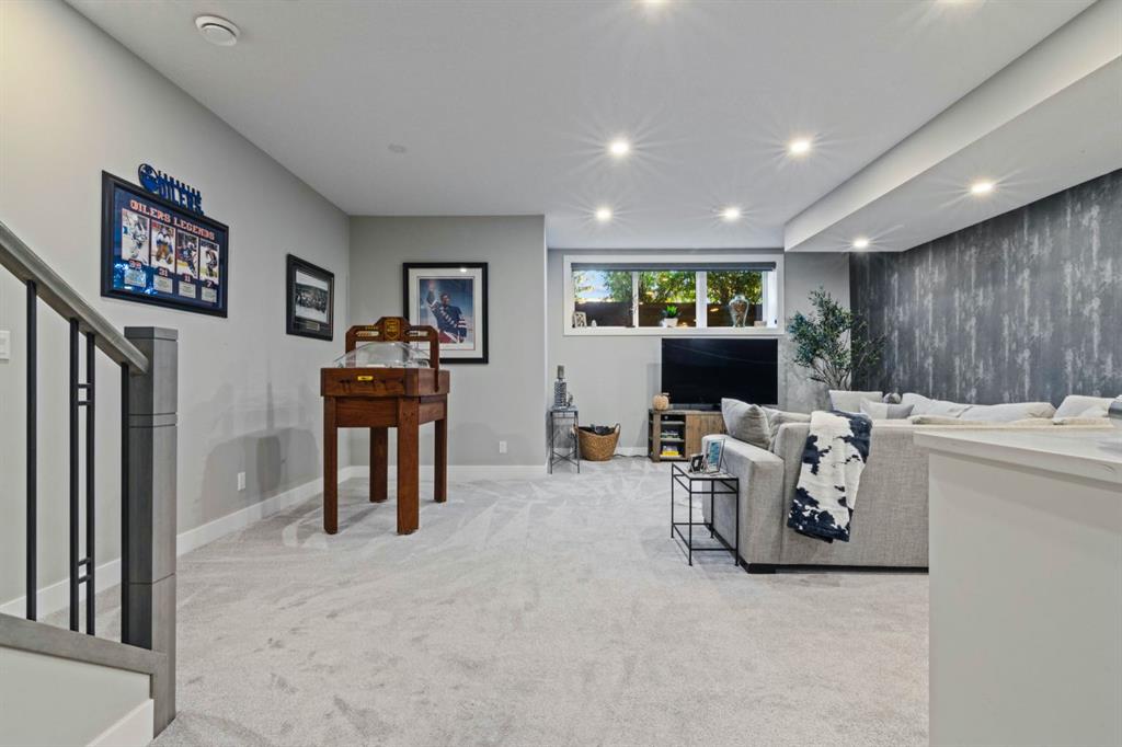 This home hits that rare sweet spot where inner city living meets nature right at your doorstep. The pathway across the street leads straight into Confederation Park, where runners, bikers, and dog walkers soak up tree-lined trails, open green space, and the kind of peace you only find outdoors. Inside, the vibe is bright, modern, and effortlessly inviting. Sunlight pours into the family room, highlighting a wall to ceiling fireplace framed by custom lit built-ins that make the space feel instantly like home. The kitchen is where everyone gathers, with a massive quartz island perfect for morning coffees or weekend dinner parties. An Italian gas stove, crisp white cabinetry, and a dining area with a bold, modern feature wall bring both style and warmth to the space. The back mudroom keeps everything organized with smart built-in storage for all the daily gear. Upstairs, the layout is thoughtfully designed for privacy and comfort, with the primary suite tucked away on one side, creating a quiet retreat for adults. Vaulted ceilings with an elegant chandelier add a touch of sophistication, while modern barn doors open into the ensuite for a stylish finish. The ensuite feels like a spa getaway with a freestanding tub, dual sinks, and a walk-in shower with a bench. On the opposite side of the upper level are two spacious bedrooms and a four-piece main bath, perfectly set up for kids or guests, with the laundry room conveniently located between the two wings. Downstairs, it’s pure fun with a walk-up wet bar and a large recreation room perfect for movie nights or hosting friends, along with an extra bedroom, full bath, and plenty of storage. Out back, the low-maintenance concrete stone patio is ideal for summer evenings under the stars and connects to the double detached garage. With nature’s best playground just steps away and a home designed for connection, comfort, and everyday style, this one truly has it all.