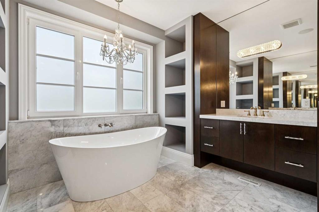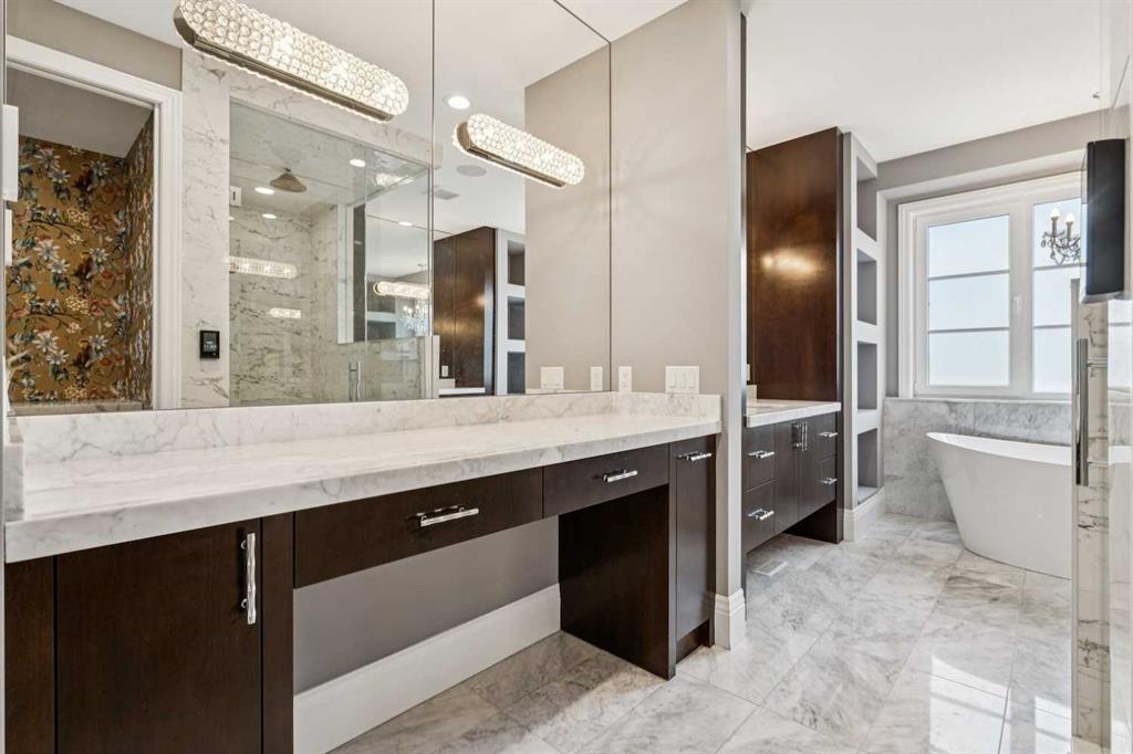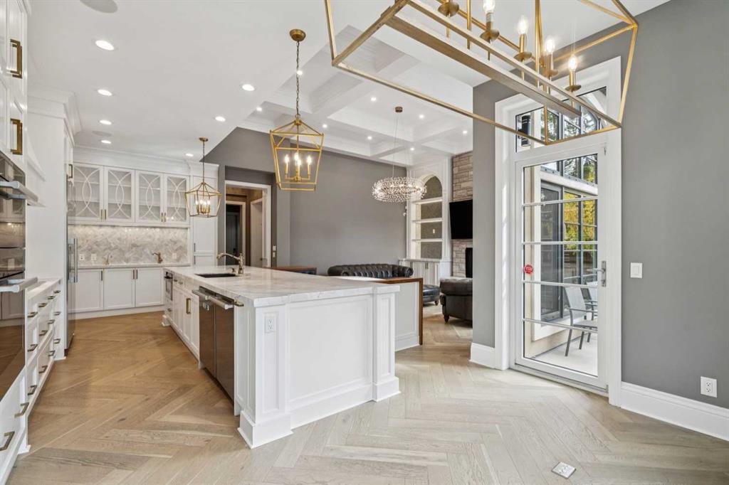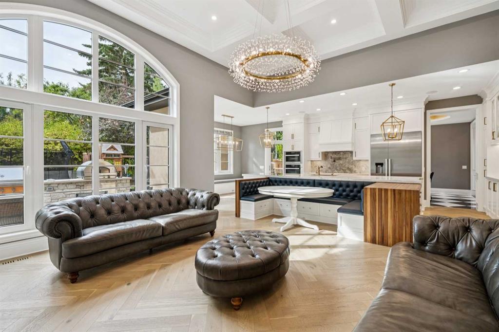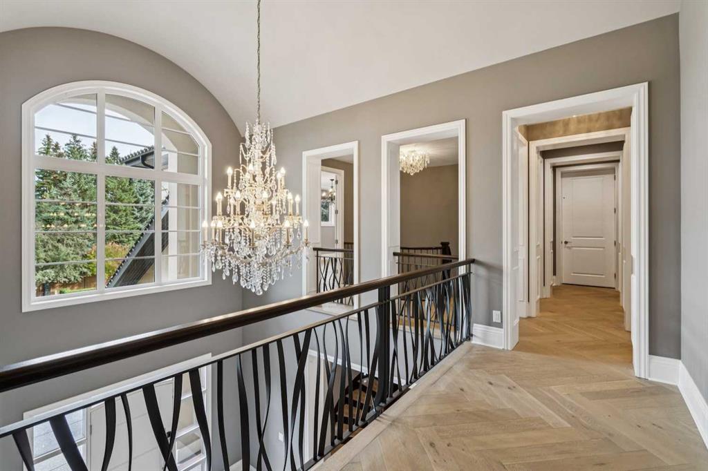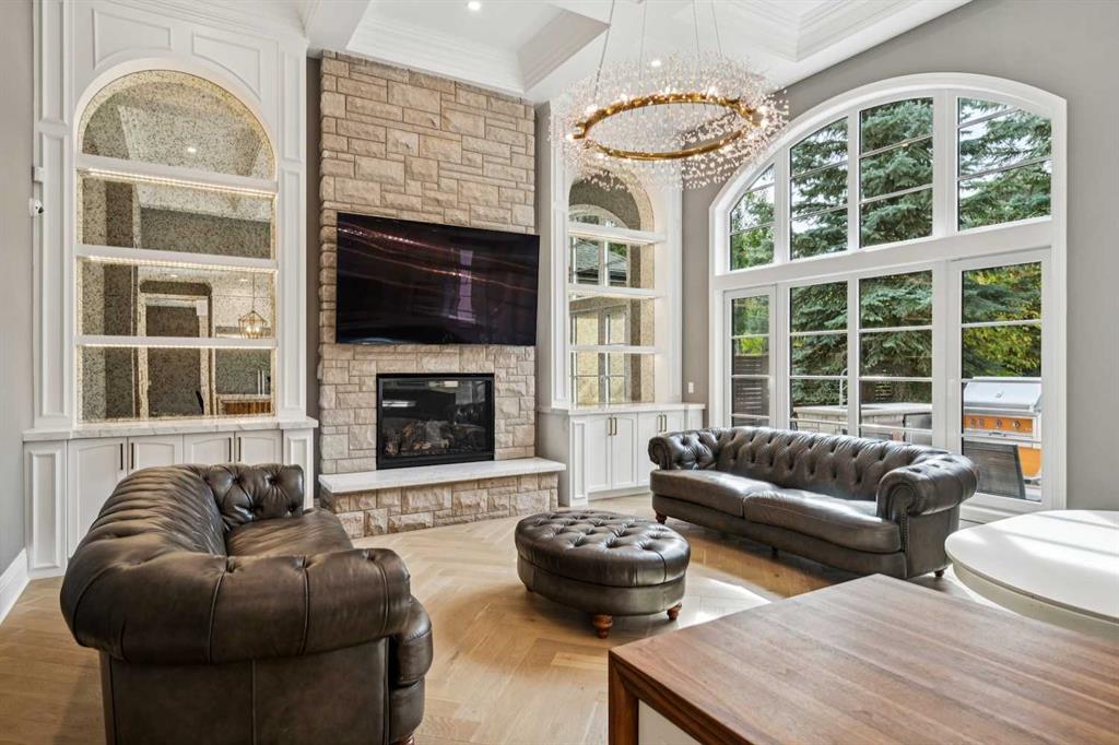 Nestled in the highly sought-after community of Bel -Aire, this expansive estate offers unparalleled luxury, meticulous design, and effortless family or multi-generational living. A grand wrap around front drive with a water feature sets the tone for a home where every detail has been thoughtfully crafted—from showpiece chandeliers to spaces perfectly suited for family, guests, and staff. This home features 6 bedrooms up plus 1 in the basement, each with its own ensuite. The layout is ideal for nanny or mother – in law living, with private spaces designed for comfort, privacy and independence. A dramatic front foyer with a spiral staircase makes a striking first impression, opening to a formal dining area and a main-floor office equipped with built-ins, TV, fireplace, and a wet bar with a wine fridge. The living room is flooded with natural light from the floor-to-ceiling windows and centers around a fireplace, offering a welcoming hub for daily living and entertaining. The chef’s kitchen is a true standout, featuring an abundance of cabinetry, a large island, built-in dining nook, built- in dining room hutch wall with prep sink,2 wall ovens, 2 dishwashers all seamlessly open to the family room where built-ins flank the fireplace and TV. Off the garage is a Mudroom with built in cabinets and a walk-in pantry with a sink, fridge and plenty of cabinets. Up the grand spiral staircase the primary bedroom is a true retreat with its own fireplace and TV, a vast walk-in closet with custom hanging systems, built-in dressers and a washer and dryer for convenience. The spa-like ensuite offers his-and-hers vanities, a makeup station, a jetted tub, a steam shower with smart controls all ensuring a luxurious daily routine. A few additional stairs lead to 2 upper bedrooms with a full bathroom, ideally suited for a nanny or mother-in-law suite, while the remaining four bedrooms on the upper level all feature their own ensuites and walk-in closets for ample private space. The fully finished lower level expands living areas further with a large family room, a theatre, a glass-enclosed wine room, a sixth bedroom and bathroom, Gym with a TV, extra closet and lots of storage. Out back in the yard is the ultimate of living spaces. The family is sure to enjoy evening movies gathered under cover around the Outdoor TV and fireplace. Never a shortage of activities for the family with an amazing sport court, trampoline, play structure and hot tub. While the kids are busy the adults will enjoy the outdoor kitchen featuring a wine fridge, sink, Built in BBQ and Pizza Oven. Bel-Aire is a centrally located community next to the Calgary Golf and Country Club, close to schools, shopping, restaurants, transportation and the Glenmore reservoir and pathways. This a truly rare opportunity in Calgary’s luxury real estate market.