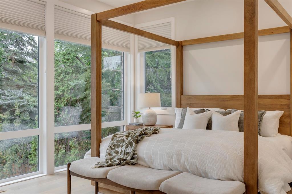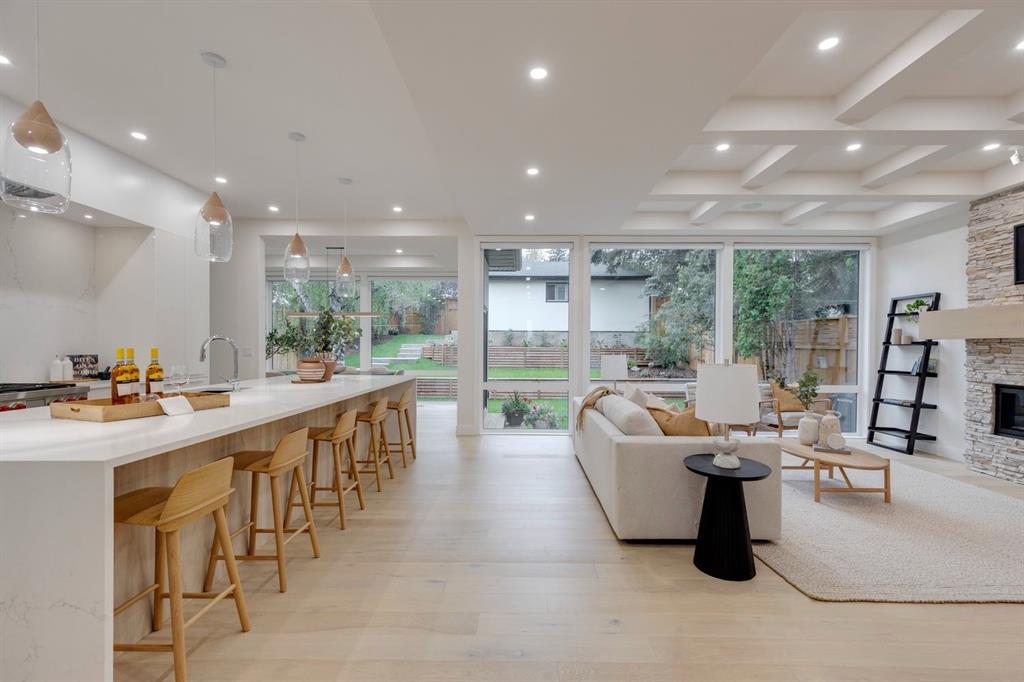 This Scandinavian-inspired modern residence is a masterclass in refined living where timeless design meets a layout crafted for vibrant family life and unforgettable entertaining. Set on a beautifully landscaped 140’ deep lot with coveted southwest rear exposure in prestigious St. Andrews Heights, the home is bathed in golden natural light, highlighting its clean lines and warm, organic finishes. From the moment you step inside, soaring 10’ ceilings and dramatic floor-to-ceiling windows create an airy, light filled ambiance that seamlessly blurs the line between indoors and out. The heart of the home is a striking chef’s kitchen, where a sculptural quartz waterfall island anchors the space alongside designer Brizo fixtures and professional grade appliances, including a Wolf 6-burner gas range with pot filler, perfect for both intimate meals and grand scale entertaining. The kitchen flows effortlessly into an expansive dining area designed to host with ease and opens directly to the sun drenched rear deck. Nearby, the living room invites connection and relaxation, centred around a statement stone fireplace, coffered ceilings, and integrated sound that’s equally suited for cozy evenings or lively gatherings. As you ascent to the second level, the thoughtful design continues with a spacious laundry room, a beautifully appointed full bath, and three generous bedrooms. The primary suite is a serene sanctuary, wrapped in natural light and featuring a custom walk-in closet and a lavish ensuite complete with heated floors, a deep soaker tub, and an oversized glass-enclosed double shower for an everyday indulgence. The fully developed lower level offers exceptional versatility with its bright, above grade feel and expansive windows. Designed for both recreation and wellness, it features a large rec room with fireplace, games area, dedicated home gym, guest bedroom, and a luxurious bath with steam shower, ideal for hosting overnight guests or unwinding in style. Every detail has been carefully curated, from in-floor heating in all bathrooms (and roughed-in in the basement) to smart dimmers, custom Lightform lighting, and discreet cable management. Outdoors, the backyard unfolds as a private sanctuary that’s lush, tiered, and thoughtfully designed to create moments of calm and connection, all leading seamlessly to the oversized double garage. Just minutes from downtown, the University District, top-tier schools, parks, and pathways, this elevated home is a rare offering where sophistication, comfort, and lifestyle converge.
