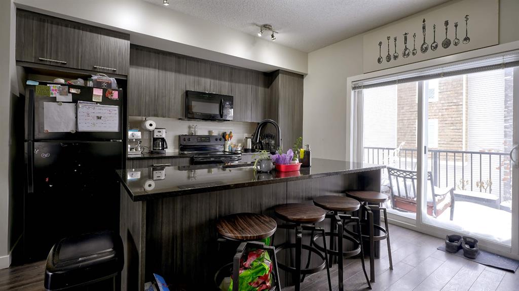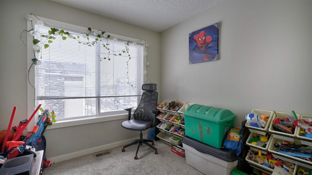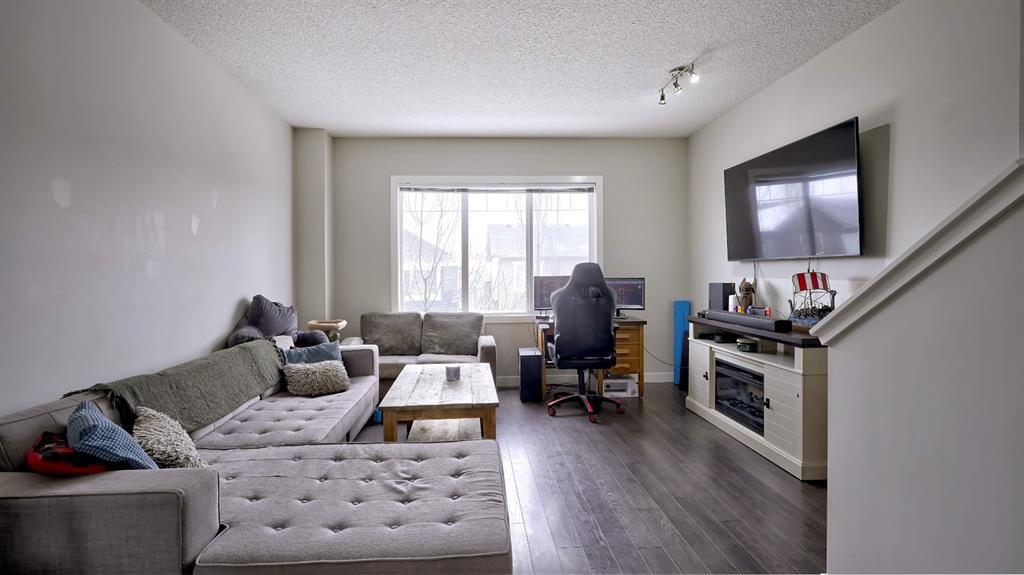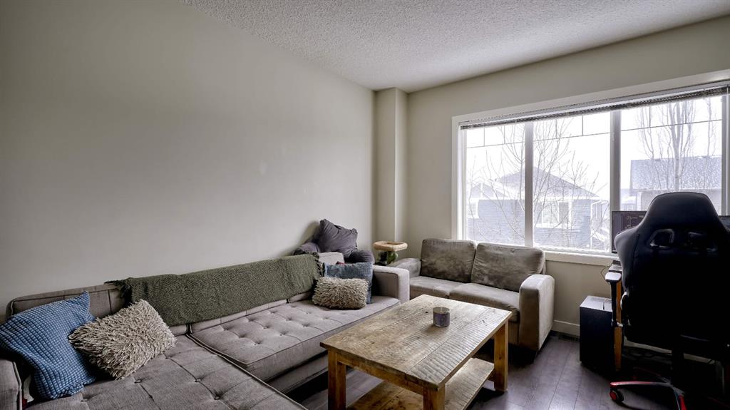Here is your opportunity, very desirable condo complex directly in front of the French immersion school as well as a public elementary school. The private front yard is partially fenced. Entering this townhouse is an office/den that is currently being used as a bedroom. Also a very convenient half bath and access to the oversized single garage. On the main level is a great kitchen with quartz countertops. There is plenty of space to sit at the island. From here, you have a nice size west facing deck with gas line for the barbecue. The dining room has plenty of room leading into the living room. There is laminate floors throughout the main level and plenty of windows being an end unit. Upstairs is a four piece bathroom beside the two spare rooms plus convenient laundry closet. The primary bedroom is very large, has a four piece en suite and double closets. This is a great location close to lots of amenities, grocery stores and very easy access to the highway.
