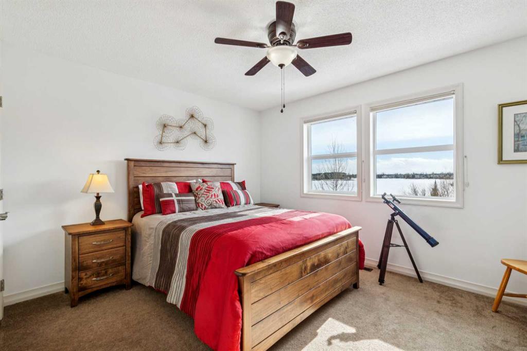 Welcome to an exceptional opportunity in the highly sought-after lake community of Auburn Bay! PRIME SOUGHT AFTER LOCATION ~ This wonderful (4 bedroom in total) home offers second lake access from a shared private dock, providing an incredible lifestyle with breathtaking lake views and direct enjoyment of one of Calgary’s most desirable four-season communities. Perfectly positioned to take full advantage of Auburn Bay Lake, residents enjoy year-round recreation including swimming, paddleboarding, relaxing beach days in the summer, and skating and winter activities when the lake freezes, making every season something special. This beautifully maintained air-conditioned home is fully finished on all three levels including a developed basement, offering plenty of room for comfortable family living and entertaining. The thoughtfully designed upper level features three bedrooms, a spacious bonus room, a second retreat or study area perfect for a home office, convenient upper level laundry, and a full 4-piece bathroom for the secondary bedrooms, while the primary bedroom retreat features a luxurious 5-piece ensuite, dual walk-in closets, and a private upper level deck perfect for morning coffee and fresh air. The main floor offers an open concept design with a large kitchen and island, extensive prep space, a walk-through pantry connecting to the mudroom and oversized garage, generous dining space, and a very spacious great room complete with a gas fireplace that creates a warm and inviting atmosphere. The developed basement adds even more living space with a bedroom featuring a large walk-in closet, a comfortable family room, a wet bar, and a full 4-piece bathroom, making it ideal for guests or extended family. This home is loaded with upgrades including solar panels, dual furnaces with upgraded humidifiers, LED lighting in the garage, and an oversized garage with convenient mudroom access. The backyard is designed for relaxation and entertaining with a beautiful deck featuring a private screened-in Suncoast enclosure, professionally designed landscaping, underground irrigation, and two storage sheds for additional convenience. The property is ideally located close to schools, parks, and local shops, while Seton is just to the south offering extensive shopping, restaurants, services, the South Health Campus, the Brookfield Residential YMCA, and a VIP Cineplex theatre, combining incredible convenience with an outstanding lake community lifestyle, and rare opportunities for lake access homes like this do not come up often.