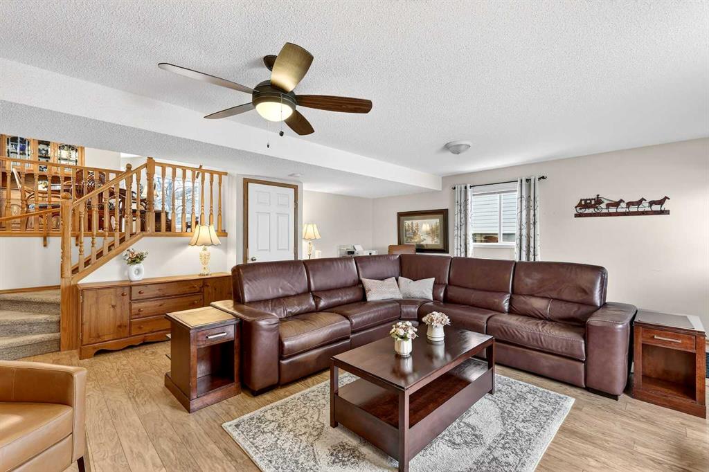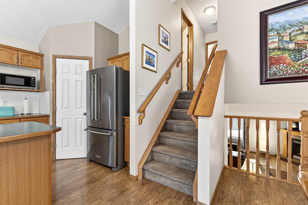 Welcome to easy living in the family-friendly community of Citadel. This meticulously maintained 4-level split offers a smart and functional layout with 3 bedrooms and 2 full bathrooms, making it a perfect choice for a first home or those looking to downsize. The open-concept main floor boasts vaulted ceilings and durable Hickory laminate flooring, creating a bright and spacious feel. The kitchen is well laid out with a central island, corner pantry, and stainless steel appliances, including a new stove and an upgraded ceramic sink. With 1435 square feet above grade and nearly 2,000 square feet of total living space, this home provides ample room for a growing family. On the upper level, you will find an oversized primary bedroom along with a generous second bedroom and a central 4-piece bathroom. The third level serves as a large recreation room that leads directly to the private, landscaped backyard, offering a seamless transition for indoor-outdoor living. The lower level is fully finished with a third bedroom and a convenient 3-piece bathroom. Outside, the low-maintenance yard features a custom Cedar deck and a retractable awning for shaded relaxation and summer barbecues. A double detached garage opens to a paved alley, providing secure parking and additional storage. Located close to schools, parks, and the extensive city pathway system, this home puts the best of the community right at your doorstep. With its thoughtful upgrades and move-in-ready condition, this property is a standout opportunity in a great neighborhood.