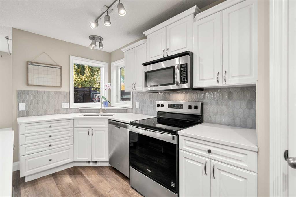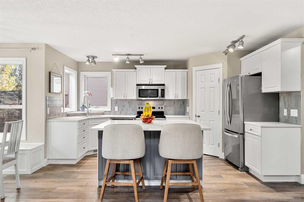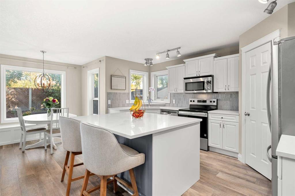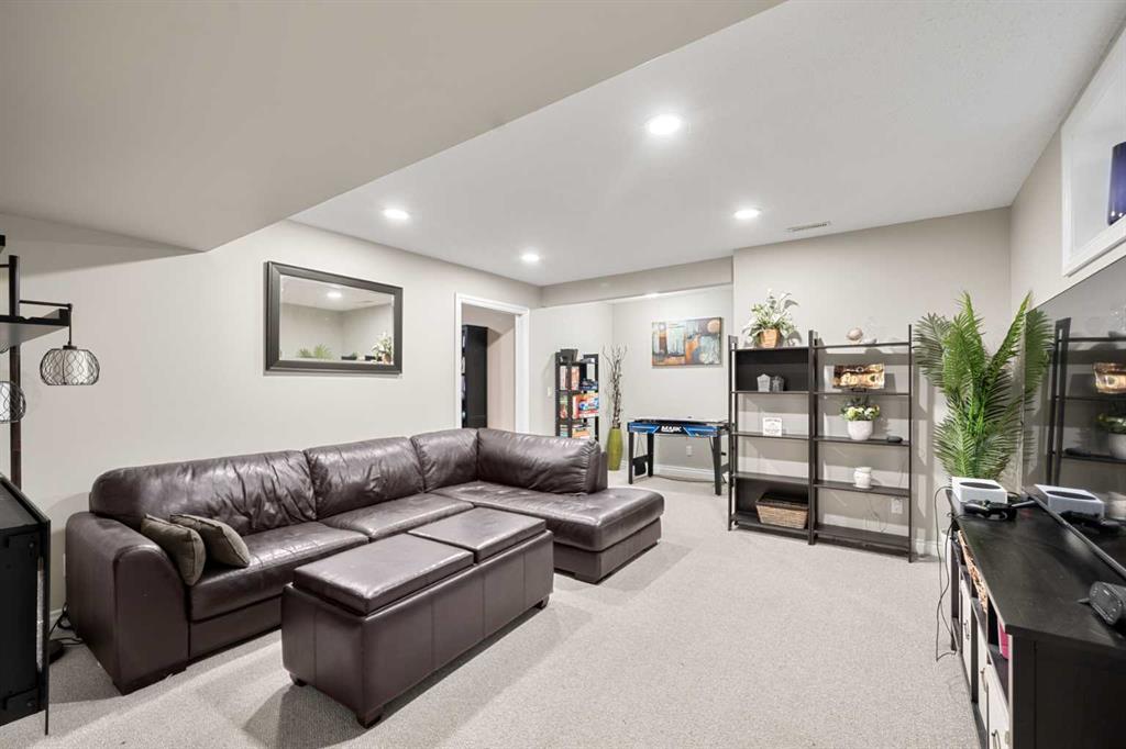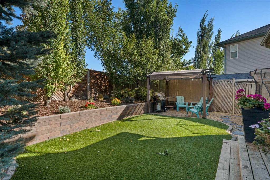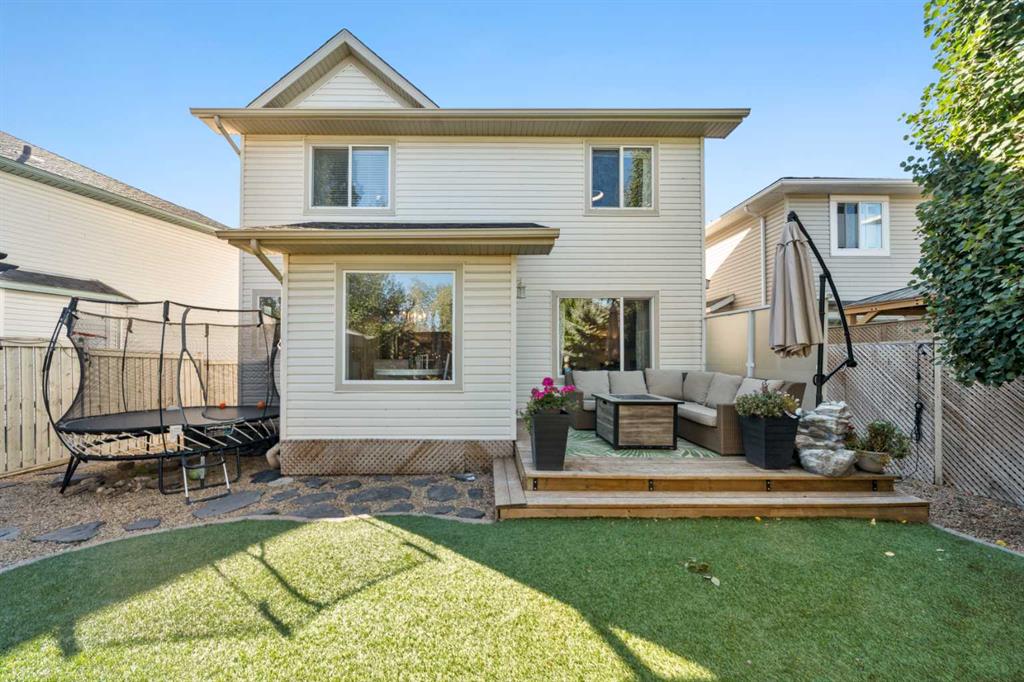 Welcome to this awesome 3 bedroom lake community home with fully finished basement, located in a quiet cul de sac, just a short walk to the beach house. This home has been beautifully cared for and pride of ownership is demonstrated throughout. As you walk up to the home you will appreciate the fully screened front deck, step inside and admire the gorgeous LVP flooring throughout the main level. This home features a recently renovated kitchen with white cabinets, gleaming quartz counters, gorgeous backsplash, large island with eating space and stainless steel appliances. The spacious living room is a great place to relax after a long day and has a beautiful stacked stone fireplace. Entertain in the dining area with built-in seating or step out onto the deck for a BBQ. The low maintenance rear yard in this home is beautiful and features artificial turf, a raised garden with lovely retaining wall, a gravel area with gazebo and lots of mature trees – a great place to sit and chill out! Completing the main floor is a laundry room, mud room and a half bath. Upstairs is a large bonus room with high vaulted ceilings – great for family movie nights! There are 3 spacious bedrooms, the master features a walk in closet and a gorgeous renovated 4 piece ensuite with large vanity, oversized tiled shower and a soaker tub. Completing this level is a 4 piece family bathroom. The fully finished basement has a large family/ games room with fireplace and a large den/gym. This is a lovely home in a great location, just a short walk to the lake and all its fabulous amenities and must be viewed to be appreciated. View 3D/Multi Media/Virtual Tour.