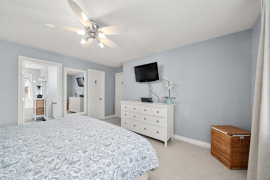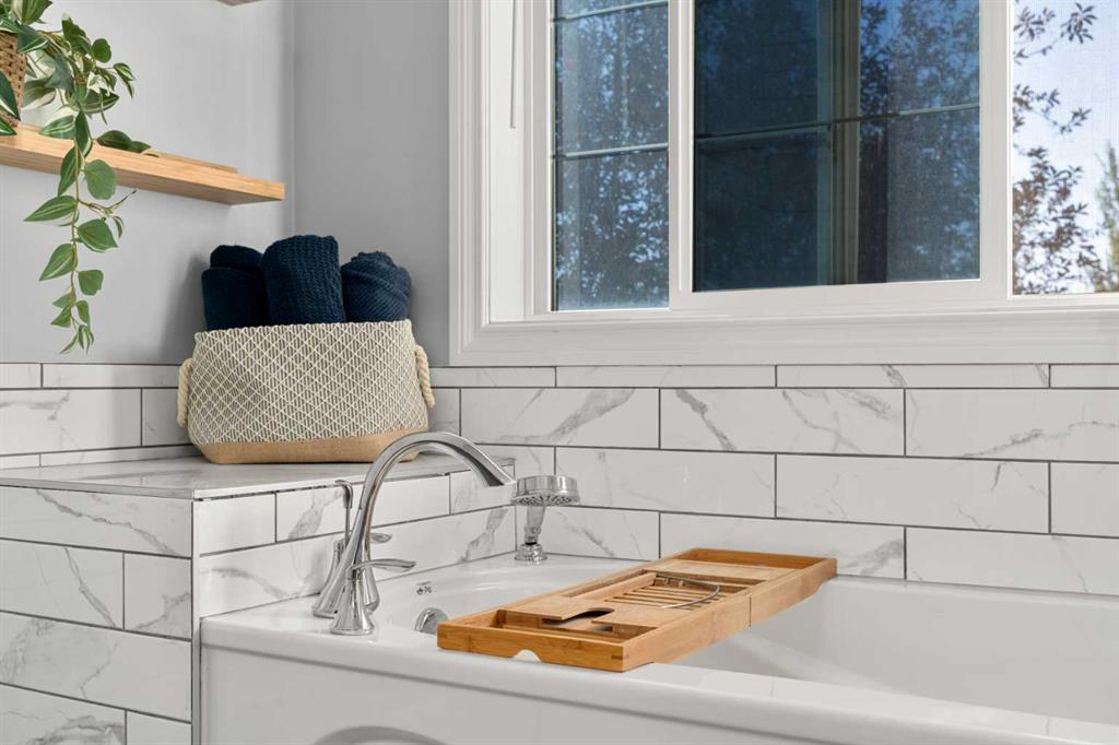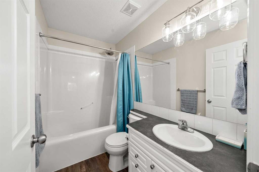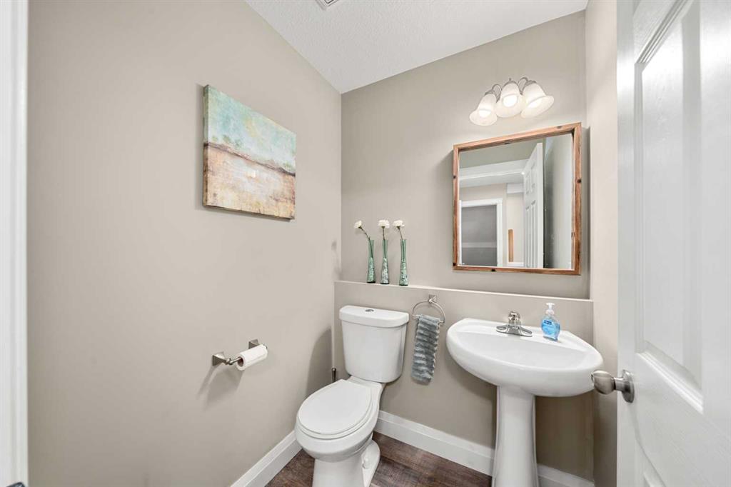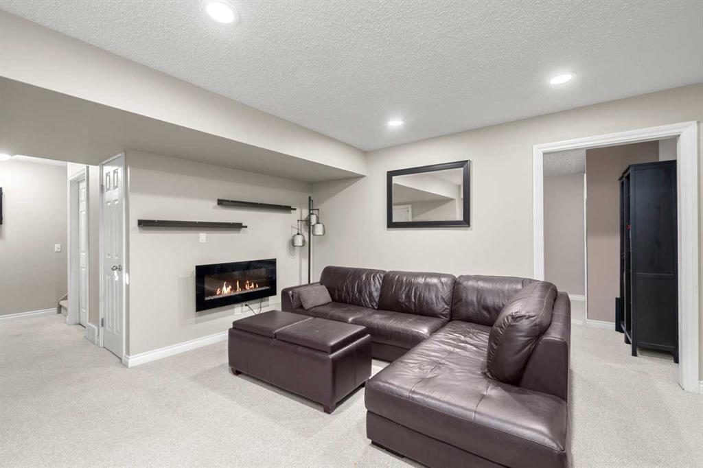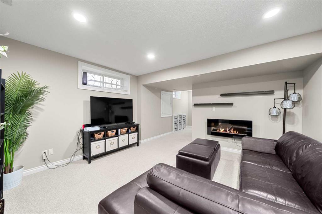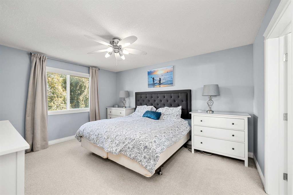 Welcome to this awesome 3 bedroom lake community home with fully finished basement, located in a quiet cul de sac, just a short walk to the beach house. This home has been beautifully cared for and pride of ownership is demonstrated throughout. As you walk up to the home you will appreciate the fully screened front deck, step inside and admire the gorgeous LVP flooring throughout the main level. This home features a recently renovated kitchen with white cabinets, gleaming quartz counters, gorgeous backsplash, large island with eating space and stainless steel appliances. The spacious living room is a great place to relax after a long day and has a beautiful stacked stone fireplace. Entertain in the dining area with built-in seating or step out onto the deck for a BBQ. The low maintenance rear yard in this home is beautiful and features artificial turf, a raised garden with lovely retaining wall, a gravel area with gazebo and lots of mature trees – a great place to sit and chill out! Completing the main floor is a laundry room, mud room and a half bath. Upstairs is a large bonus room with high vaulted ceilings – great for family movie nights! There are 3 spacious bedrooms, the master features a walk in closet and a gorgeous renovated 4 piece ensuite with large vanity, oversized tiled shower and a soaker tub. Completing this level is a 4 piece family bathroom. The fully finished basement has a large family/ games room with fireplace and a large den/gym. This is a lovely home in a great location, just a short walk to the lake and all its fabulous amenities and must be viewed to be appreciated. View 3D/Multi Media/Virtual Tour.