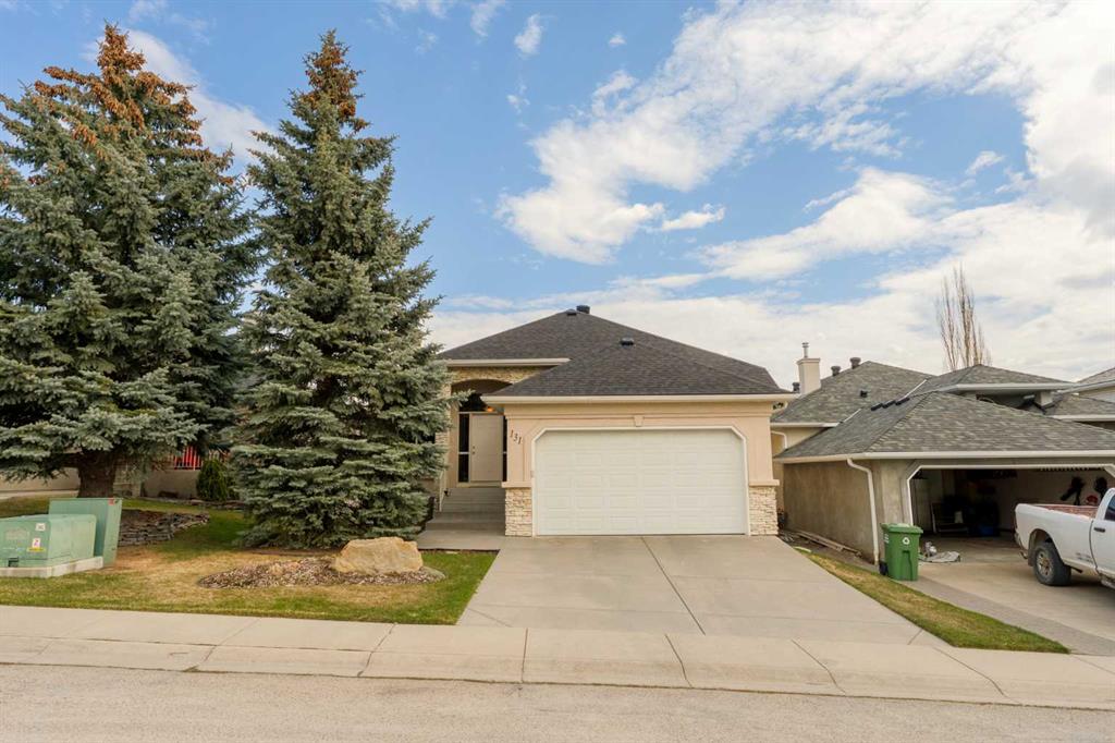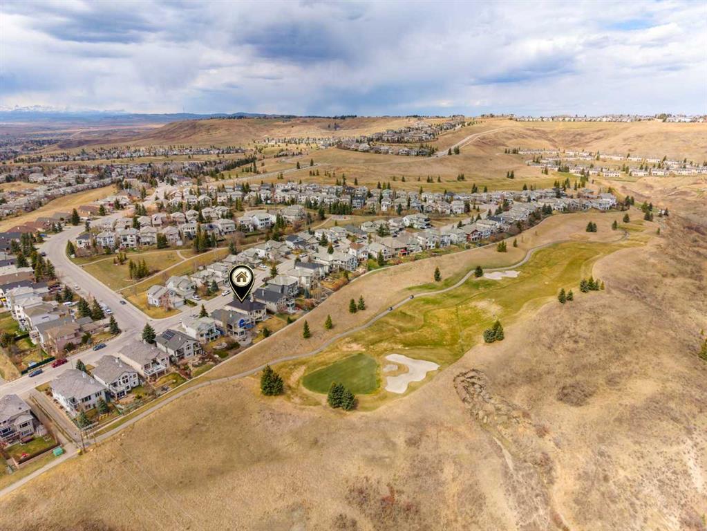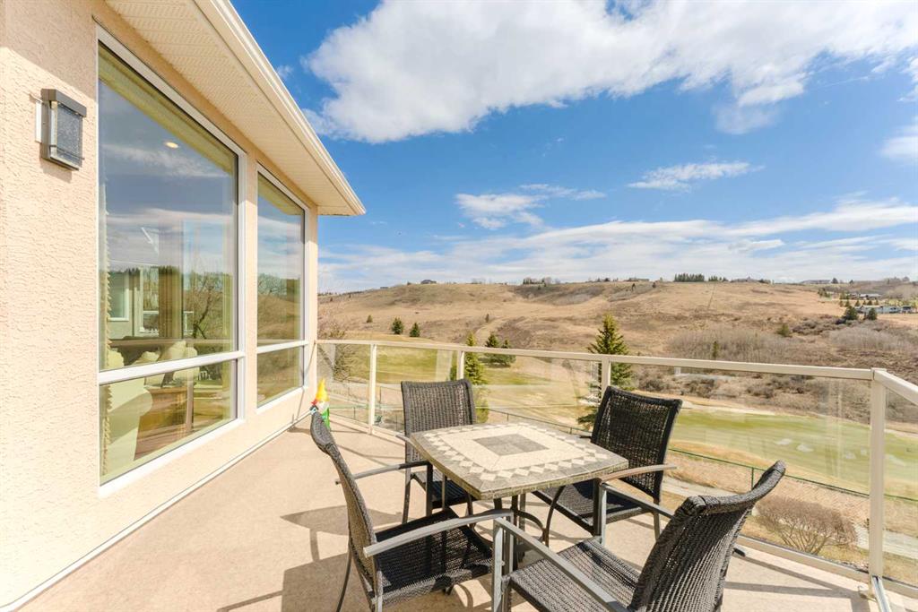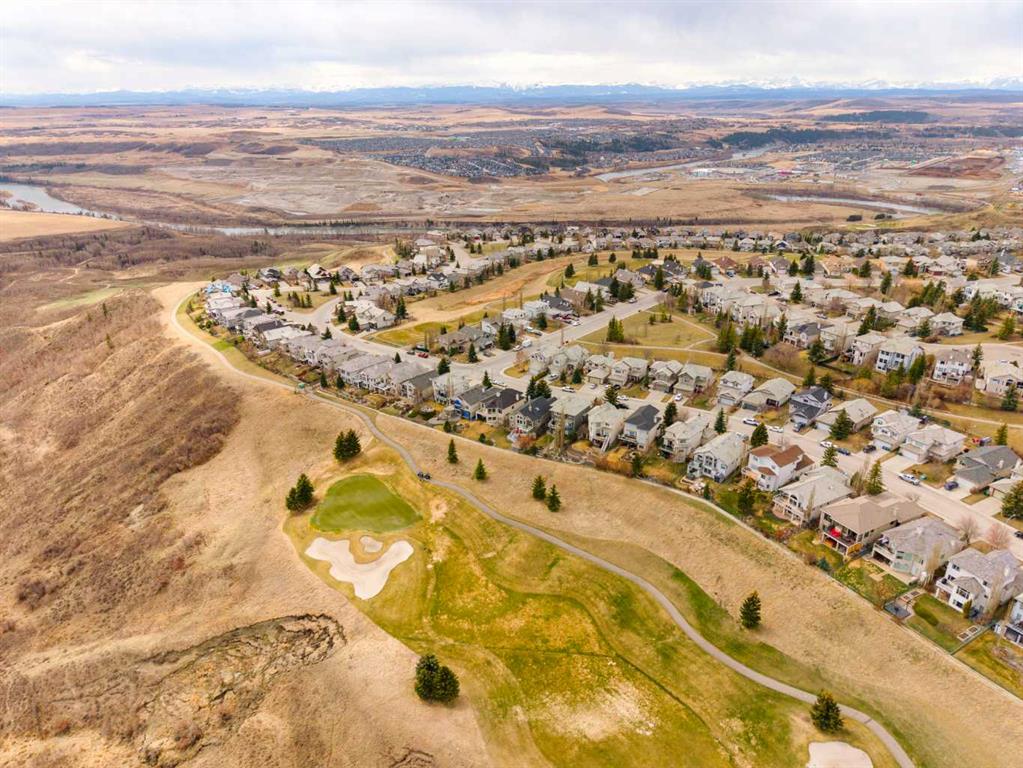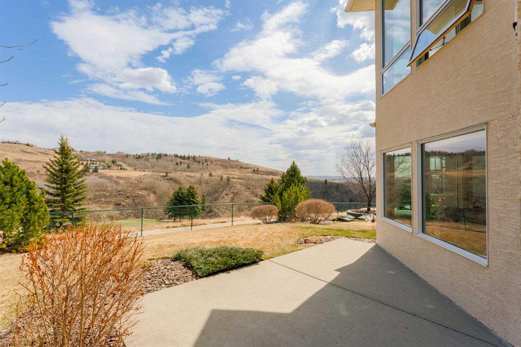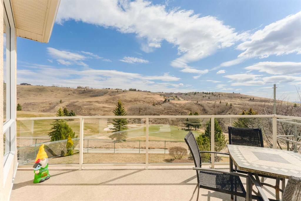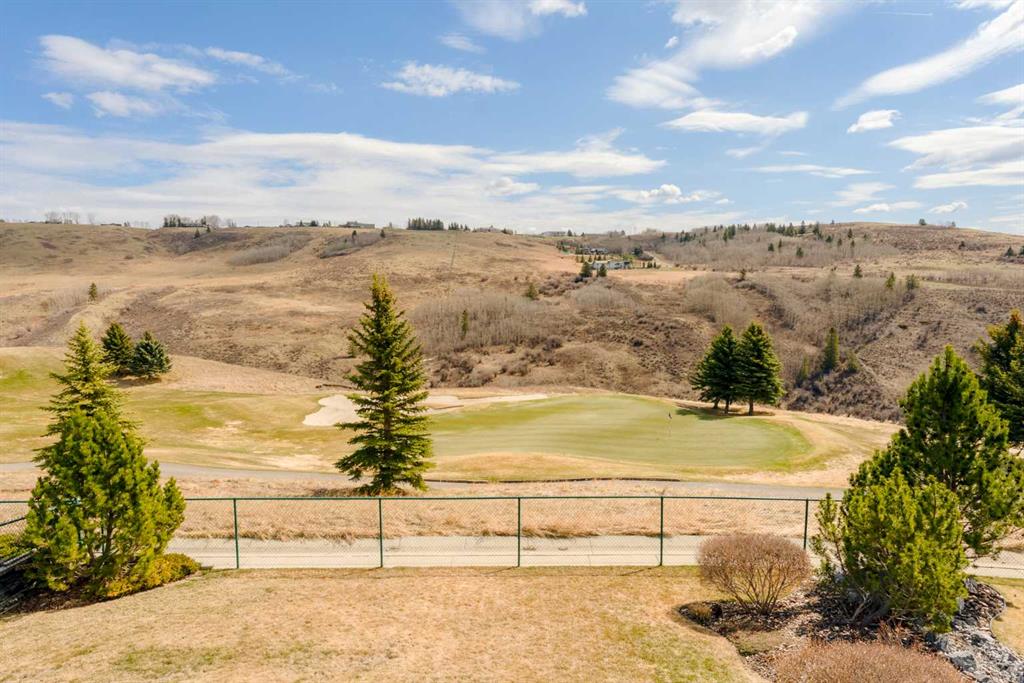 Perched directly above the 13th green of Gleneagles Golf Course, this rare walkout bungalow offers front-row views of the manicured green, sweeping valley landscape, frequent wildlife sightings, and the quiet lifestyle that makes Gleneagles one of Cochrane’s most sought-after communities. Enjoy golf course and valley views from your deck, great room, primary suite, and walkout lower level. Offering over 2800 sqft of developed living space, the home features soaring 10’ ceilings, expansive windows, and a bright open layout designed for comfortable main-floor living. The kitchen is centred around a massive island, stainless steel appliances, gas range, walk-through pantry, and seamless connection to the dining and living areas. Major recent upgrades provide true peace of mind, including new asphalt shingles replacing the original shake roof, upgraded triple-pane east-facing view windows, two recently replaced hot water tanks, and refreshed stucco exterior. The main floor primary retreat captures the views and includes a spacious 5-piece ensuite with jetted tub, separate shower, and private water closet. A front office, convenient laundry/mudroom area off the garage entry, and powder room complete the main level. The fully developed walkout basement is warm and inviting with in-floor heat, large windows, generous natural light, wet bar, spacious recreation area, two bedrooms, and a full bath. Step out to the private lower patio overlooking the fairway and landscaped yard with underground sprinklers. Additional highlights include a tall double attached garage, excellent pride of ownership throughout, and a setting that is difficult to replicate. Gleneagles remains one of Cochrane’s most desirable communities for its elevated setting, golf course lifestyle, mature streetscapes, and exceptional commuter convenience with quick access to Highway 1A, Calgary’s northwest edge, downtown Cochrane, and an easy escape west to the mountains. A rare opportunity to secure an executive walkout bungalow in one of Cochrane’s premier neighbourhoods.