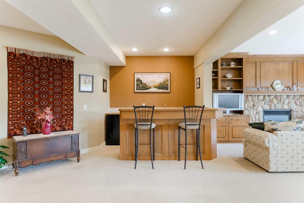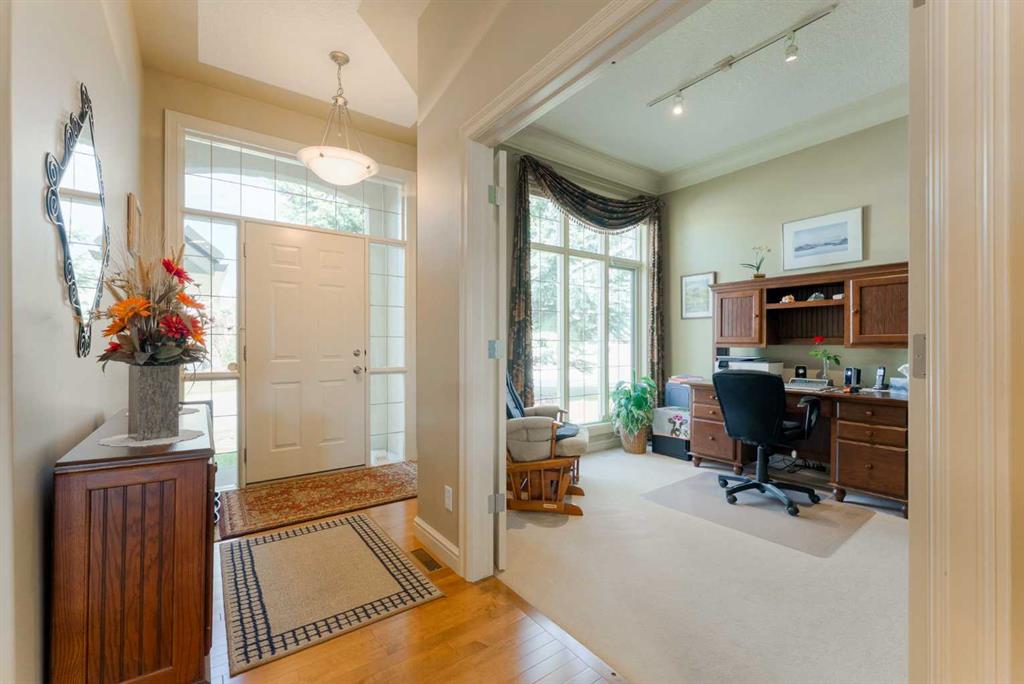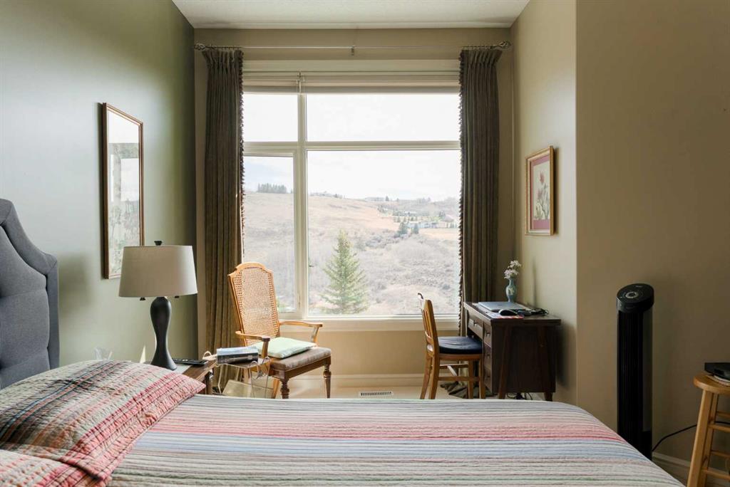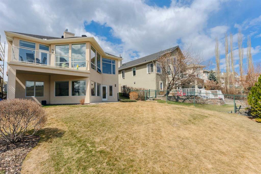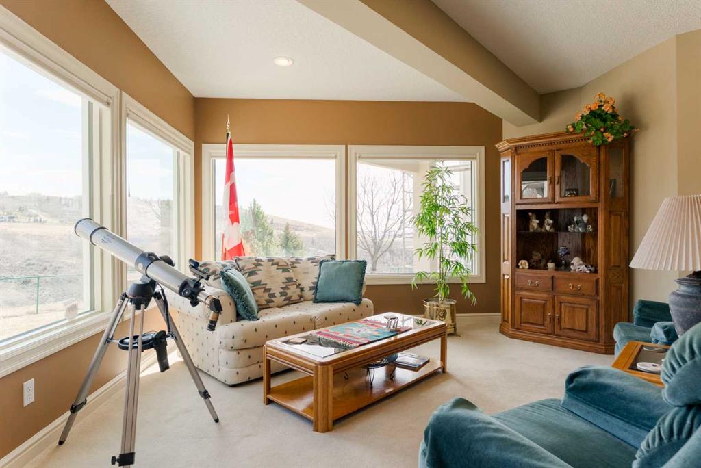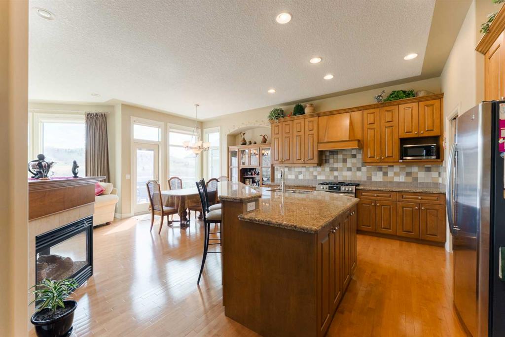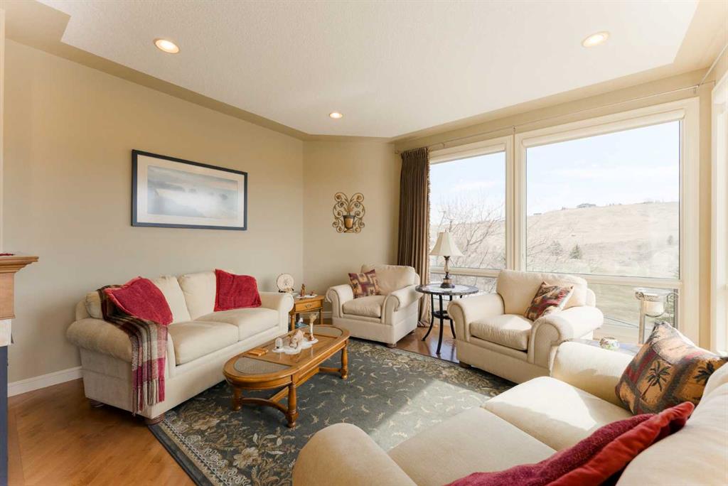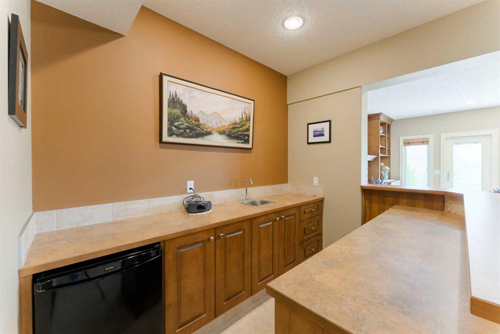 Perched directly above the 13th green of Gleneagles Golf Course, this rare walkout bungalow offers front-row views of the manicured green, sweeping valley landscape, frequent wildlife sightings, and the quiet lifestyle that makes Gleneagles one of Cochrane’s most sought-after communities. Enjoy golf course and valley views from your deck, great room, primary suite, and walkout lower level. Offering over 2800 sqft of developed living space, the home features soaring 10’ ceilings, expansive windows, and a bright open layout designed for comfortable main-floor living. The kitchen is centred around a massive island, stainless steel appliances, gas range, walk-through pantry, and seamless connection to the dining and living areas. Major recent upgrades provide true peace of mind, including new asphalt shingles replacing the original shake roof, upgraded triple-pane east-facing view windows, two recently replaced hot water tanks, and refreshed stucco exterior. The main floor primary retreat captures the views and includes a spacious 5-piece ensuite with jetted tub, separate shower, and private water closet. A front office, convenient laundry/mudroom area off the garage entry, and powder room complete the main level. The fully developed walkout basement is warm and inviting with in-floor heat, large windows, generous natural light, wet bar, spacious recreation area, two bedrooms, and a full bath. Step out to the private lower patio overlooking the fairway and landscaped yard with underground sprinklers. Additional highlights include a tall double attached garage, excellent pride of ownership throughout, and a setting that is difficult to replicate. Gleneagles remains one of Cochrane’s most desirable communities for its elevated setting, golf course lifestyle, mature streetscapes, and exceptional commuter convenience with quick access to Highway 1A, Calgary’s northwest edge, downtown Cochrane, and an easy escape west to the mountains. A rare opportunity to secure an executive walkout bungalow in one of Cochrane’s premier neighbourhoods.