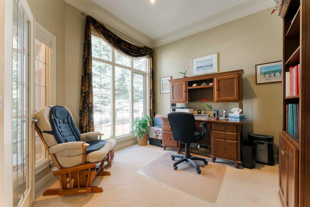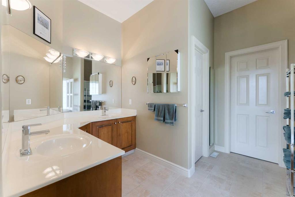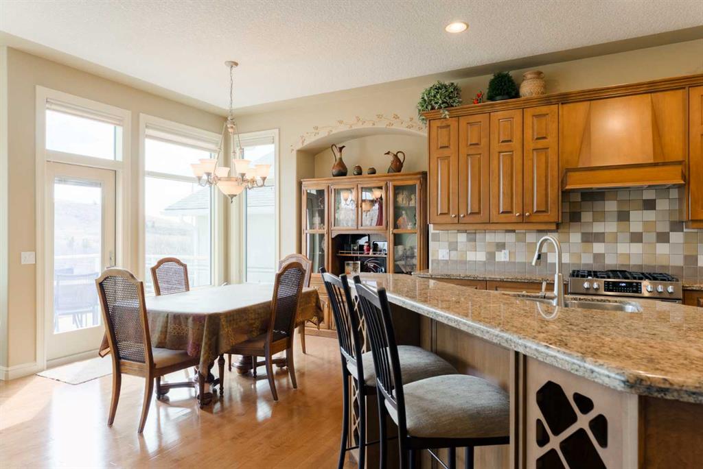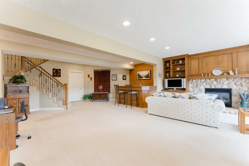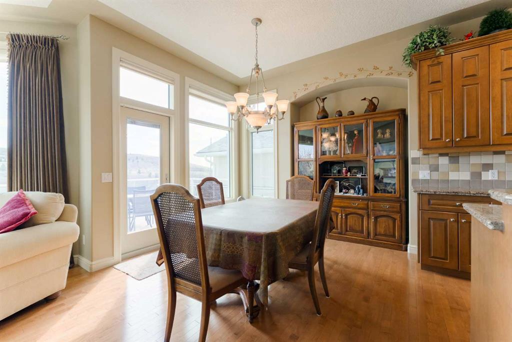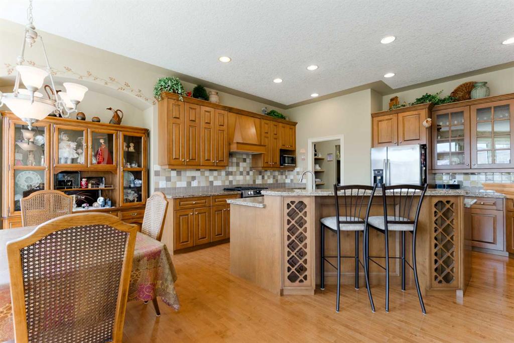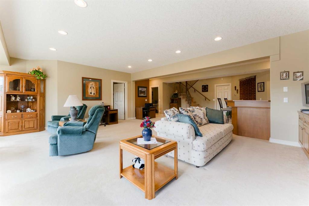 Perched directly above the 13th green of Gleneagles Golf Course, this rare walkout bungalow offers front-row views of the manicured green, sweeping valley landscape, frequent wildlife sightings, and the quiet lifestyle that makes Gleneagles one of Cochrane’s most sought-after communities. Enjoy golf course and valley views from your deck, great room, primary suite, and walkout lower level. Offering over 2800 sqft of developed living space, the home features soaring 10’ ceilings, expansive windows, and a bright open layout designed for comfortable main-floor living. The kitchen is centred around a massive island, stainless steel appliances, gas range, walk-through pantry, and seamless connection to the dining and living areas. Major recent upgrades provide true peace of mind, including new asphalt shingles replacing the original shake roof, upgraded triple-pane east-facing view windows, two recently replaced hot water tanks, and refreshed stucco exterior. The main floor primary retreat captures the views and includes a spacious 5-piece ensuite with jetted tub, separate shower, and private water closet. A front office, convenient laundry/mudroom area off the garage entry, and powder room complete the main level. The fully developed walkout basement is warm and inviting with in-floor heat, large windows, generous natural light, wet bar, spacious recreation area, two bedrooms, and a full bath. Step out to the private lower patio overlooking the fairway and landscaped yard with underground sprinklers. Additional highlights include a tall double attached garage, excellent pride of ownership throughout, and a setting that is difficult to replicate. Gleneagles remains one of Cochrane’s most desirable communities for its elevated setting, golf course lifestyle, mature streetscapes, and exceptional commuter convenience with quick access to Highway 1A, Calgary’s northwest edge, downtown Cochrane, and an easy escape west to the mountains. A rare opportunity to secure an executive walkout bungalow in one of Cochrane’s premier neighbourhoods.