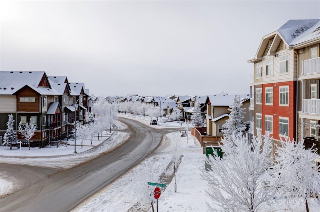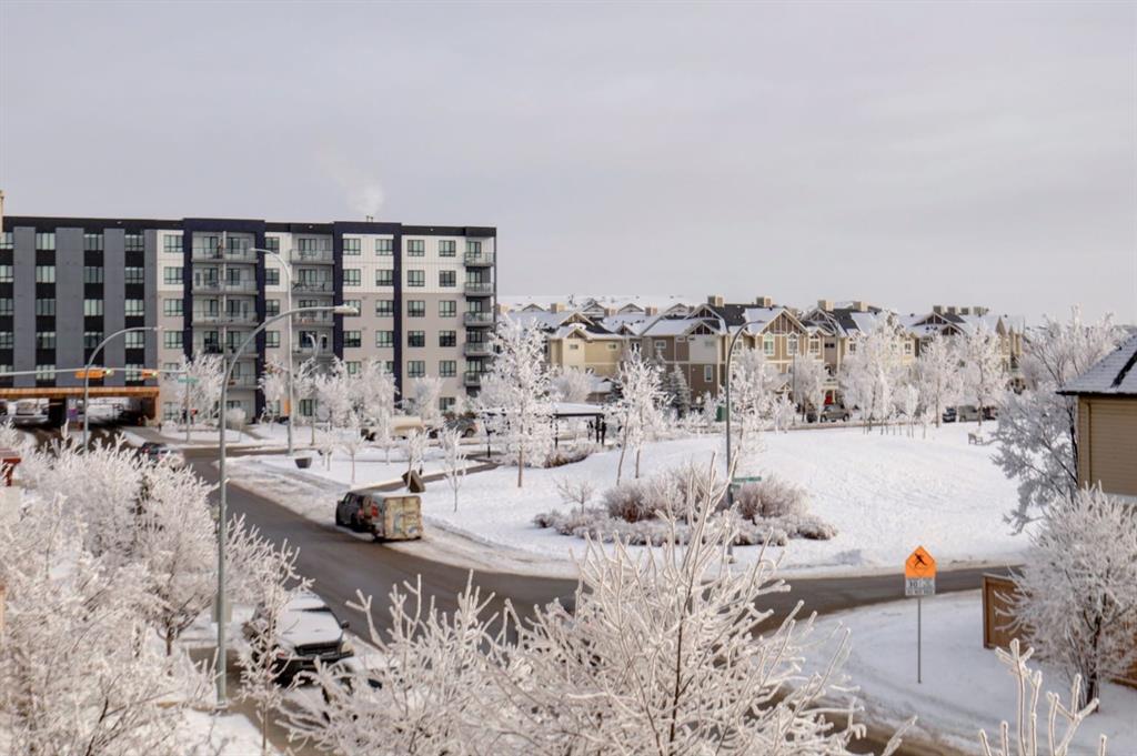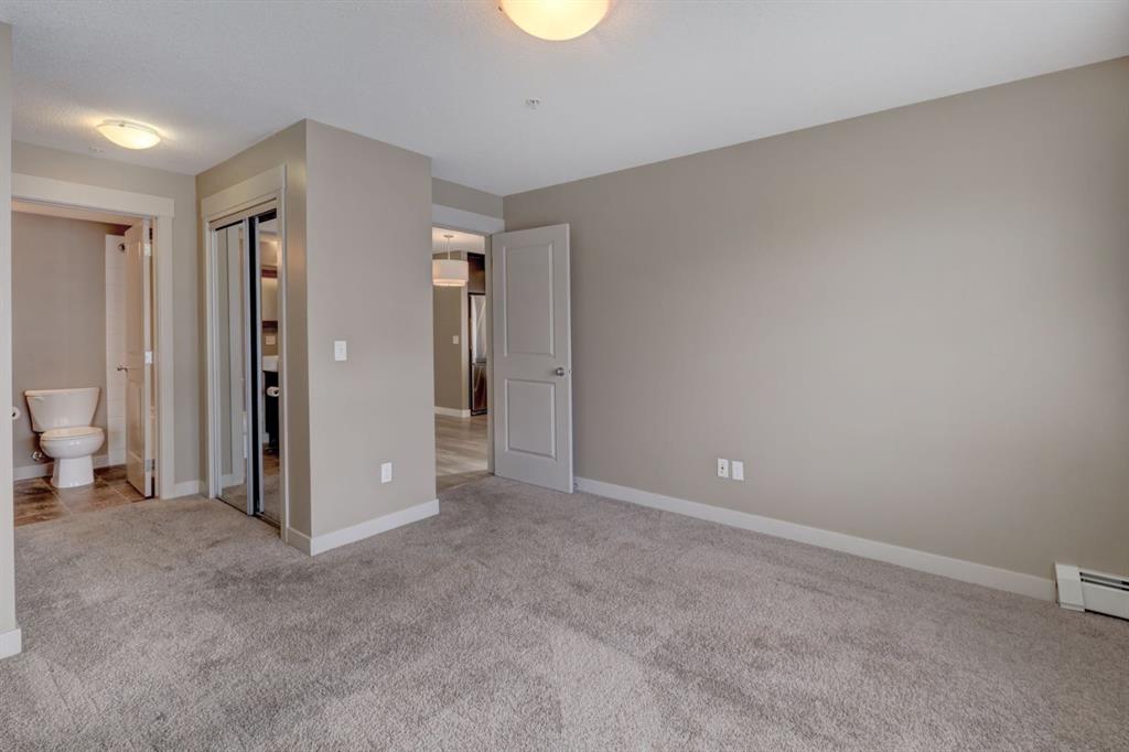 This contemporary corner unit offers 903 square foot of stylish living space with 2 bedrooms, 2 bathrooms and panoramic south-west exposure. Step out onto the balcony, complete with gas BBQ line and enjoy the stunning mountain views. Fresh laminate flooring and an open-concept design create a modern, airy feel that’s filled with natural light throughout the day. The contemporary kitchen features dark-stained cabinetry, tiled backsplash, granite counter, and stainless steel appliances. The spacious primary bedroom includes a walk-through closet leading to a 4 piece ensuite, while the second bedroom and full bathroom provide flexibility for guests or a home office. The two bedrooms are thoughtfully positioned on opposite sides of the condo for added privacy – please see the included floor plan for full layout. Additional highlights include in-suite laundry, titled heated underground parking with a storage locker conveniently located directly in front of the stall. Ideally located with easy access to Stoney and Deerfoot Trail, just minutes from the airport and Cross Iron Mills, plus shopping, parks, schools, and everyday amenities nearby – including a bus stop right on the street. This move-in ready condo is available for immediate possession. It blends comfort, convenience and incredible views – a fantastic place to call home. Be sure to take time to explore the 3D virtual tour.