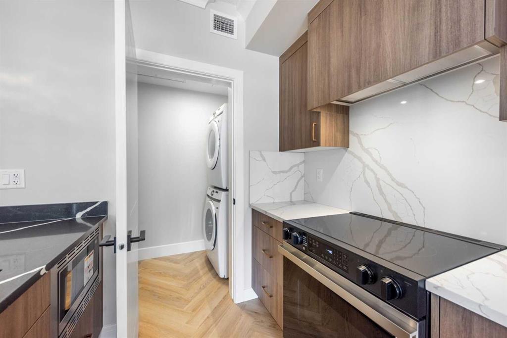 Welcome to The ORO, in Dean’s Landing that redefines modern living. This brand-new, never-occupied residence features 902 sq ft of thoughtfully designed space, boasting lofty 9′ to 10′ ceilings and an abundance of natural light from large windows. Step outside to your own private 197 sq ft balcony, perfect for hosting summer barbecues or enjoying a serene morning coffee. The chef-inspired kitchen offers ample countertops and a dedicated pantry, while the spacious bedroom accommodates a queen-size bed with ease, complemented by a large closet. Convenience is key with in-suite laundry facilities discreetly placed away from the living areas. The unit includes a titled parking stall, and the building is secured with heated underground parking, bicycle storage, and an electric charging stations. Nestled in Rohit’s Deans Landing., The unit is just moments away from shopping and dining in the award-winning University District, as well as the University of Calgary, Market Mall, Children’s and Foothills Hospitals. Enjoy nearby parks, scenic pathways, schools, and recreation centers, making this the perfect home for students, professionals, and families alike. Experience the ultimate blend of style, comfort, and convenience in University District —your new place to call home awaits! Book to view!